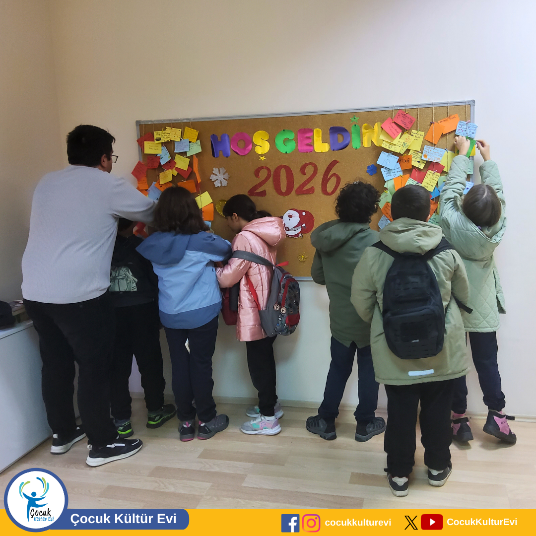 Uygulama alanları içinde her zaman ileri dönüşüm ve geri dönüşüm kavramlarına dikkat çeken ve dönüştürülebilir malzeme kullanımına özen gösteren Çocuk Kültür Evi'nde, eğitmenler tarafından çeşitli atık malzemelerden neşeli bir yılbaşı ağacı ile dilek panosu tasarlandı. Çocuklar tarafından büyük beğeniyle karşılanan yılbaşı ağacı önünde atölye katılımcısı tüm çocuklara Çanakkale Belediyesi'nin hediyesi olan kitaplar sunuldu. Ardından çocuklar hazırlanan panoya 2026 dileklerini yazarak yeni yıl neşesine dahil oldular.