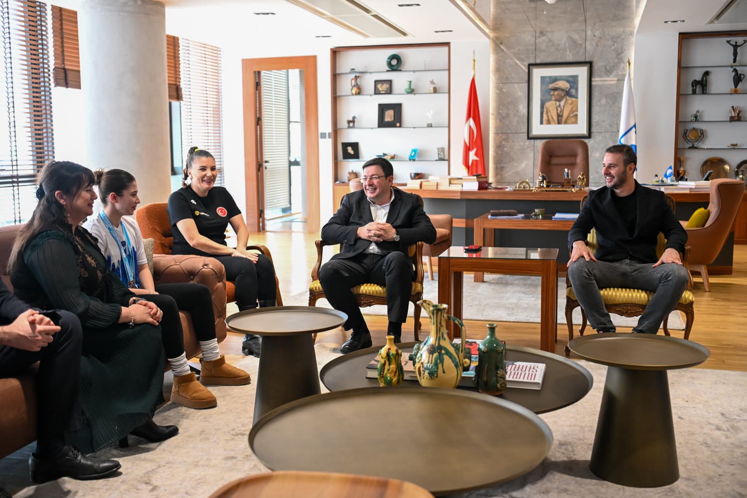 2026 Türkiye Açık Su Yüzme Kış Şampiyonası (14+), 11, 12,13 Yaş Gelişim Grubu Yarışmalarından büyük başarılarla dönen Çanakkale Belediyespor sporcularımız,  Çanakkale Belediyespor Kulübü Başkanımız Akın Yalman, kulüp yönetimi, Baş Antrenörümüz Nehir Çakır, A Takım Antrenörümüz Nursena Ortaç, Altyapı Sorumlu Antrenörlerimiz Toprak Akkaya ve Nail Ülkü, Belediye Başkanımız Muharrem Erkek'i makamında ziyaret etti.