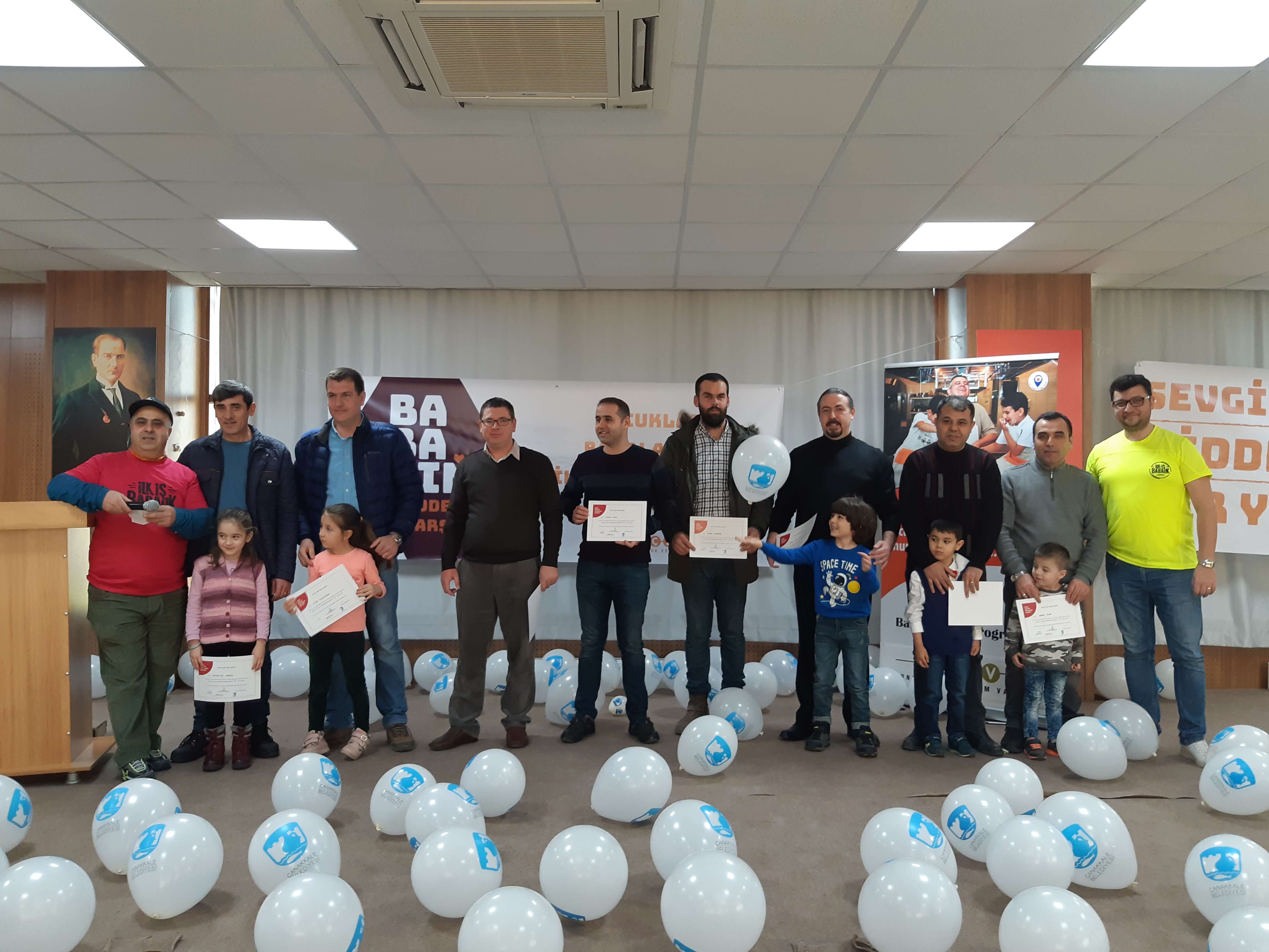 Çanakkale Belediyesi ve AÇEV (Anne Destek Eğitim Vakfı) işbirliğiyle gerçekleşen, Çanakkale Belediyesine bağlı hizmet sunan Atam Kreş ve Gündüz Bakım Evinin ile Esenler, Barbaros ve Troia Sosyal Yaşam Evlerinin BADEP Programına (Baba Destek Programı) katılım sağlayan babalar düzenlenen törenle katılım belgelerini aldı.
