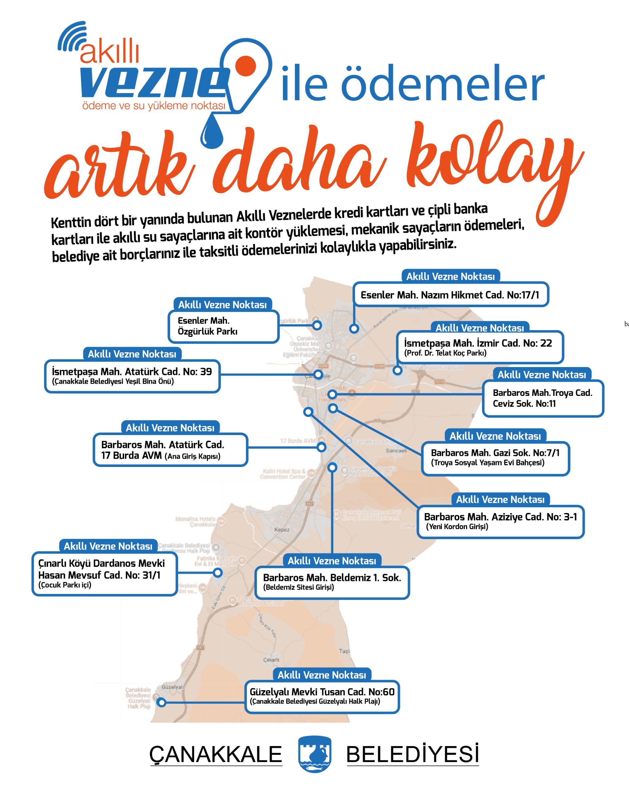 Hemşehrilerimizin belediyeye gelmelerine gerek kalmadan 7/24 akıllı su sayaçlarına ait kontör yüklemesi, mekanik sayaçların Abone Numarası aracılığıyla ödemeleri ve Belediyeye ait tüm ödemelerini gerçekleştirebildiği diğer AVS noktaları için TIKLAYINIZ