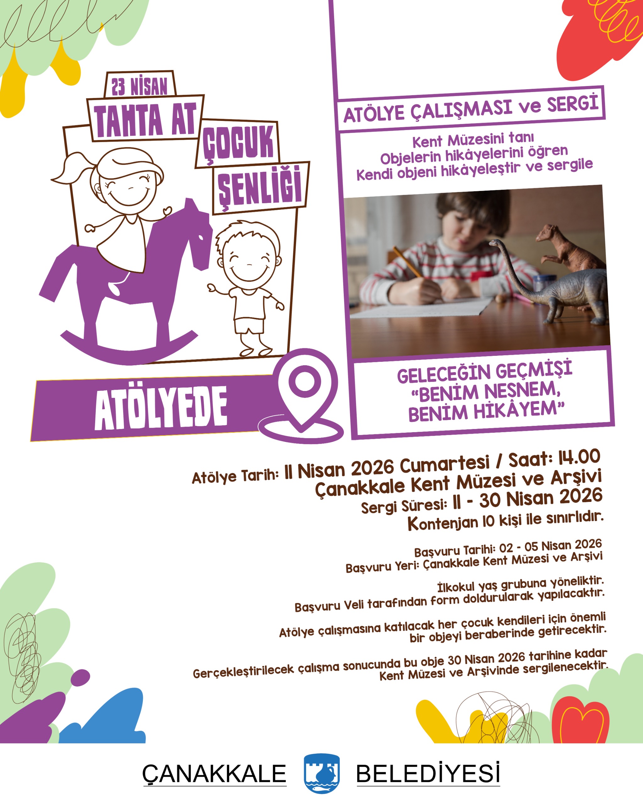 Atölye çalışmasına katılacak her çocuk kendileri için önemli bir objeyi beraberinde getirecektir. Gerçekleştirilecek çalışma sonucunda bu obje 30 Nisan 2026 tarihine kadar Kent Müzesi ve Arşivinde sergilenecektir.