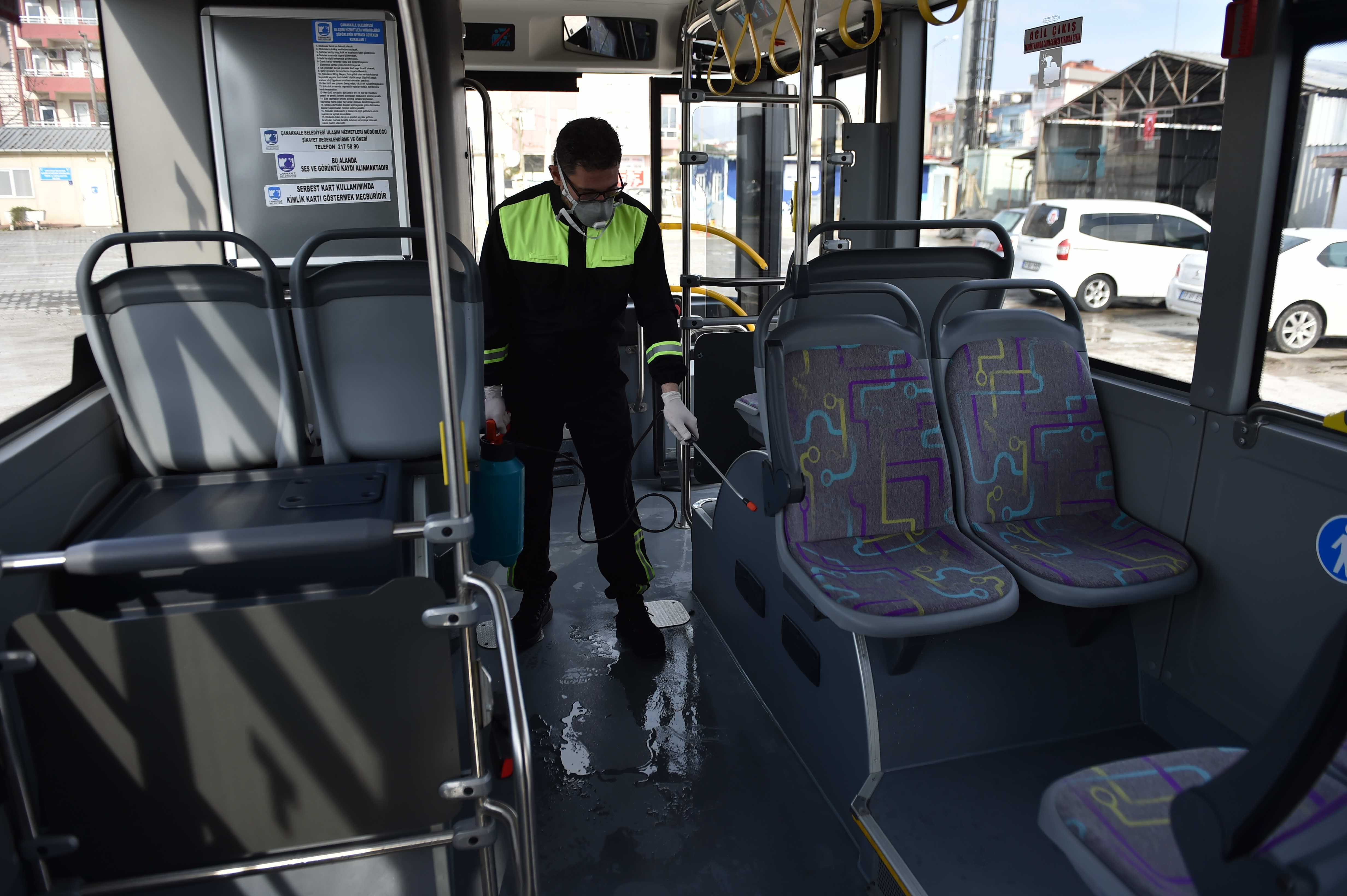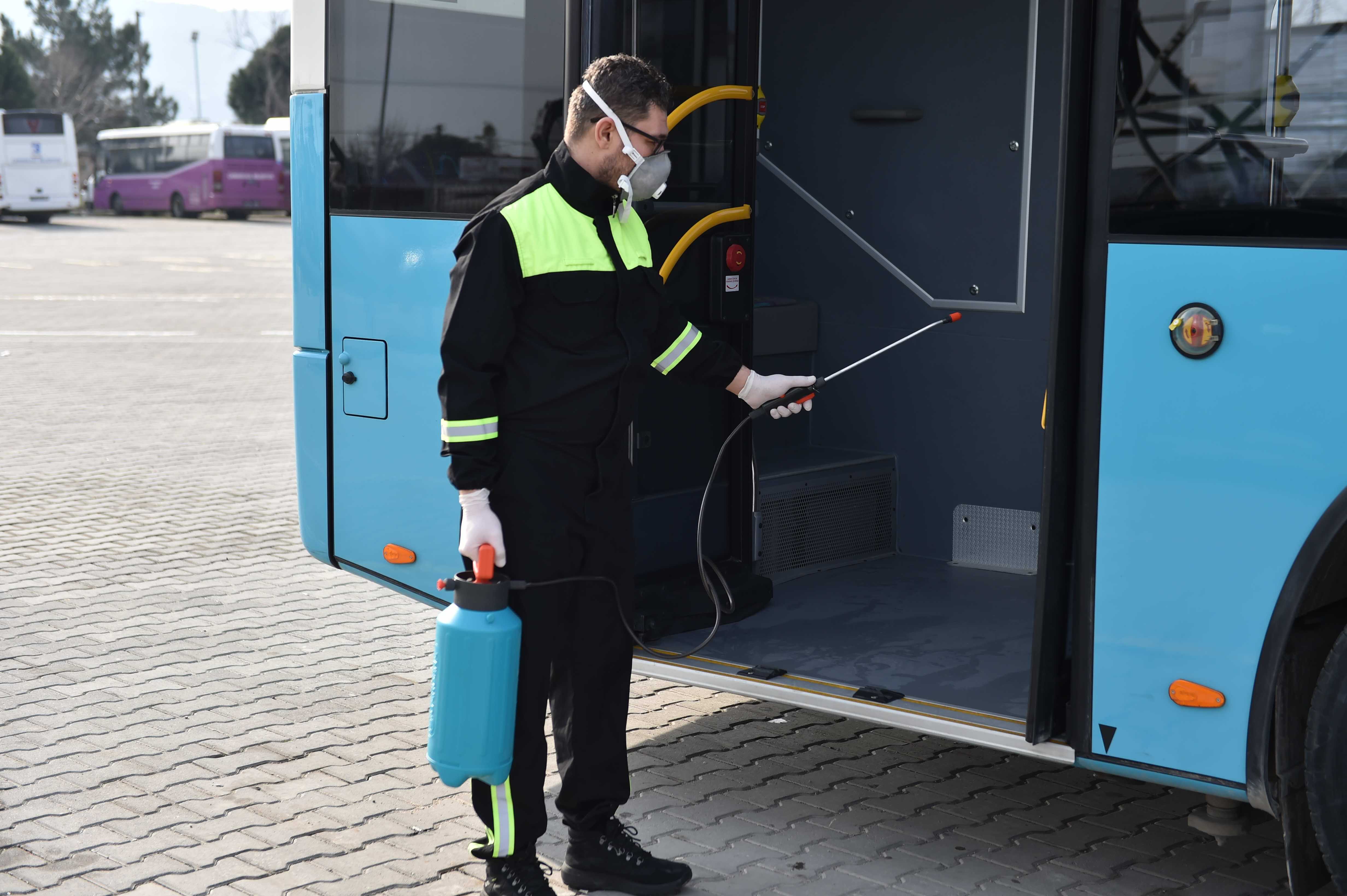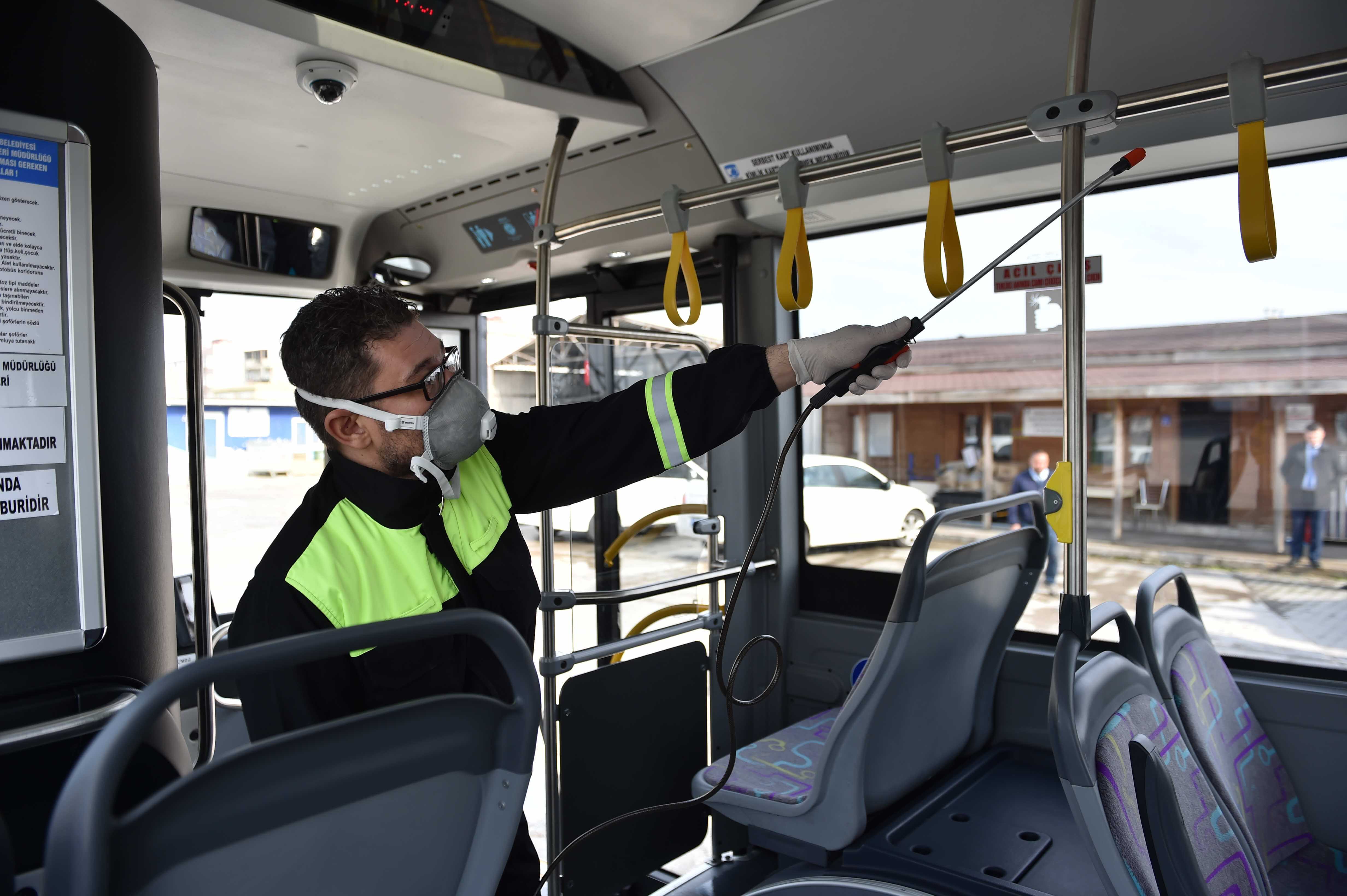 Çalışma kapsamında toplu taşıma araçlarının tamamı, genel hijyen amaçlı ilaçlanacak.