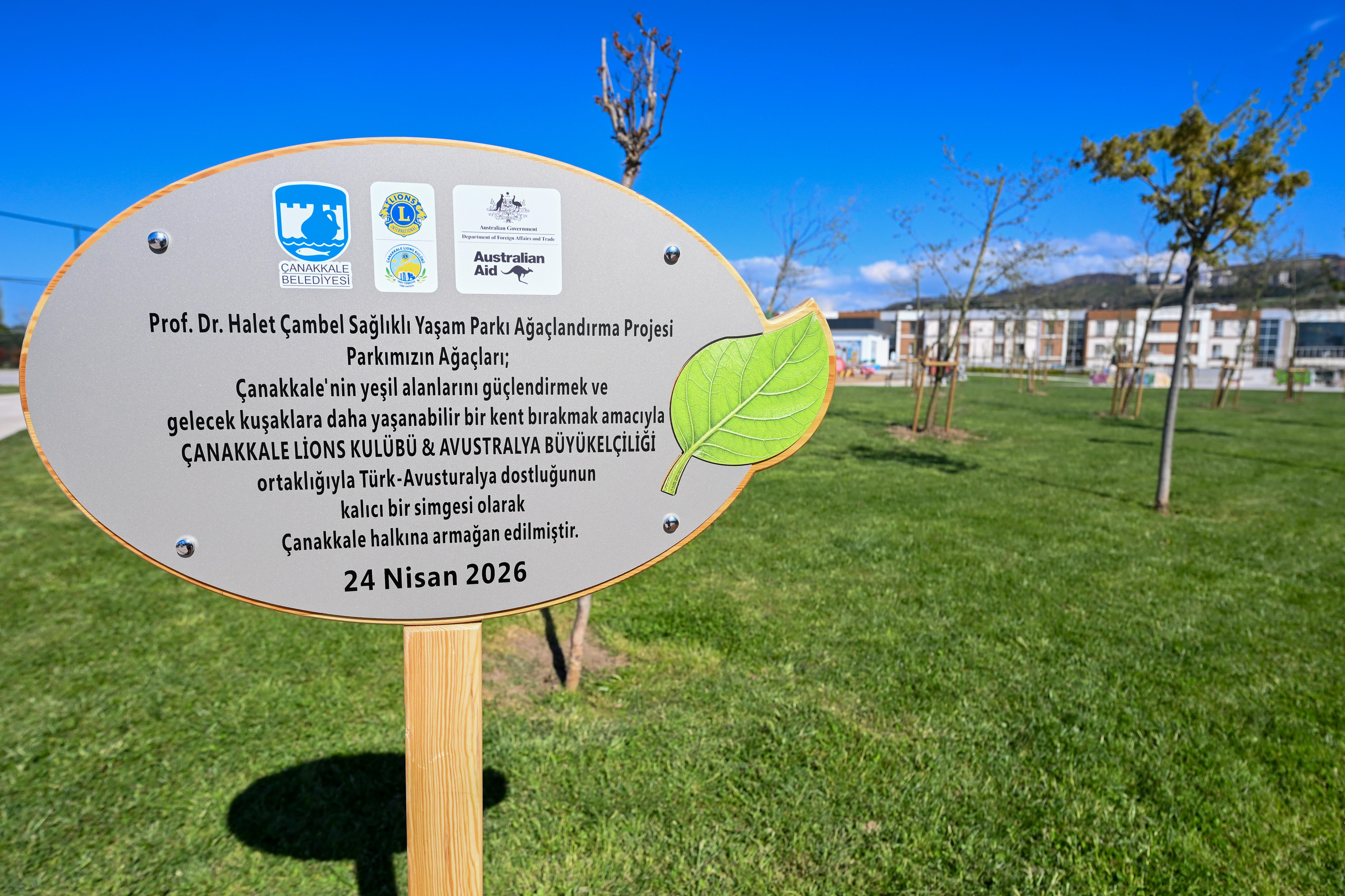 24 Nisan 2026 Cuma günü Prof. Dr. Halet Çambel Sağlıklı Yaşam Parkı’nda düzenlenen ağaç dikim etkinliğine ise, Belediye Başkanımız Muharrem Erkek, Avustralya Büyükelçisi Sally Anne Vincent, Dışişleri Bakanlığı Asya Pasifik Genel Müdürü Büyükelçi Korkut Güngen, Avustralya’nın Çanakkale Konsolosu Laura Wauchope, Çanakkale Lions Kulübü Dönem Başkanı Ufuk Turba ve kulüp temsilcileri başta olmak üzere çok sayıda davetli katıldı.