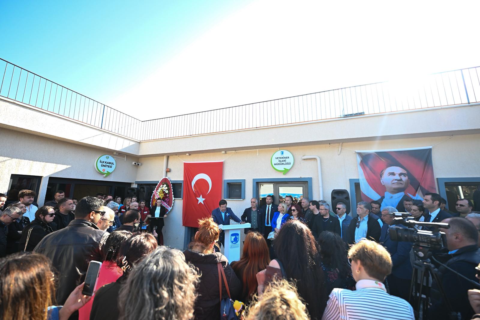 28 Nisan Salı günü gerçekleşen açılış törenine Vali Yardımcısı Polat Kara, Belediye Başkanımız Muharrem Erkek, CHP İl Başkanı Levent Gürbüz, CHP Merkez İlçe Başkanı İbrahim Can Ergun, Kepez Belediye Başkanı Birol Aslan, Çanakkale İl Genel Meclisi Başkanı Halil Ertuğrul, Çanakkale Veteriner Hekimleri Odası Başkanı Gökhan Özdemir, Belediye Başkan Yardımcıları, Belediye Meclis Üyeleri başta olmak üzere çok sayıda davetli katıldı. Sokak hayvanlarına yönelik hizmet verecek olan tesisin açılış töreninde ilk olarak söz alan Çanakkale Belediyesi Veterinerlik İşleri Müdürü Görkem Bakır, tesisin yapım süreci ve teknik özelliklerine ilişkin bilgi verdi.