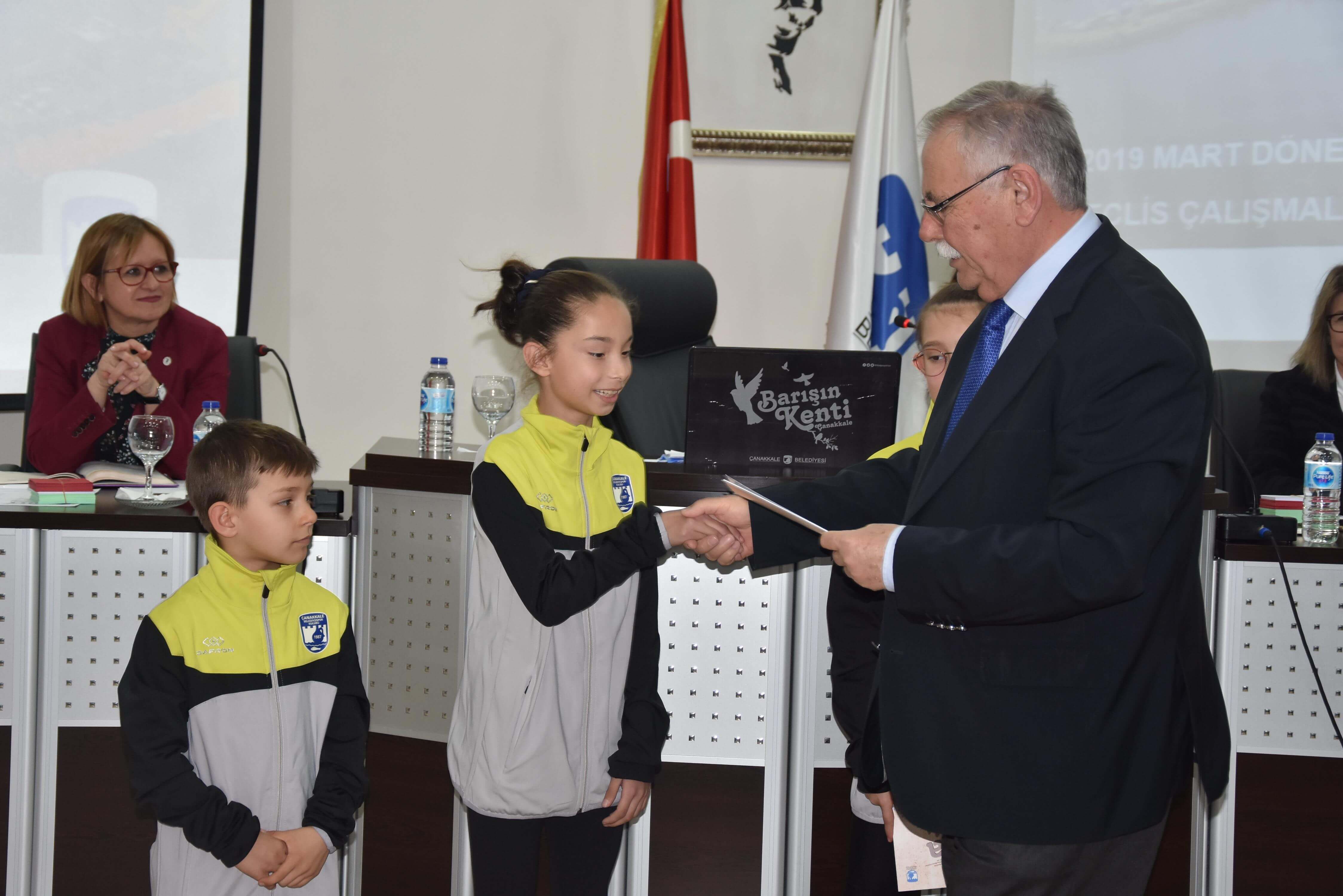 Satranç, yüzmeye ve atletizm gibi birçok dalda başarı gösteren sporculara ve antrenörlerine ödülleri Belediye Başkanı Ülgür Gökhan ve meclis üyeleri tarafından verildi. Gösterdikleri başarılar nedeni ile sporcu ve antrenörleri tebrik eden Başkan Gökhan, başarılarının devamını diledi. Ödül takdiminin ardından Mart ayı meclis toplantısı gündemlerin görüşülmesi ile devam etti.