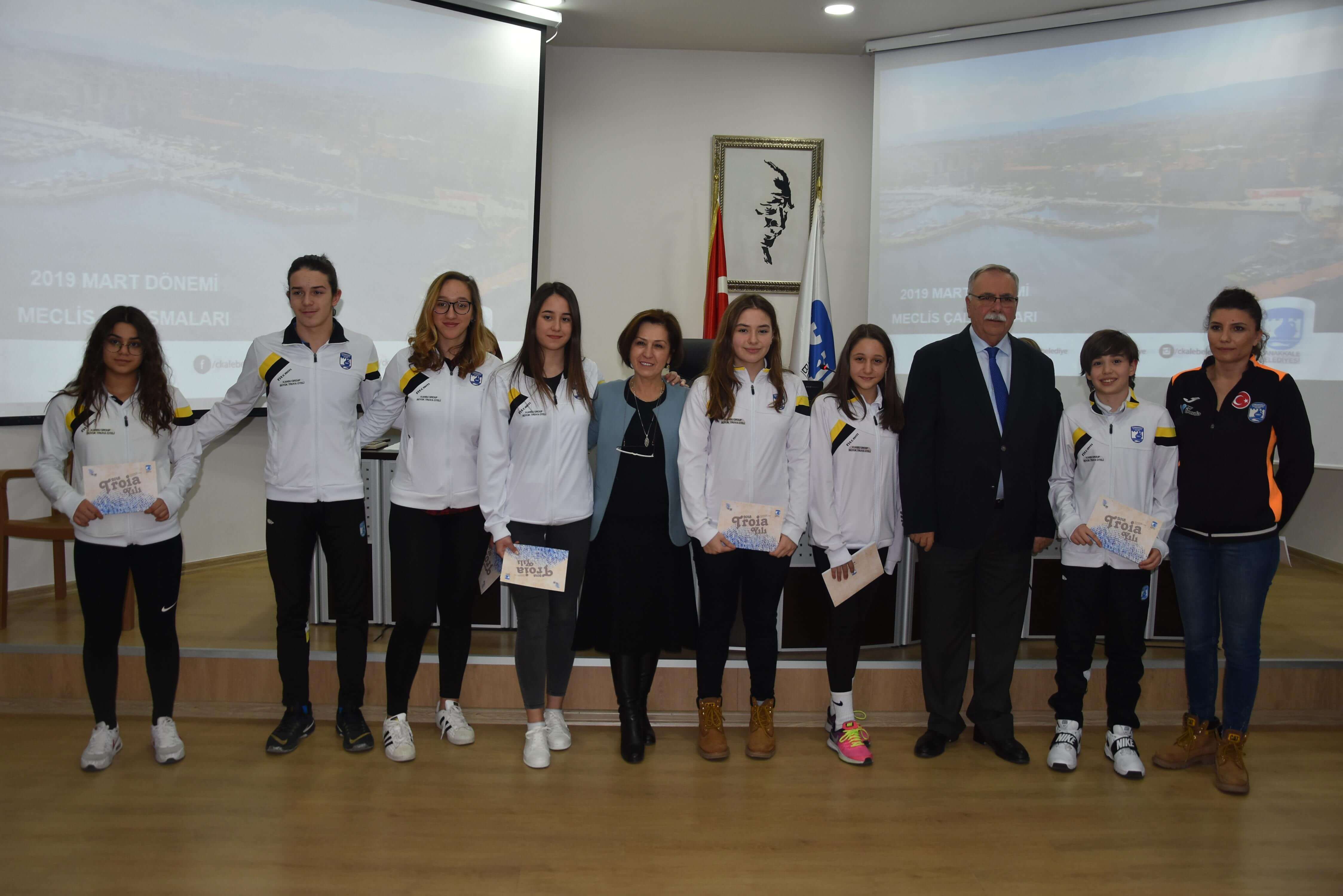 Çanakkale Belediye Meclisi Mart ayı toplantısında Çanakkale Belediyespor’un farklı spor dallarında başarı elde eden sporcuları ve antrenörlerine hediye takdim edildi.