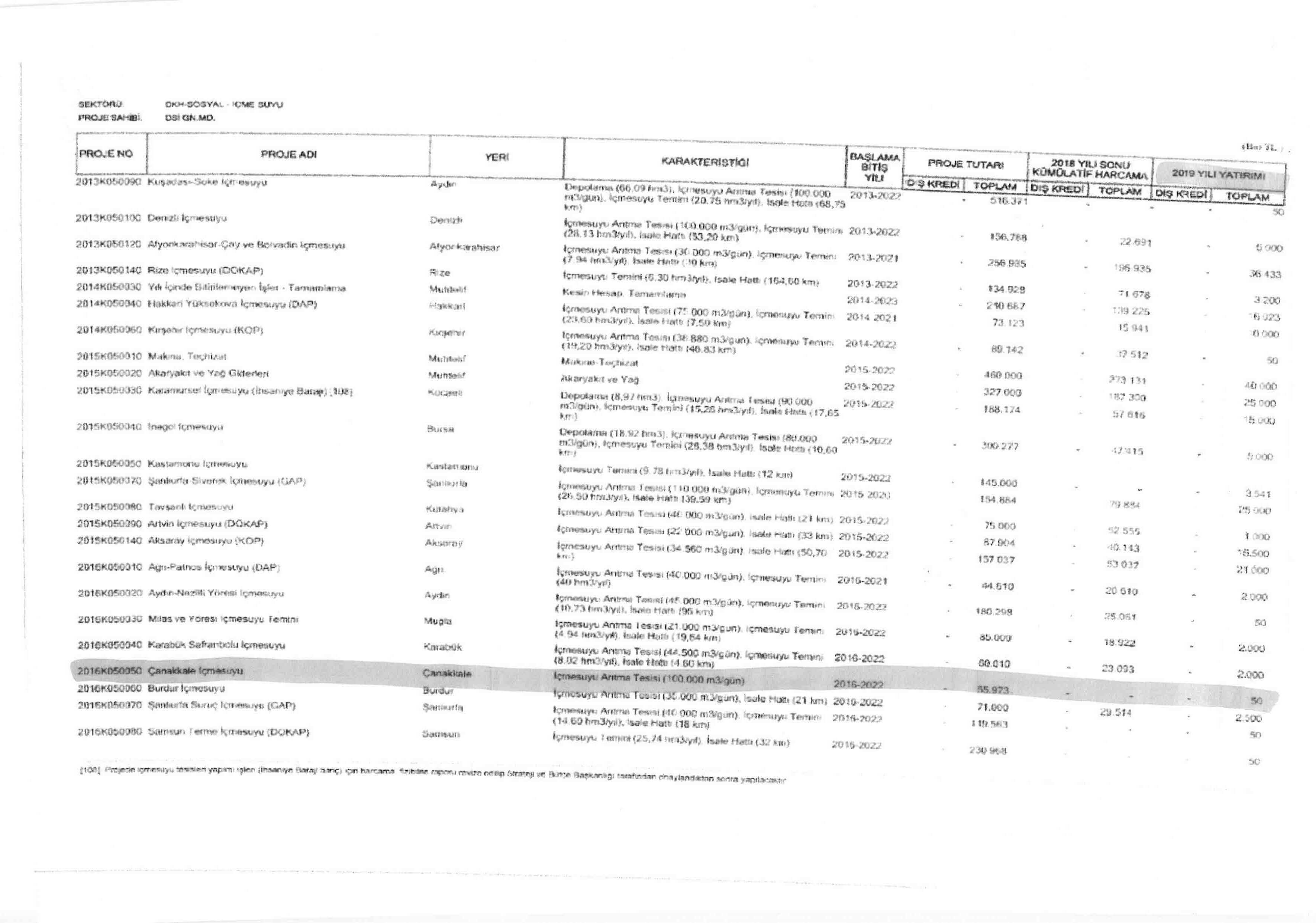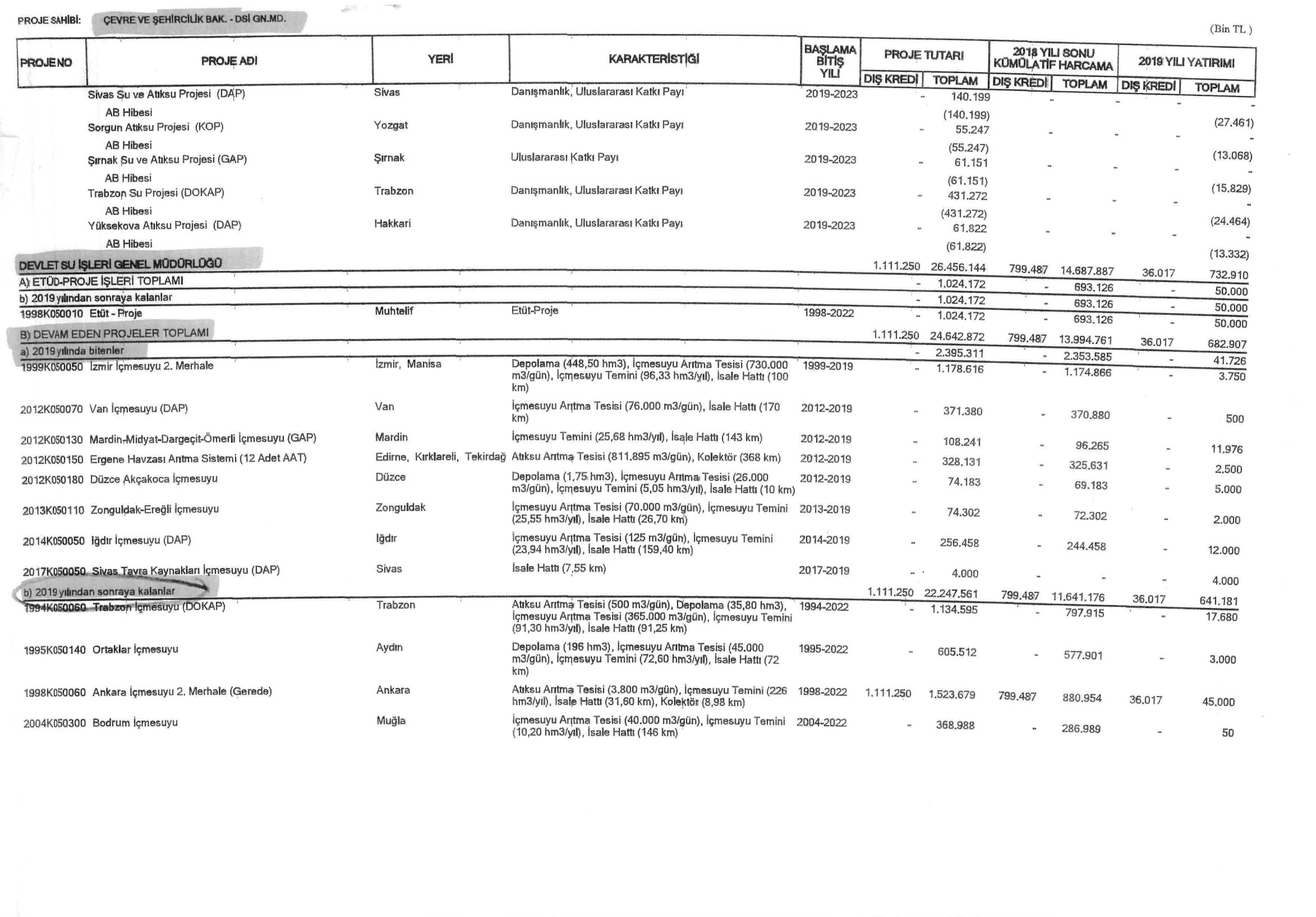 Tüm bunların yanında, 18 Şubat 2019 tarih ve 30690 sayılı Resmi Gazetede yayınlanan 767 Karar Sayılı Cumhurbaşkanı kararı ile “2019 Yılı Yatırım Programının Kabulü ve uygulanmasına dair Karar” eki 2019 YATIRIM PROGRAMI’nda yer alan DSİ Genel Müdürlüğü Devam eden Projeler Başlığı ”2019 yılından sonraya kalanlar “ alt başlığı altında yer alan 2019 yılı yatırım programında 2016K050050 proje nolu Çanakkale İçmesuyu Arıtma Tesisi tesis için ayrılan ödeneğin 50.000 TL olduğu görülmektedir. (Ek-4)