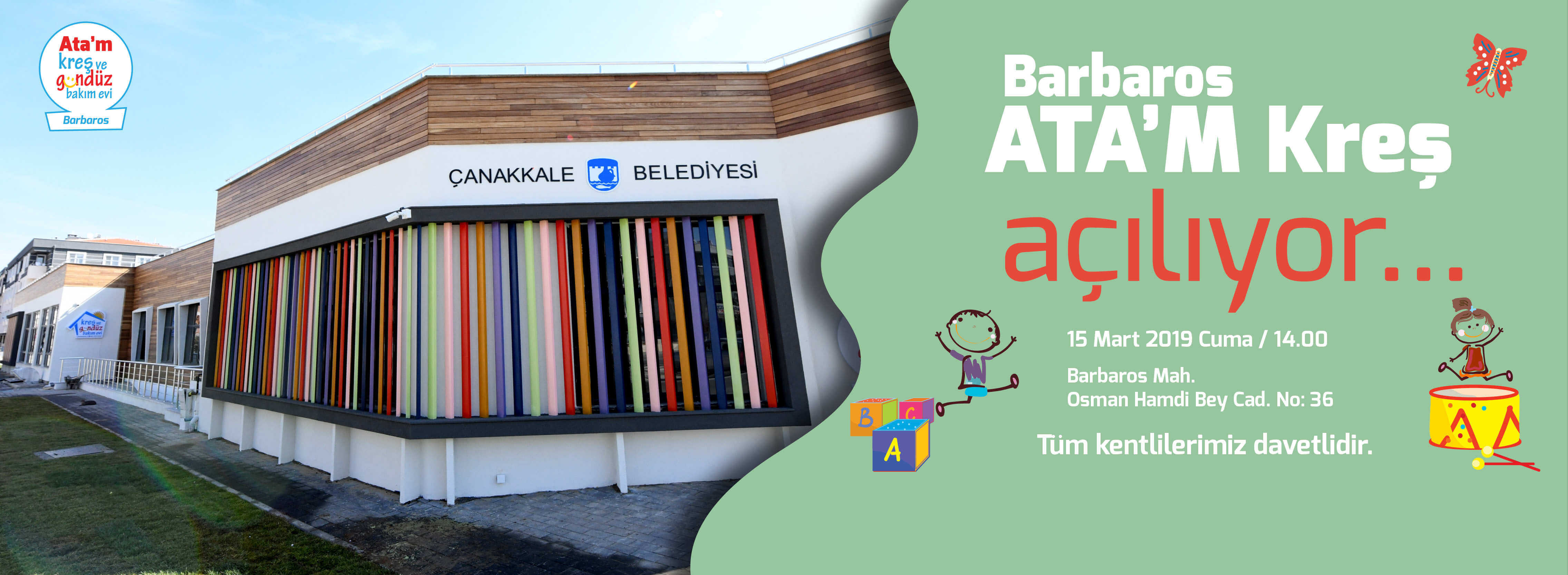 Çocuklarımızın okul öncesi eğitimlerine katkı sunmayı amaçladığımız Barbaros Ata’m Kreş, 15 Mart 2019 Cuma günü saat 14.00’te gerçekleşecek açılış töreni ile hizmet vermeye başlayacak.