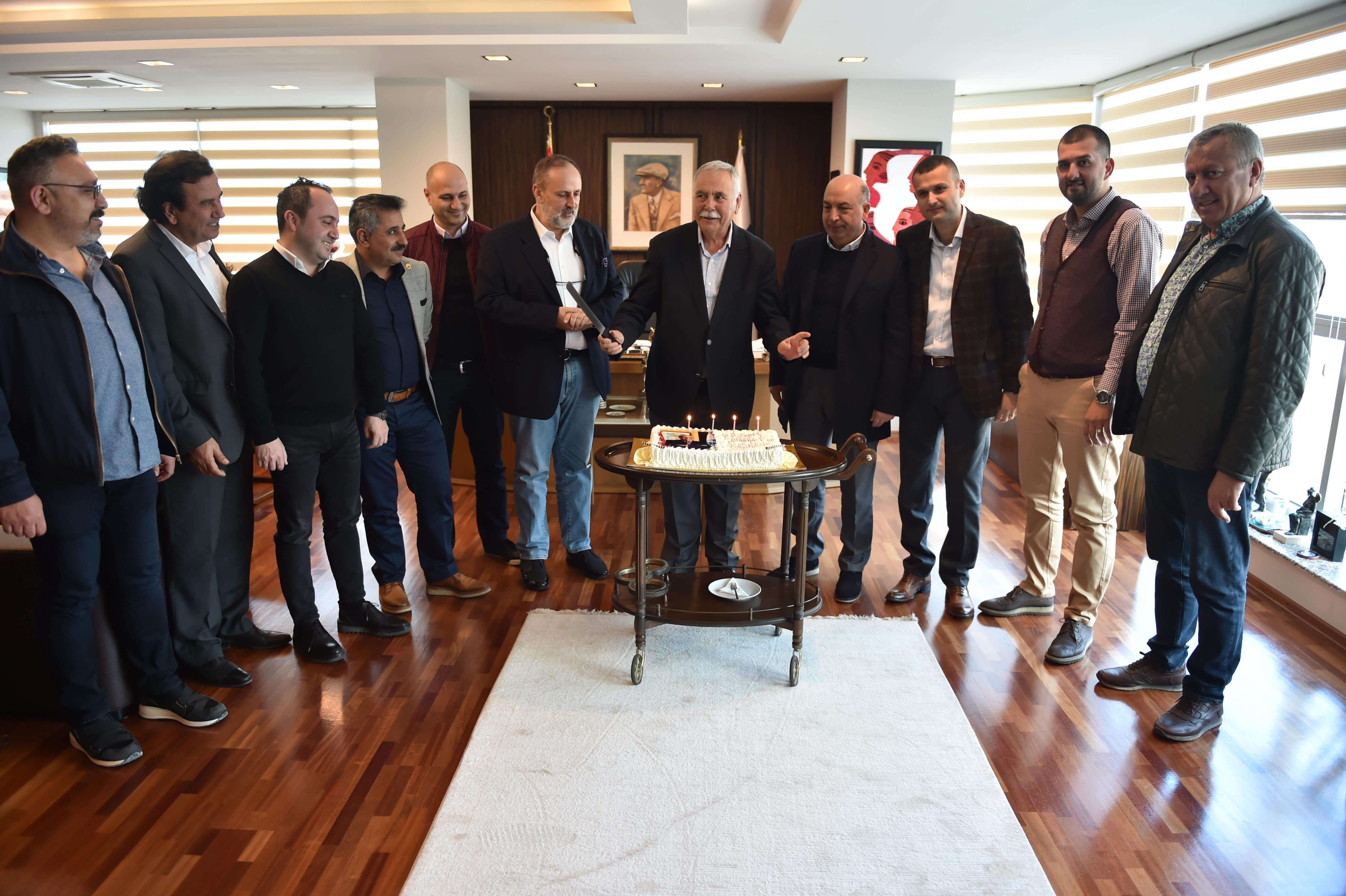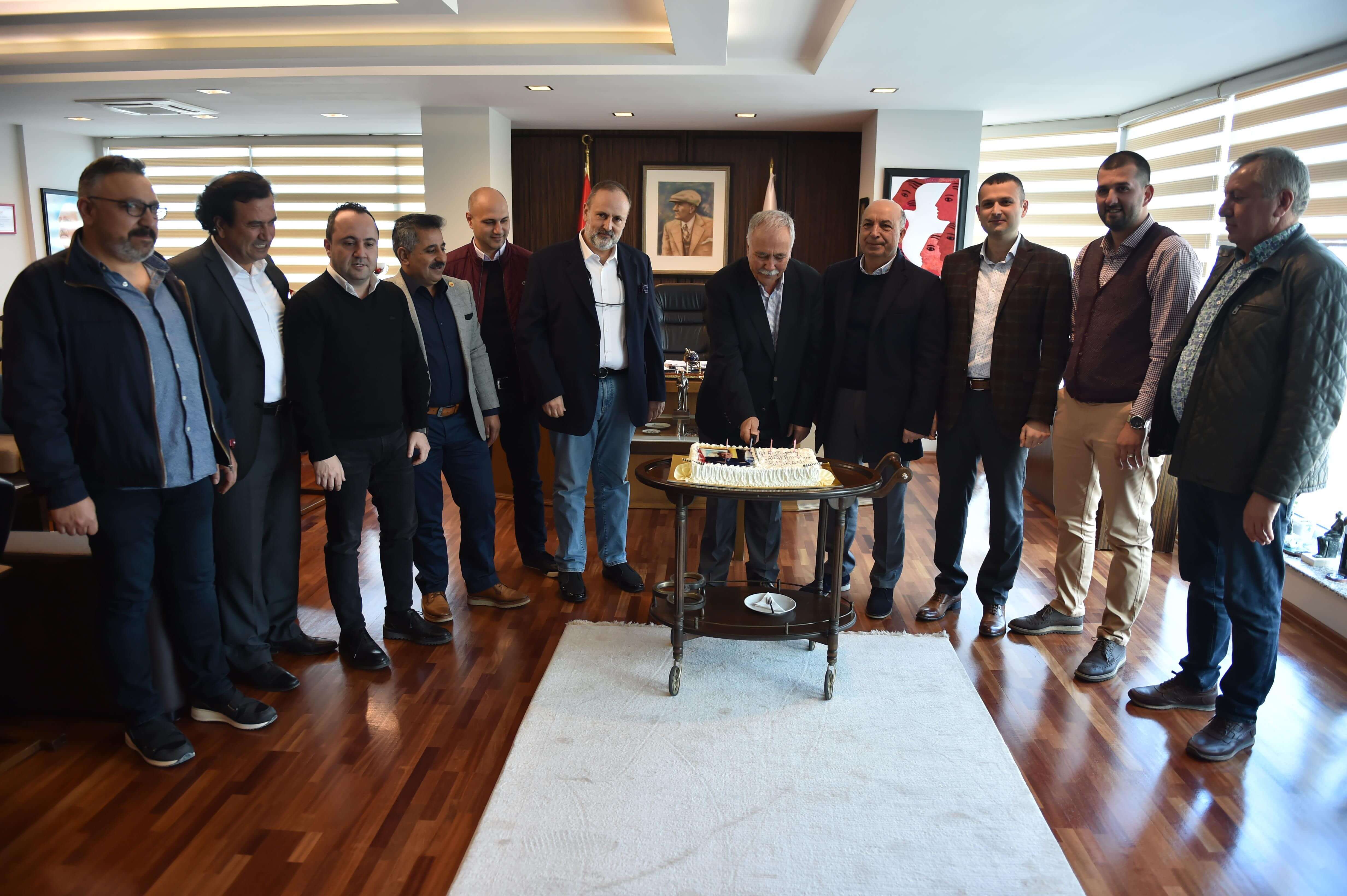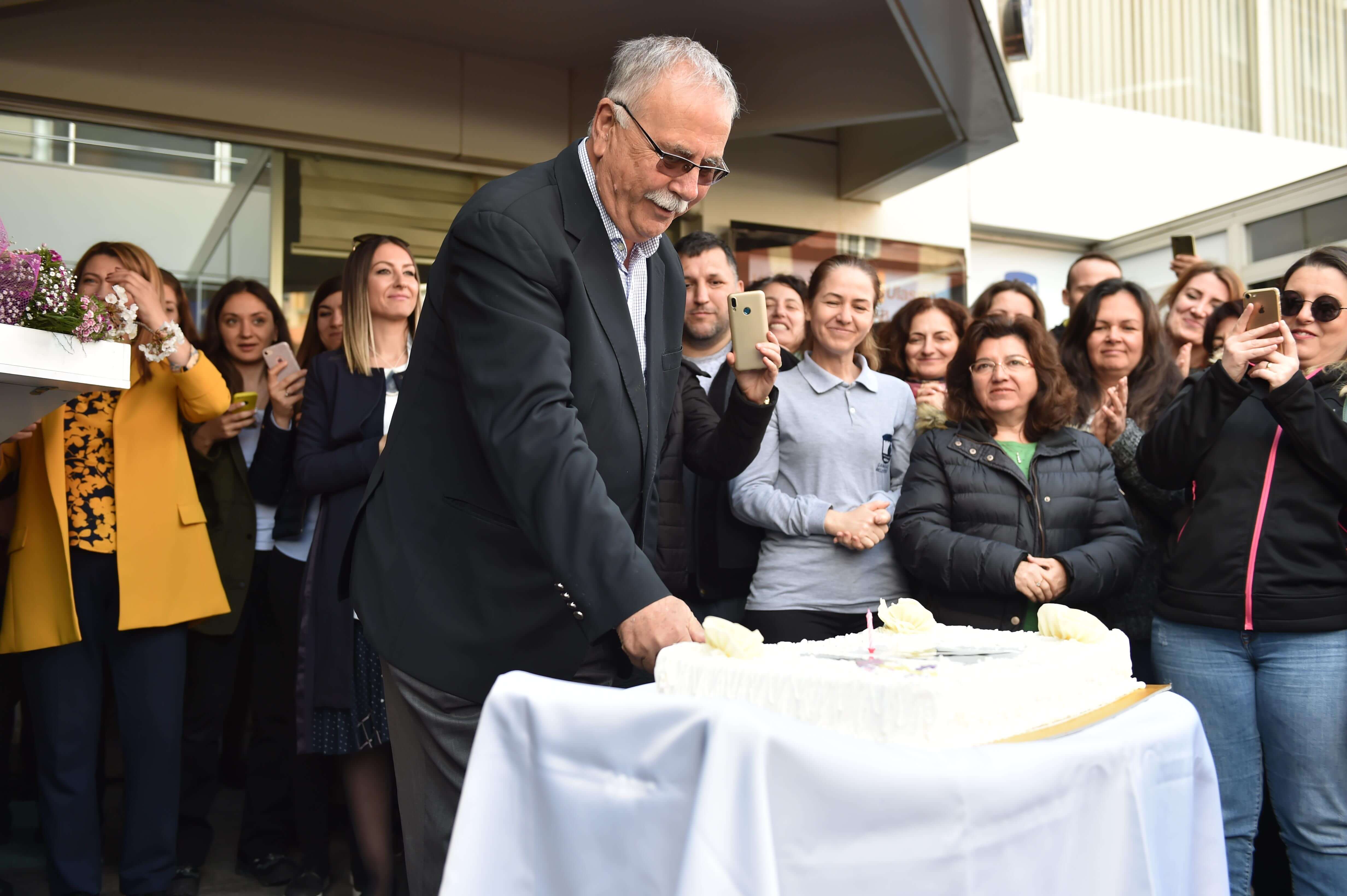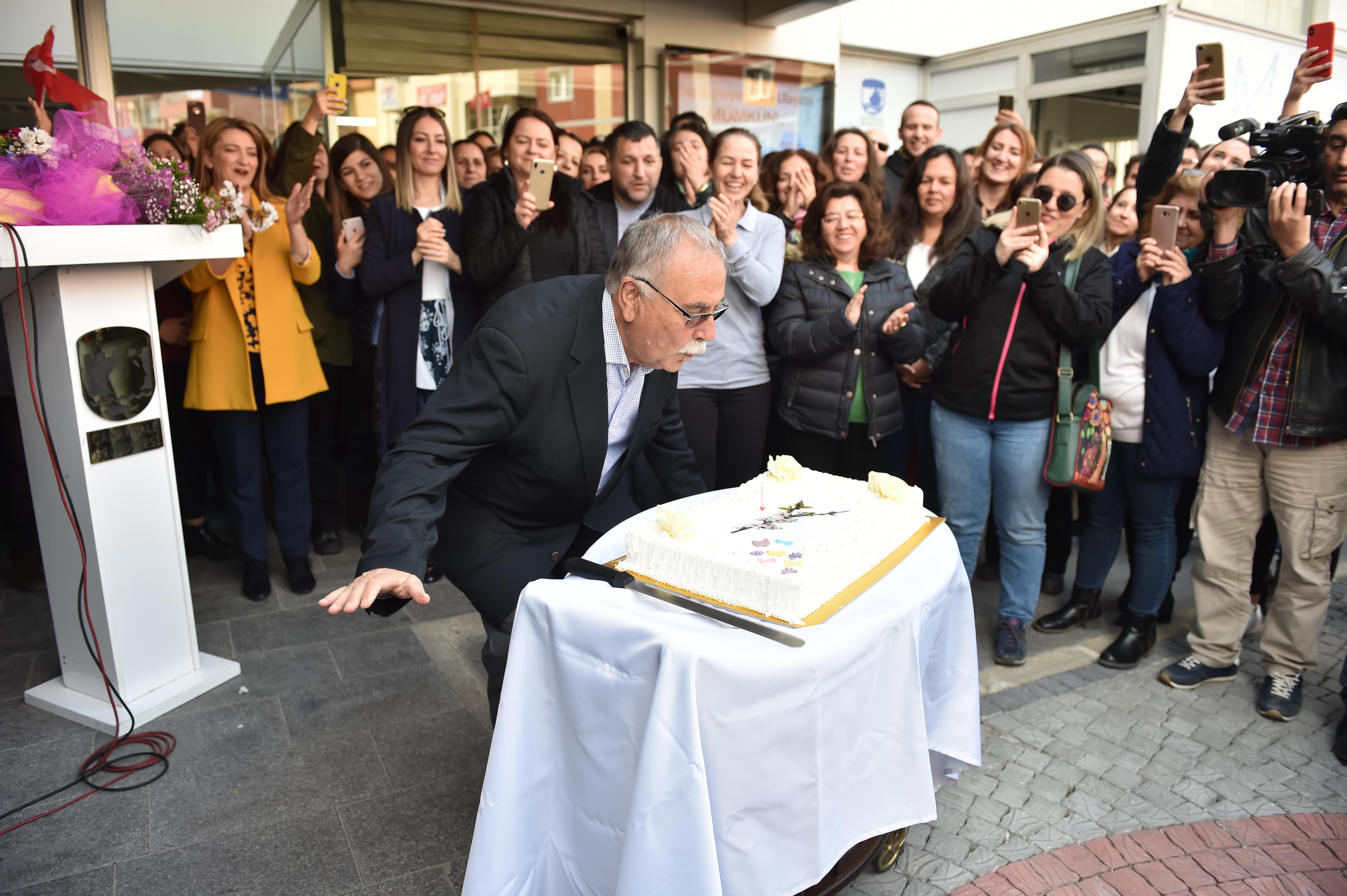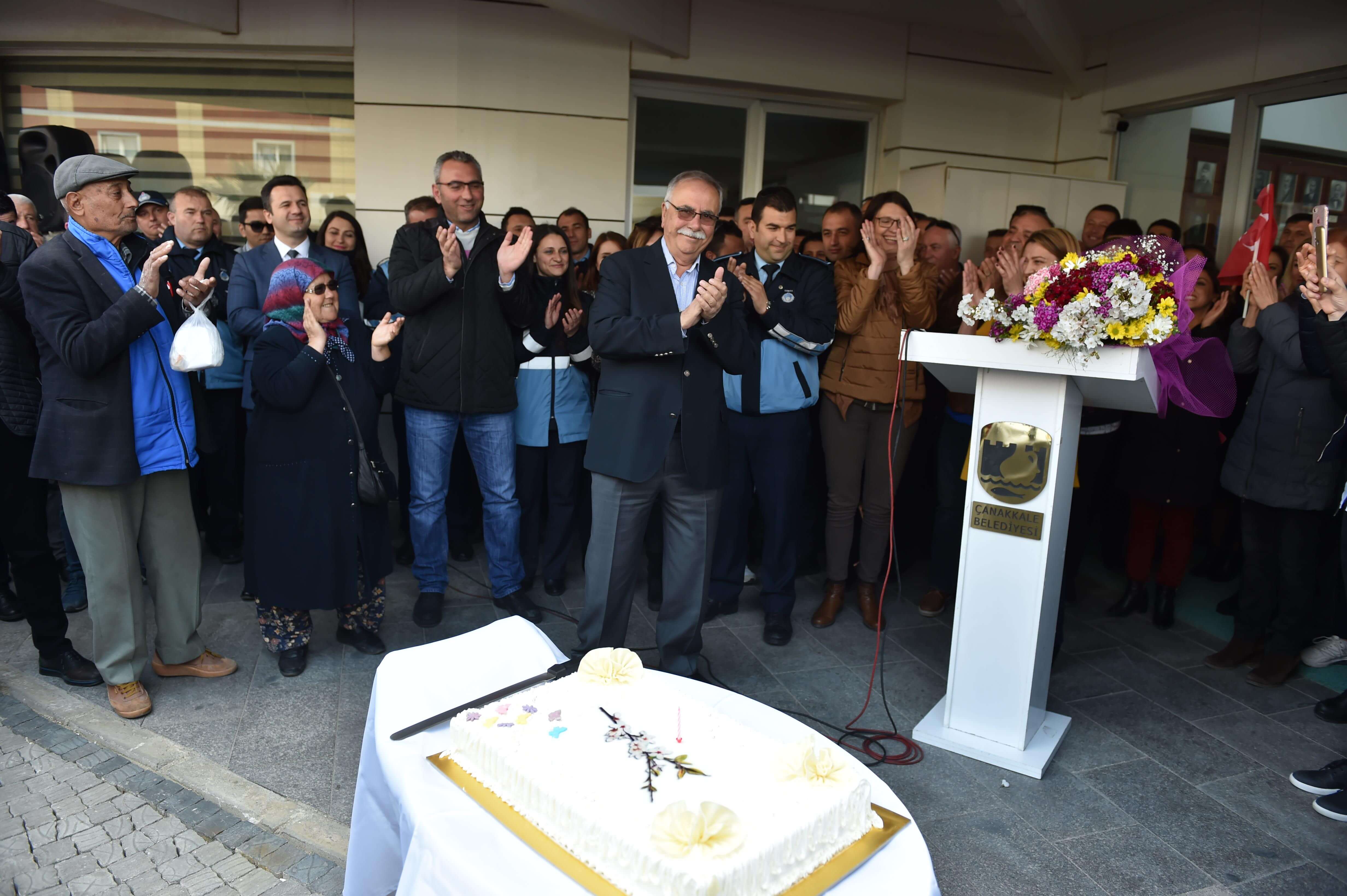 Çanakkale Belediyesi personeli, Belediye Başkanı Ülgür Gökhan'ın 1 Nisan tarihli doğum gününü sürpriz pastayla kutladı.