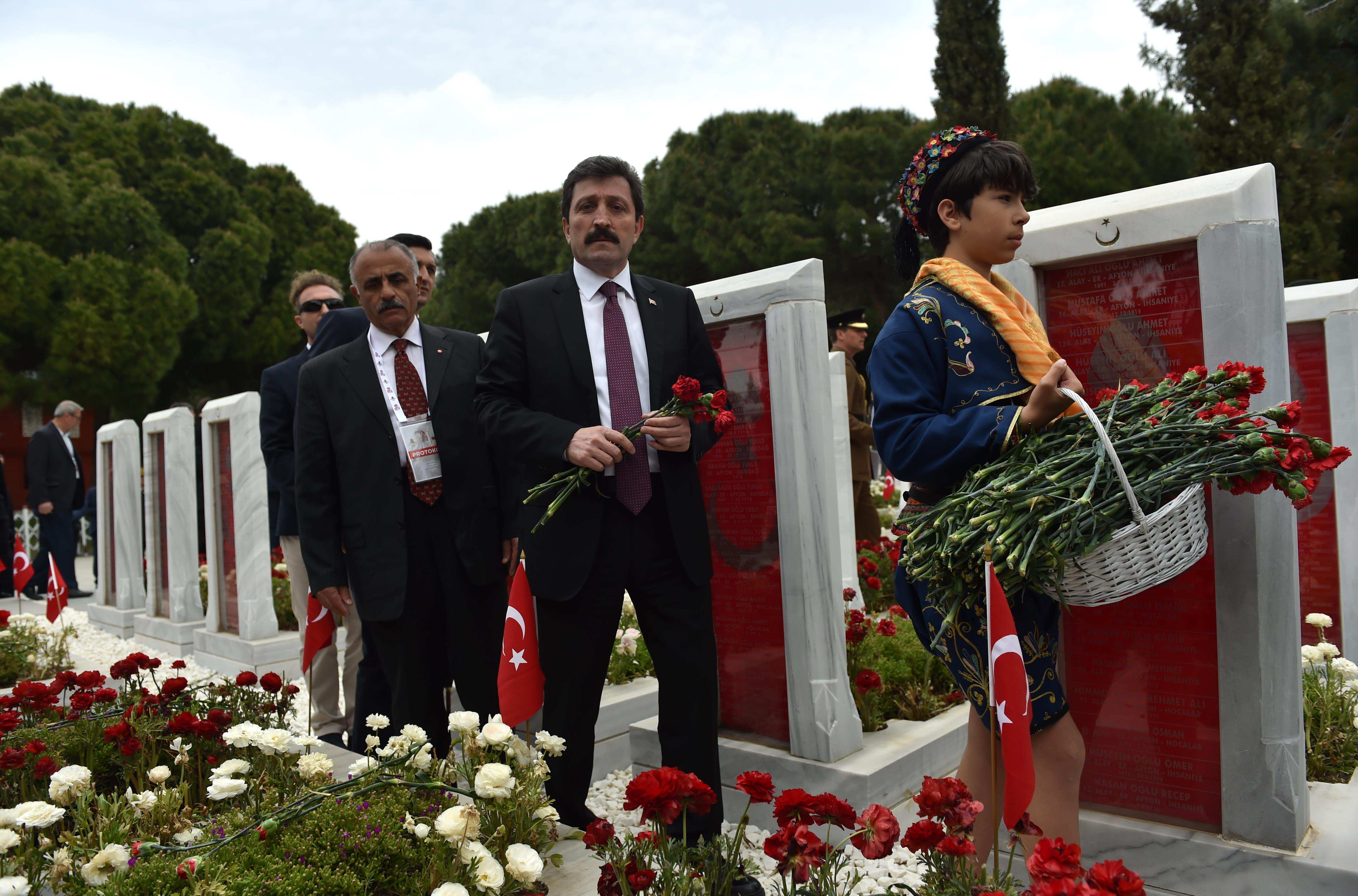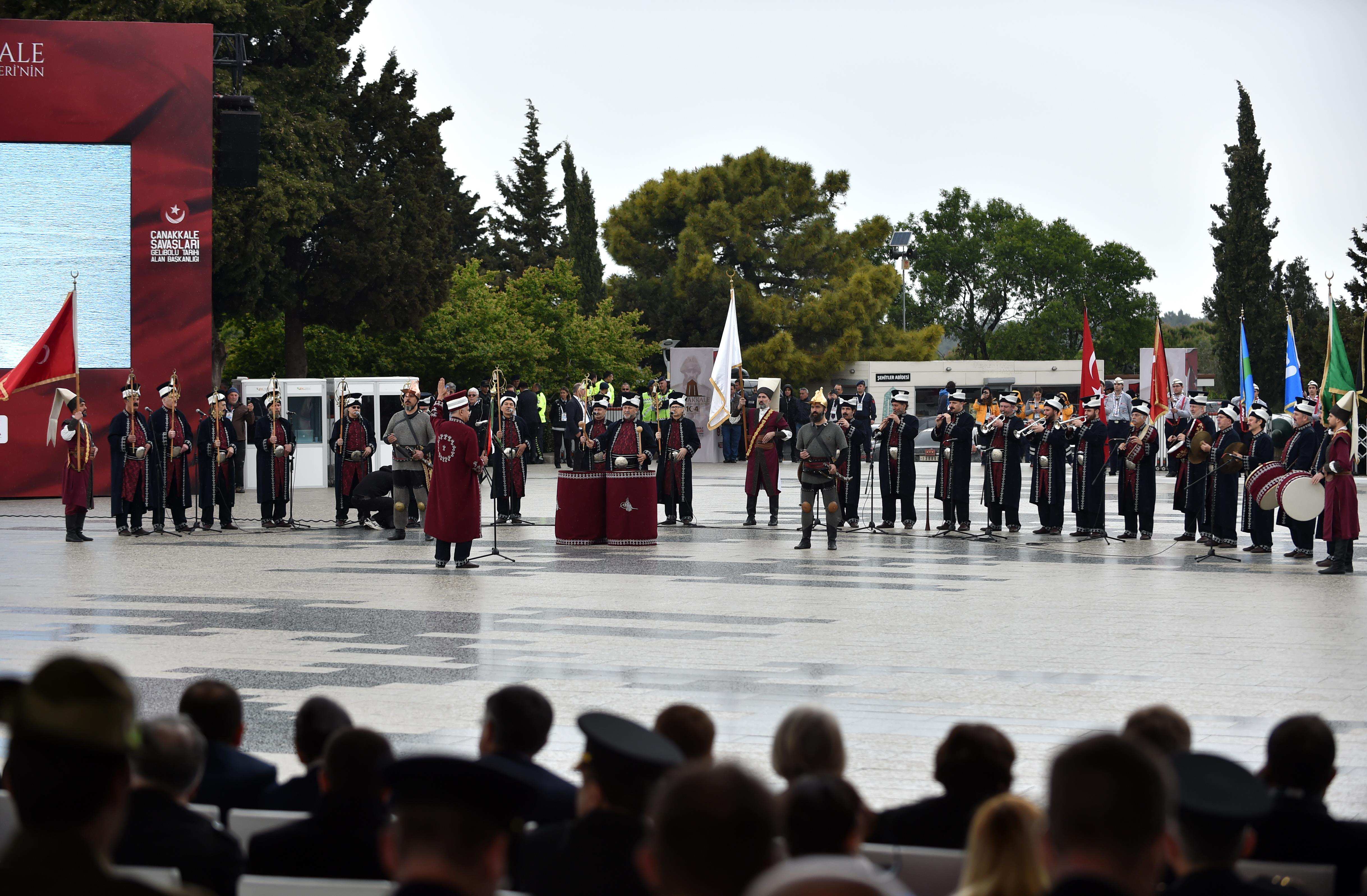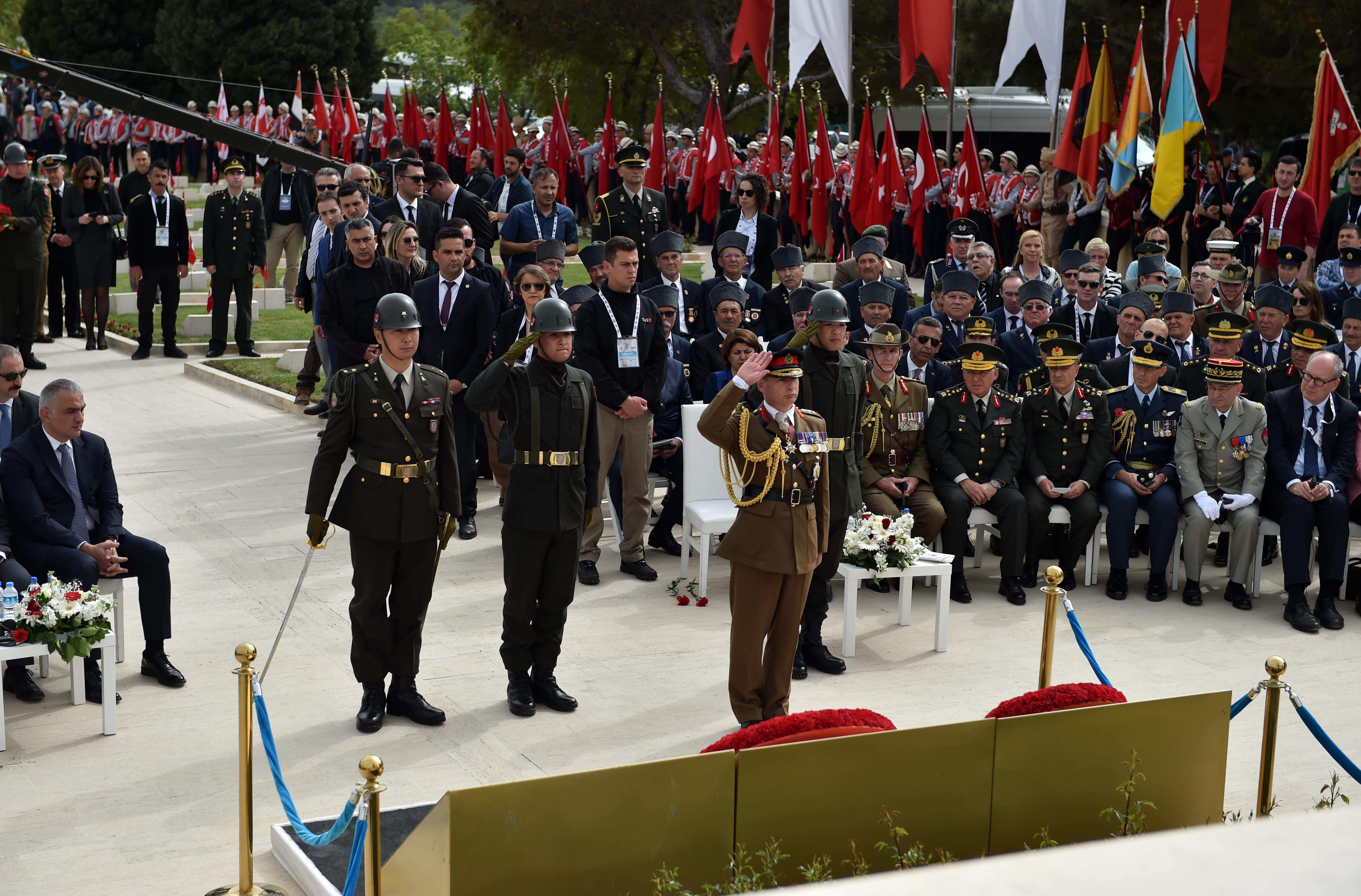 Şehitler Abidesi’nde başlayan törenlere Kültür ve Turizm Bakanı Mehmet Nuri Ersoy, Çanakkale Valisi Orhan Tavlı, 1'inci Ordu Komutanı Orgeneral Musa Avsever, 2'nci Kolordu Komutanı Korgeneral Zekai Aksakallı, Boğaz ve Garnizon Komutanı Tuğamiral Levent Kerim Uça başta olmak üzere Belediye Meclis Üyesi Süleyman Canpolat, ülkelerin temsilcileri, askeri erkan, kentliler ve çok sayıda davetli katıldı.