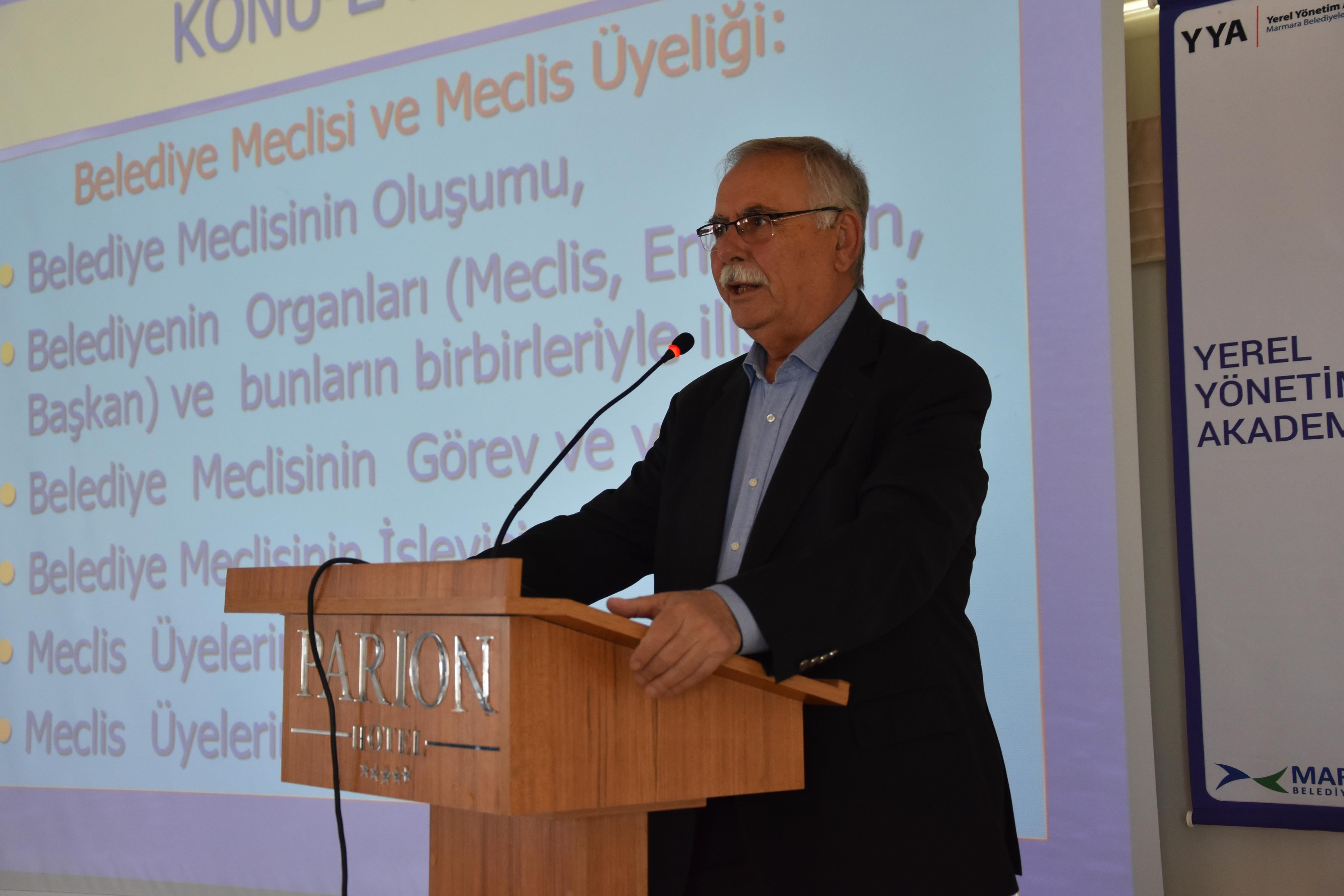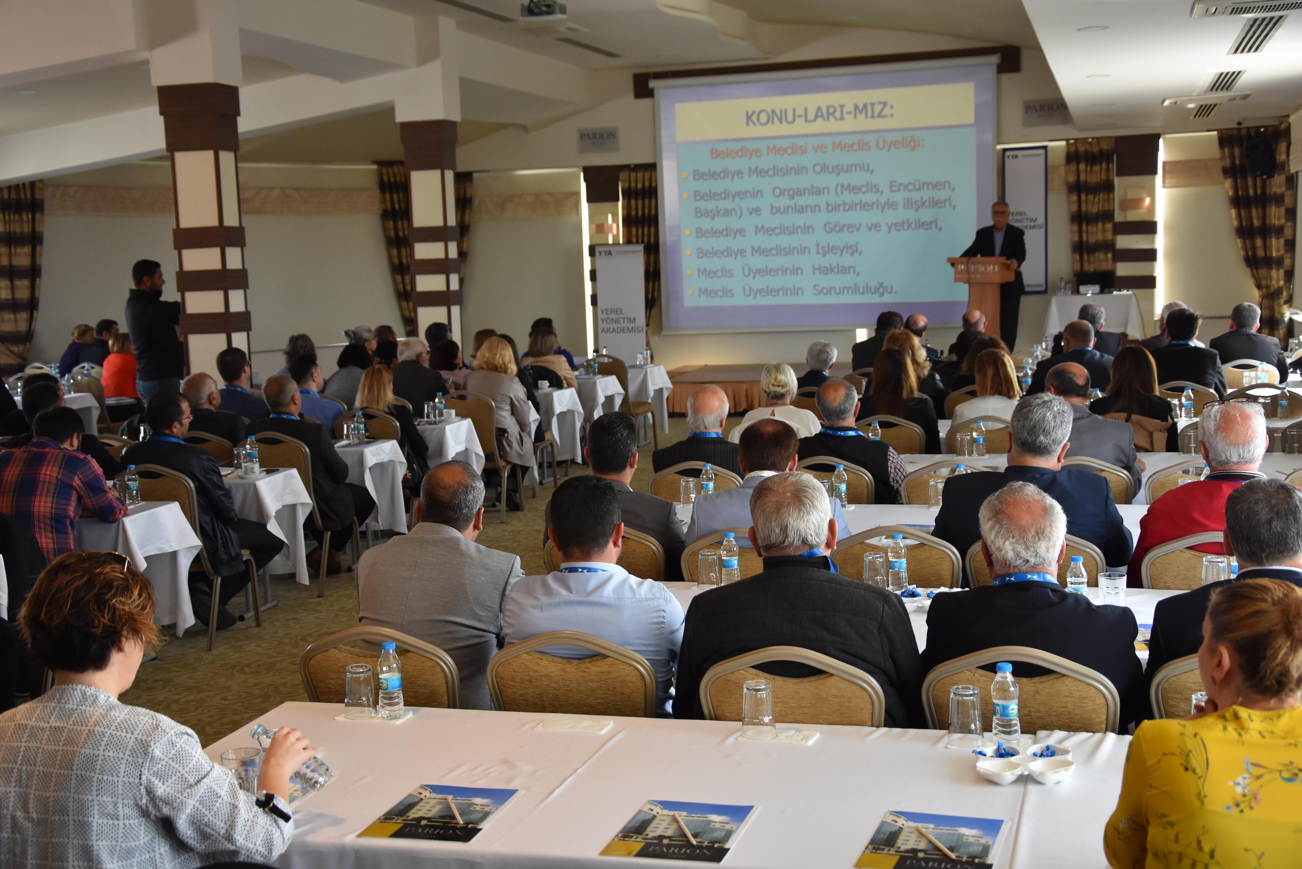 Eğitim çalışmasında, Belediyenin organları ve birbiriyle ilişkileri, meclis toplantılarının icrası (gündem, davet, işleyiş), meclis kararları ve yürürlüğe girme süreci, meclisin görev ve yetkileri, encümen seçimi, çalışma usulü, görev ve yetkileri, meclis üyelerinin ücret, izin ve diğer sosyal hakları, meclis üyelerinin idari, mali ve cezai sorumlulukları, meclis üyeliğinin sona ermesi ve meclisin feshi, meclis ihtisas komisyonları oluşumu ve görev ve çalışma usulleri, belediye meclisinin denetim yetkileri ve usulü, denetim komisyonu görevi ve çalışma usulü, meclisin belediye başkanını denetim yöntemleri, meclisin imar planı yapım ve değişikliğine ilişkin çalışma usulü konularına ilişkin Av. Kadir Erol tarafından katılımcılara bilgiler verildi.