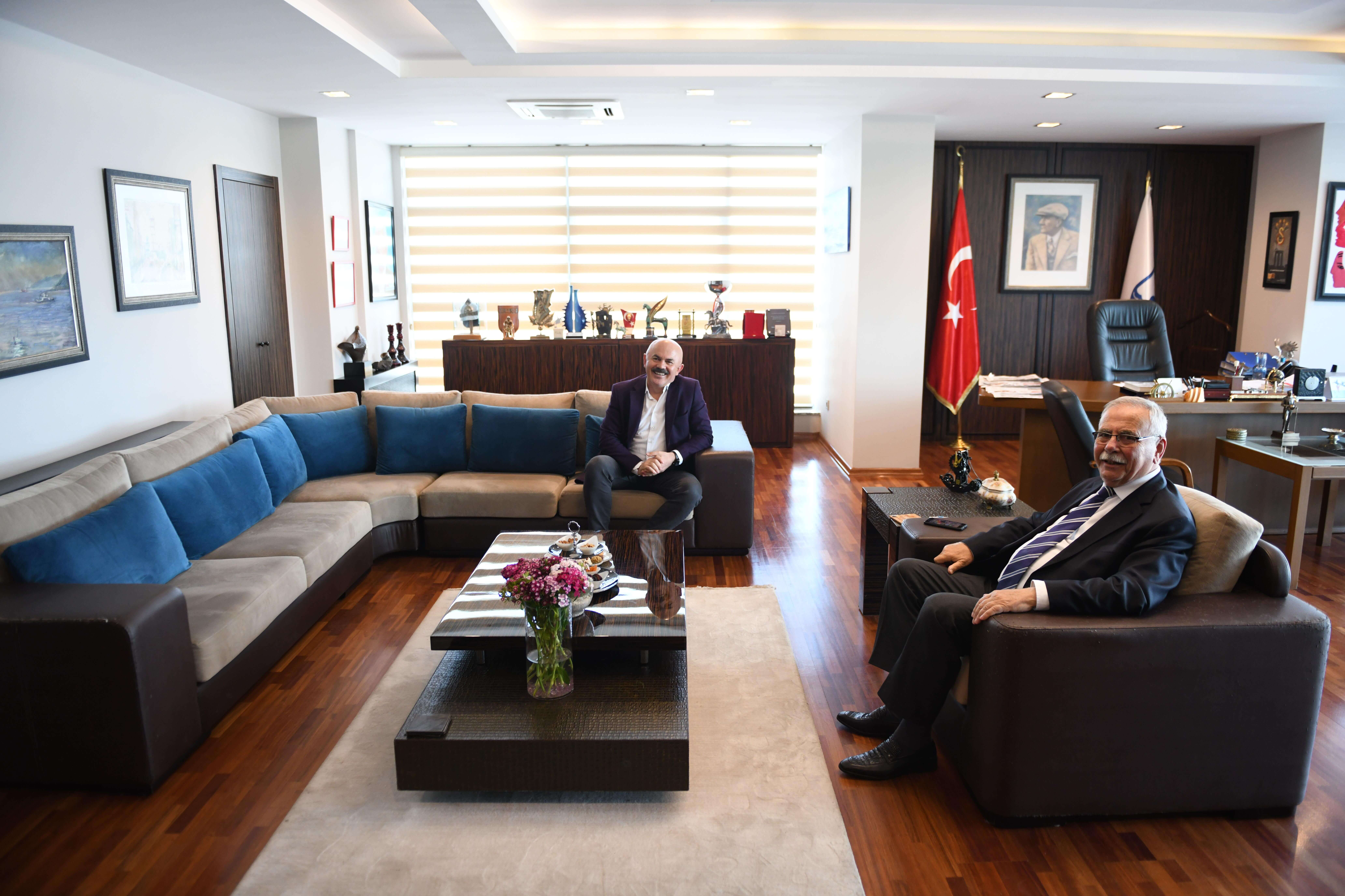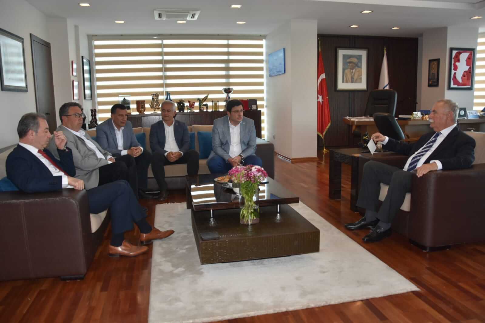 Başkan Gökhan ardından Kadastro Müdürü Vedat Şahinoğlu'nu da makamında ağırladı. Şahinoğlu da Başkan Gökhan'ı tebrik ederken, Başkan Gökhan da nezaket ziyaretinden dolayı Şahinoğlu'na teşekkürlerini iletti.