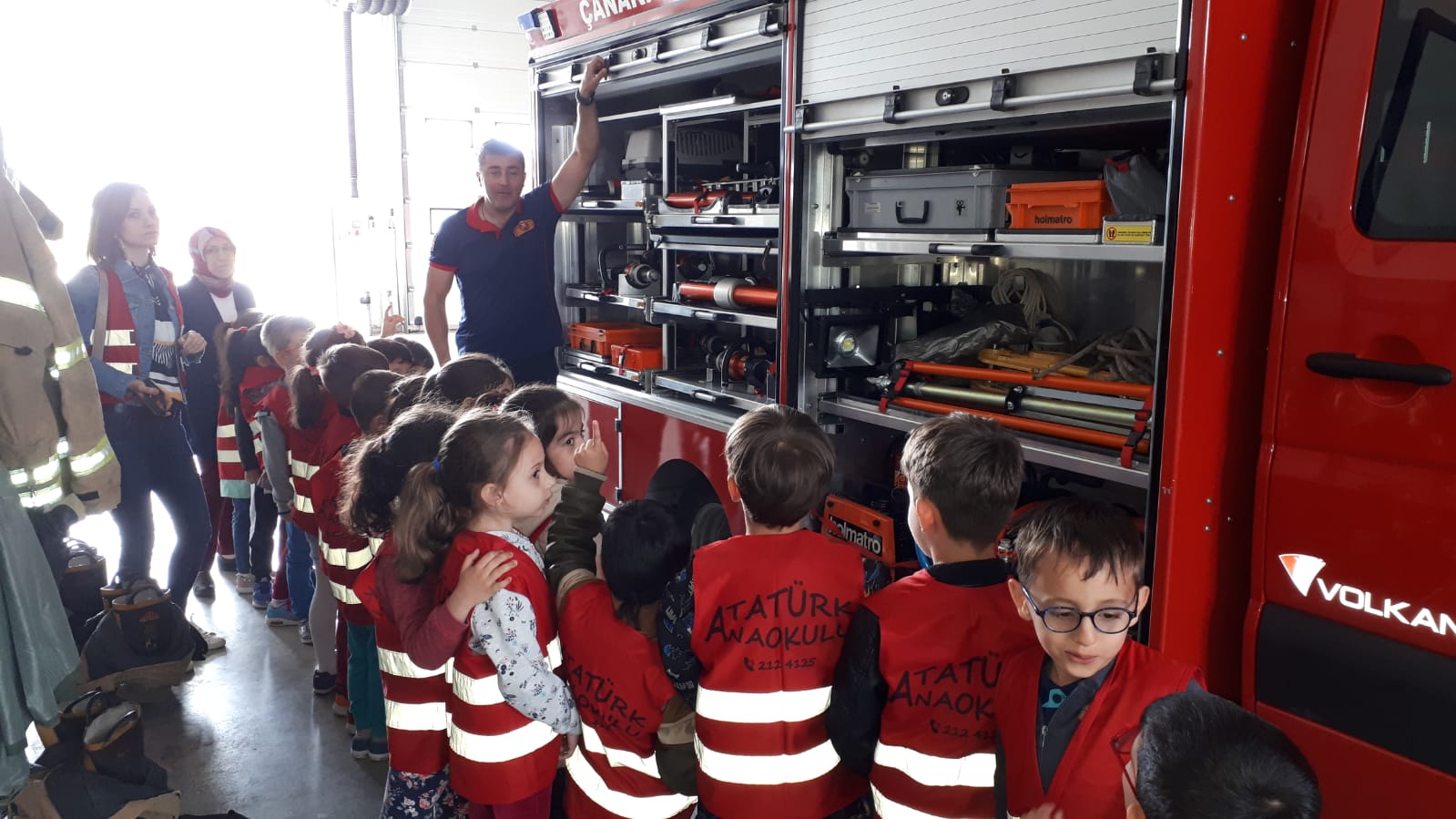 Çanakkale Belediyesi İtfaiye ve Acil Durum Müdahale Merkezinde gerçekleşen ziyarette Atatürk Anaokulunun minik öğrencilerini ağırlayan personel, ilk olarak itfaiye binasını gezdirerek itfaiyecilik hakkında bilgi verirken, itfaiye araçlarını tanıttı. Minik öğrenciler ile yakından ilgilenen itfaiye personeli, yaş gurubuna uygun olarak yangın sırasında yapılması gerekenler hakkında bilgi verdi. Ziyaret sonunda minik öğrenciler itfaiye personellerine verdikleri bilgiler nedeni ile teşekkür etti.