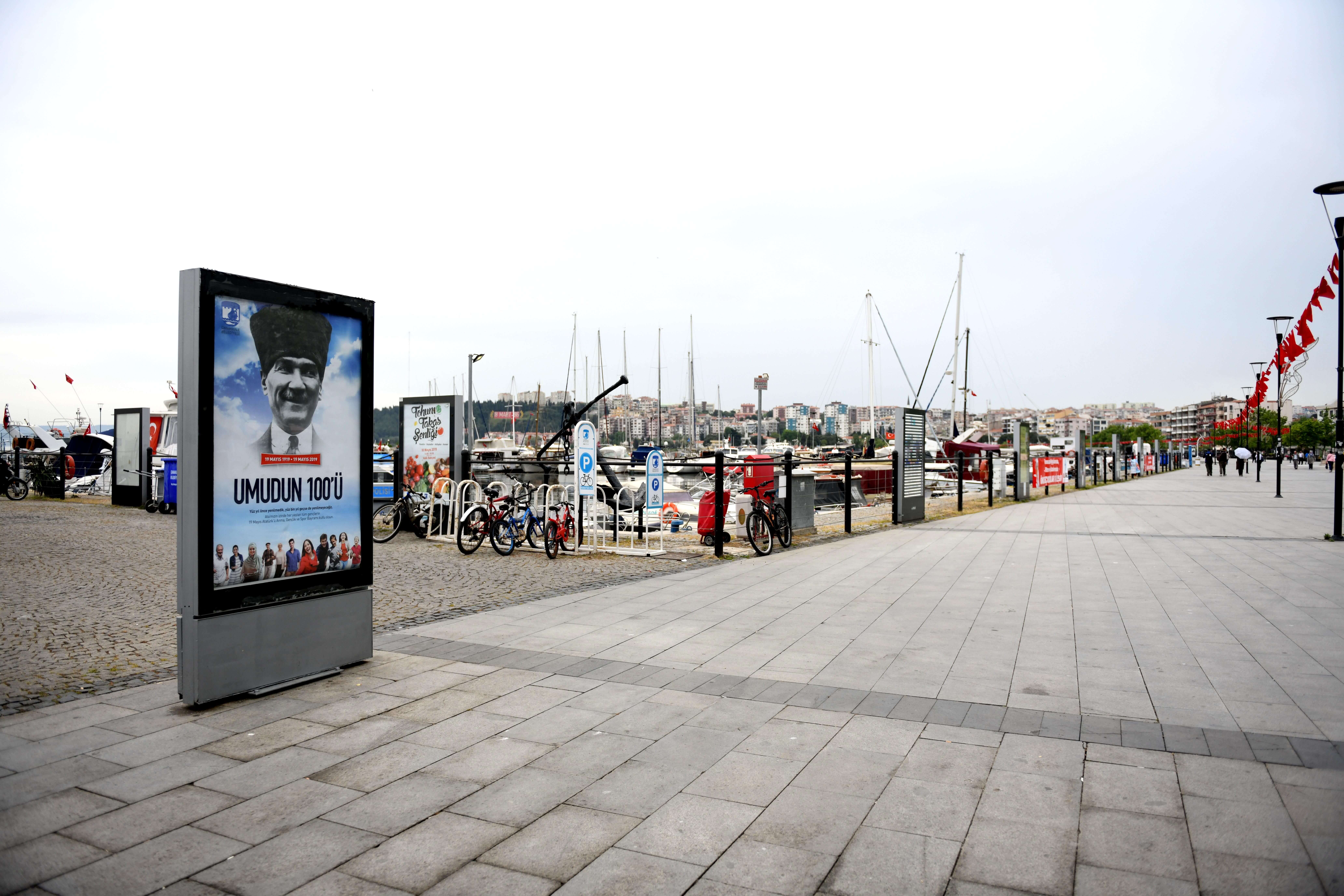 Bu kapsamda kentin pek çok noktası Atatürk posterleri ve Türk bayrakları ile donatılırken, Çanakkale Belediyesinin günün anlam ve önemine ilişkin görsel tasarımları da kentin çeşitli noktalarındaki yerlerini aldı.