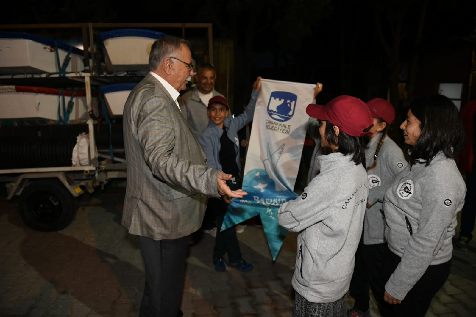 Ulu Önder Mustafa Kemal Atatürk'ün Bandırma Vapuru ile Samsun'a çıkarak KurtuluÅŸ Savaşı fiili olarak baÅŸlatmasının 100. Yıldönümü nedeni ile Samsun'da düzenlenen yelken yarışmasına katılmak için Çanakkale Yelken Kulübü'nün 5 minik sporcu yola çıktı. Çanakkale Belediyesinin destekleri ile Samsun'da düzenlenecek olan yarışma için yola çıkan minik sporcuları Belediye BaÅŸkanı Ülgür Gökhan UÄŸurladı. Yelken Kulübü'nde minik sporcular, aileleri ve eÄŸitmenleri ile bir araya gelen BaÅŸkan Gökhan, yarışma hakkında bilgi alırken, sporculara baÅŸarılar diledi. Kısa bir sohbetin ardından BaÅŸkan Gökhan'la hatıra fotoÄŸrafı çektiren sporcular, ardından Milli Mücadelenin 100. Yıldönümü nedeni ile düzenlenen yarışmaya katılmak üzere yola çıktılar.Â