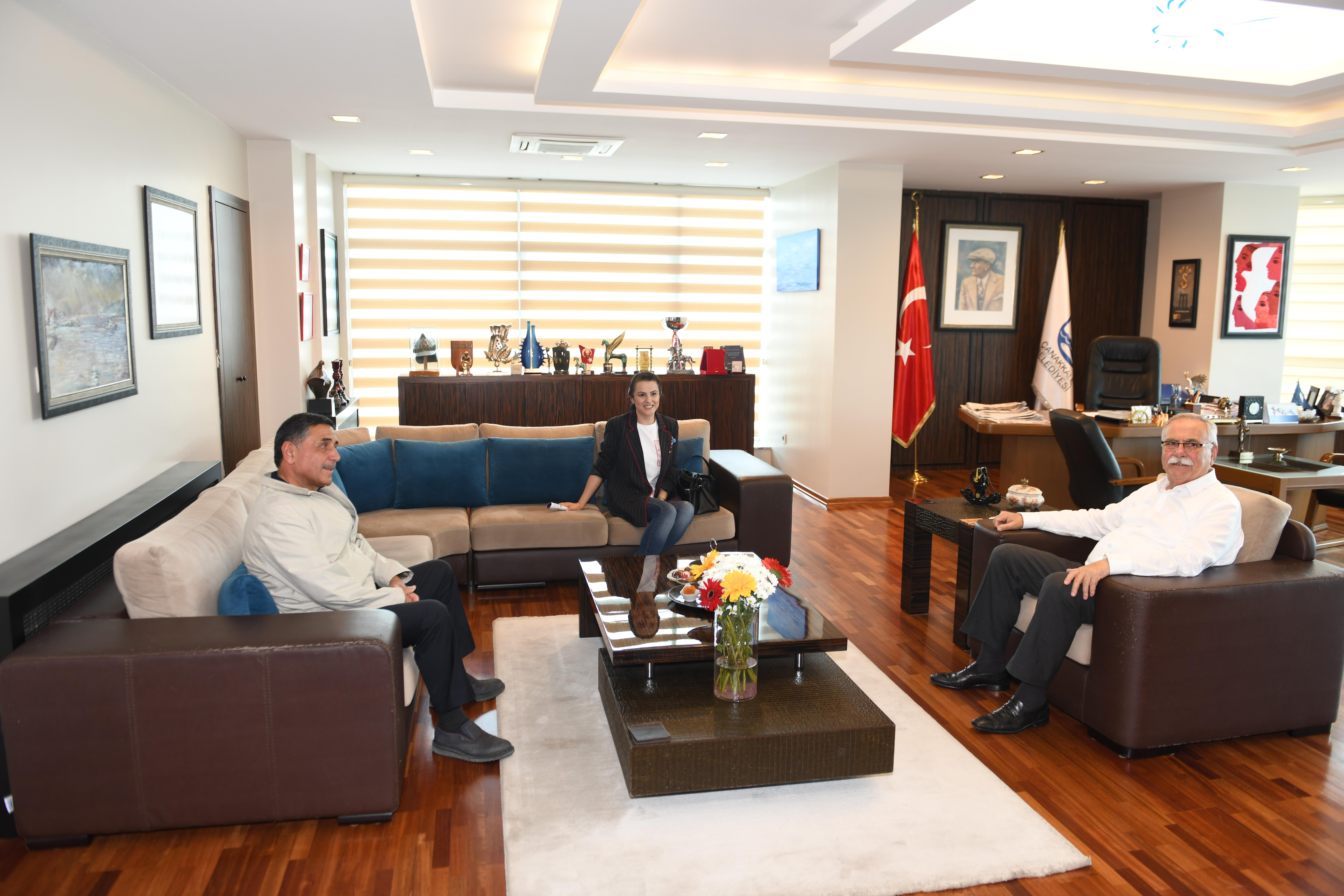 Belediye Başkanı Ülgür Gökhan, Güzelyalı Köyü Muhtarı Elif Çelik ve Balıkçı Tamer Erbil'i makamında ağırladı.