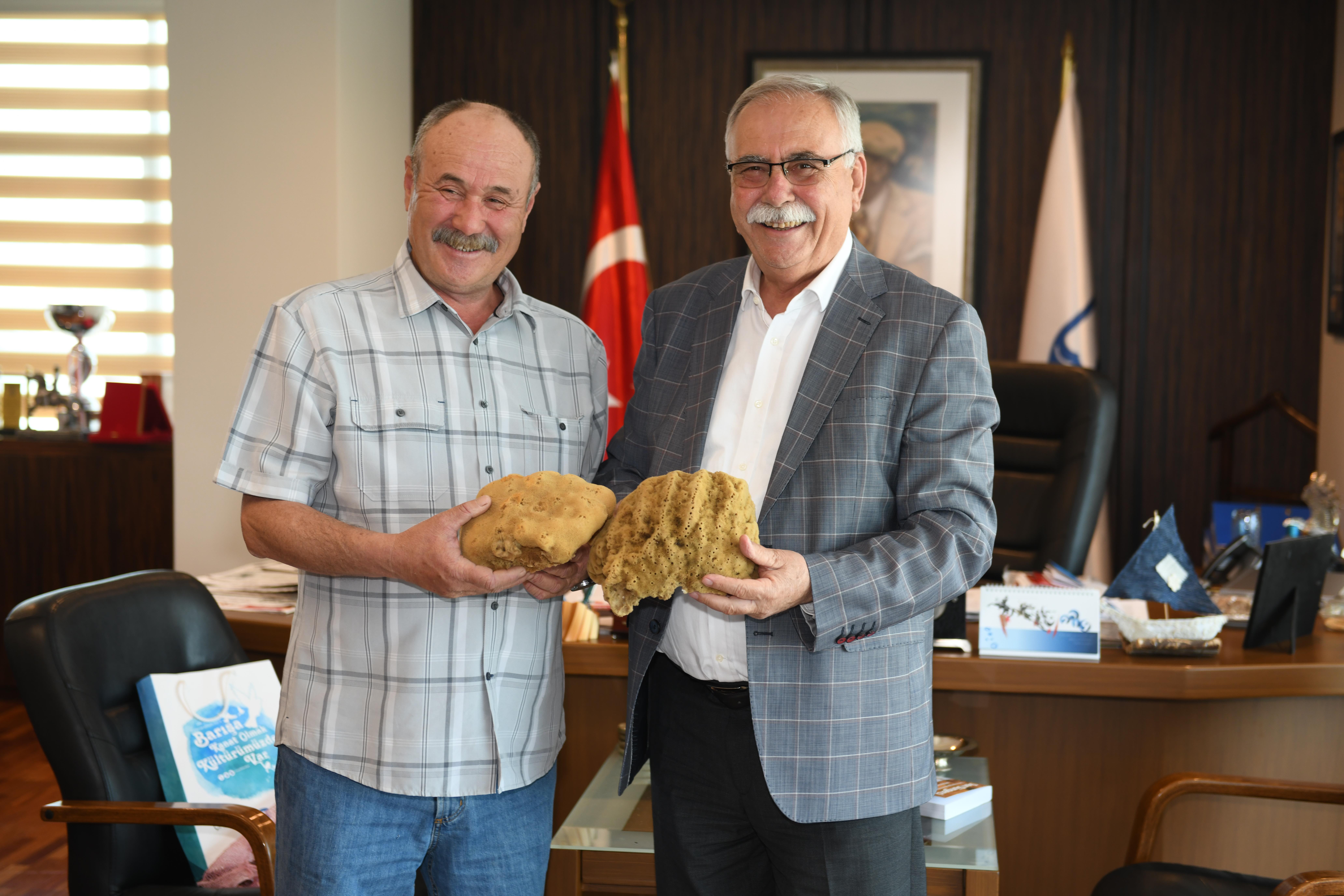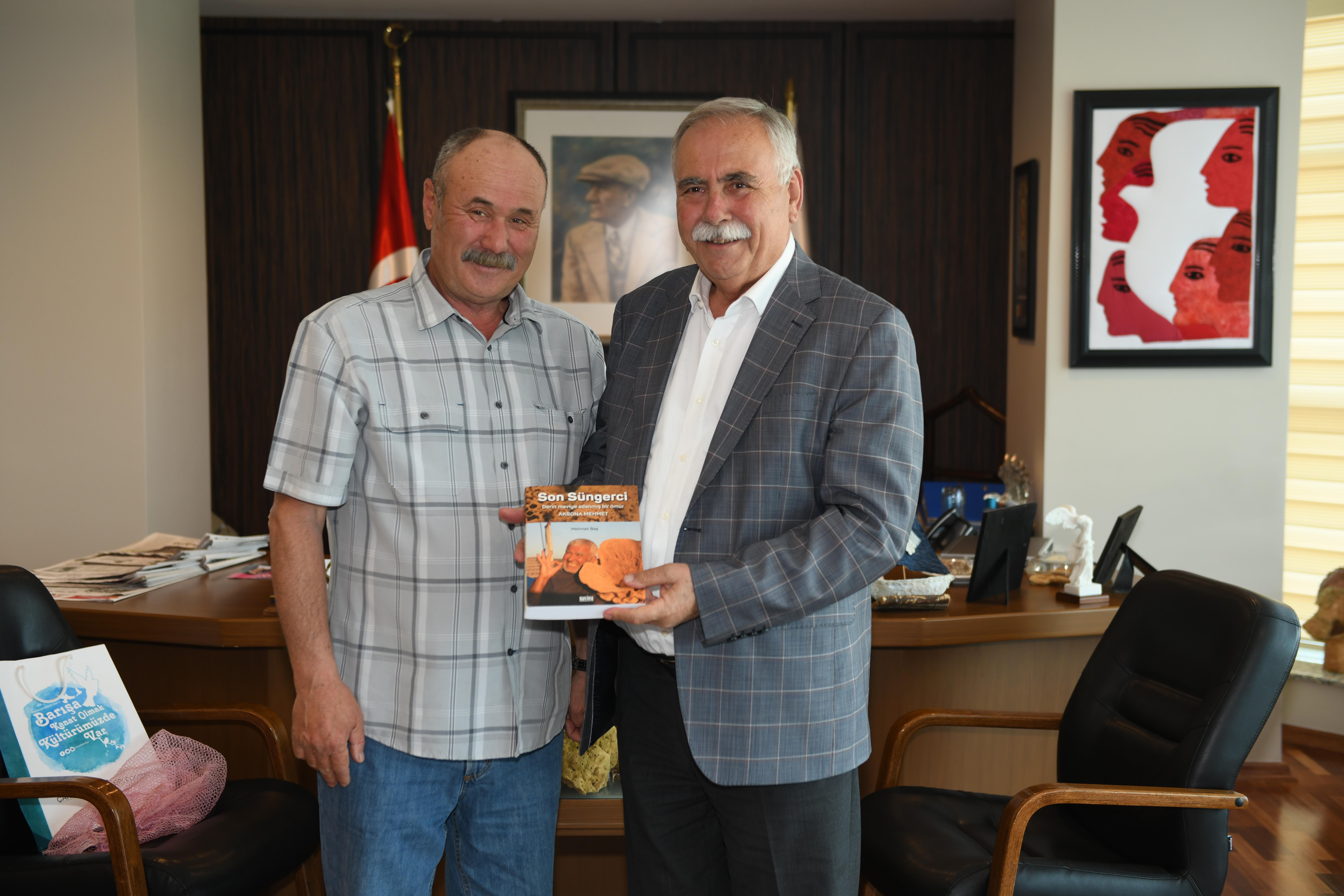 Ardından Balıkçı Tamer Erbil'i makamında ağırlayan Başkan Gökhan, tebrikleri kabul etti. Sohbet ortamında geçen ziyarette Erbil Başkan Gökhan'a sünger ve Aksona Mehmet'in yazdığı “Son Süngerci” isimli kitabı hediye etti. Ziyaret, karşılıklı sohbetin ardından son buldu.