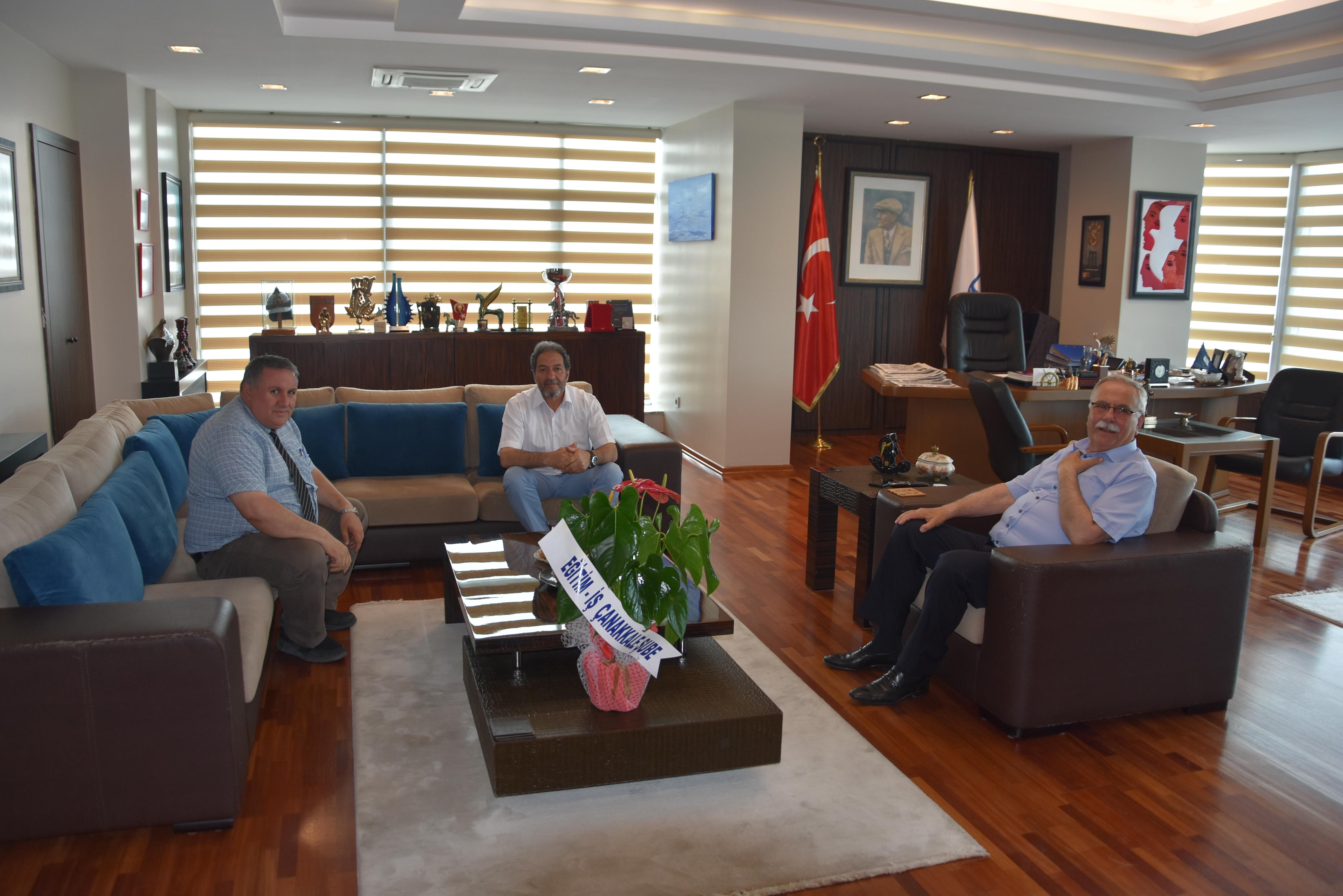 Başkan Gökhan’ın ilk konuğu Eğitim-İş Çanakkale Şube Yönetimi oldu. Şube Başkanı Ahmet Mantaş ve yönetimini ziyaretleri nedeni ile memnuniyetini dile getiren Başkan Gökhan, tebrikleri kabul etti. Ziyaret, güncel konulara ilişkin sohbettin ardından sona erdi.