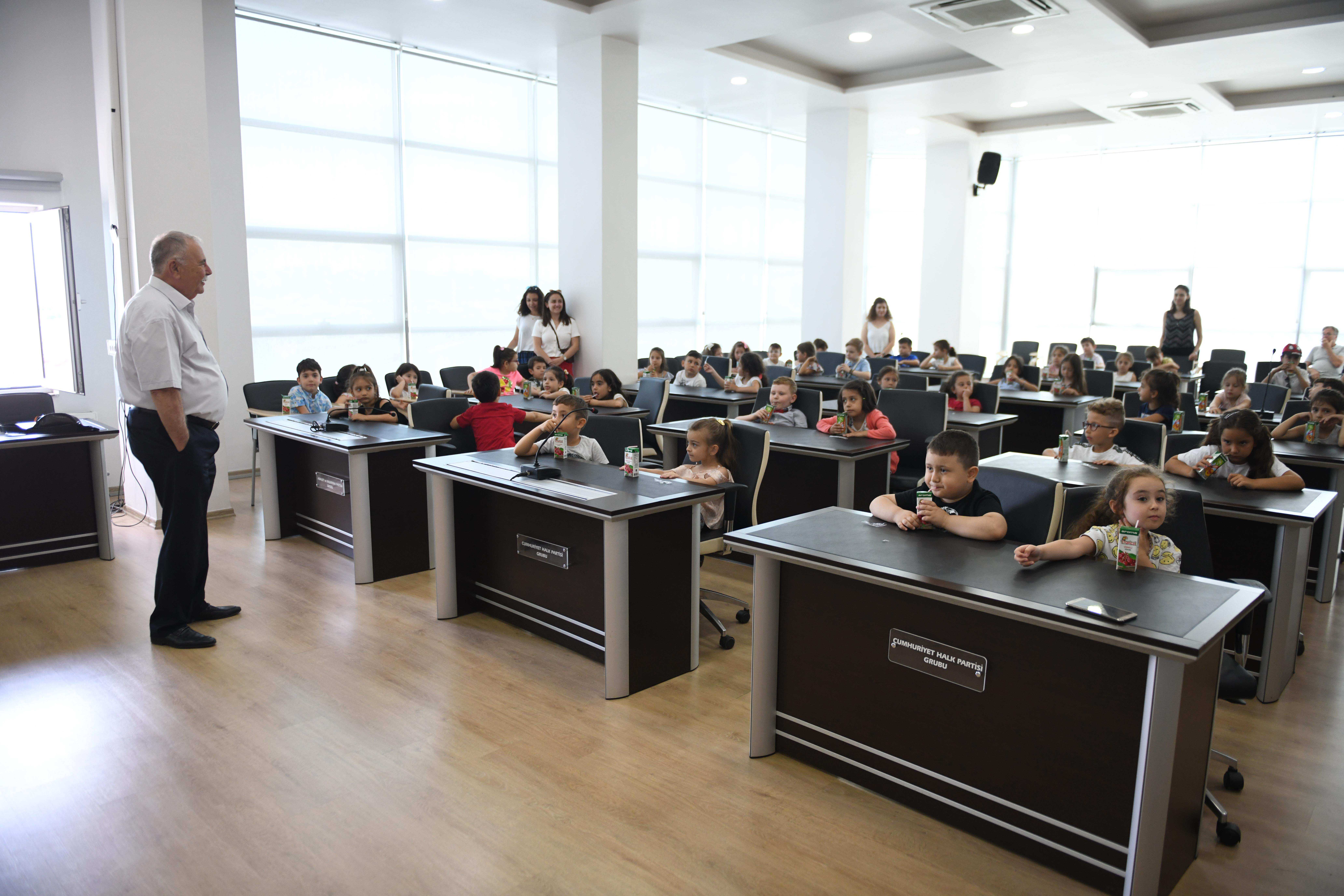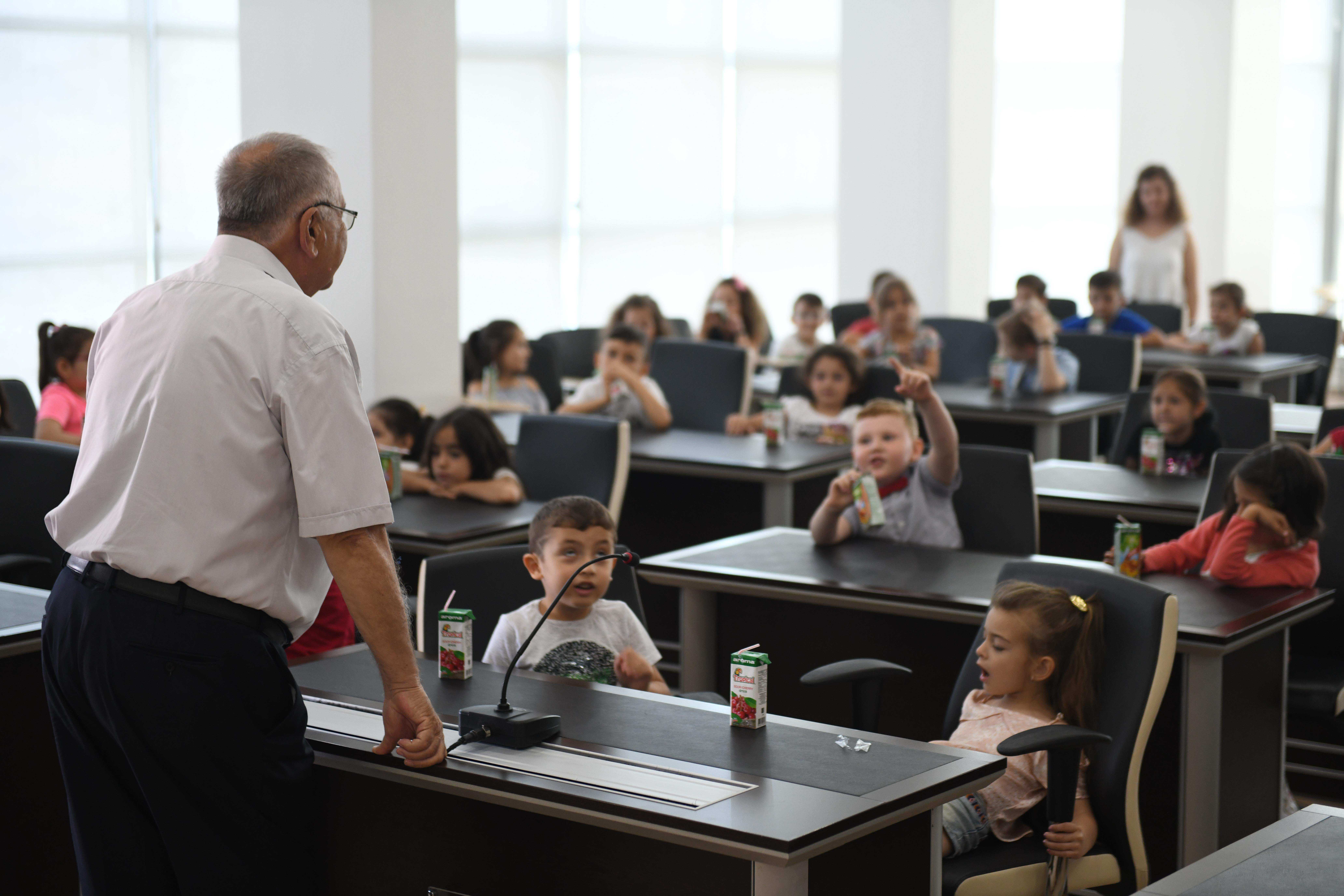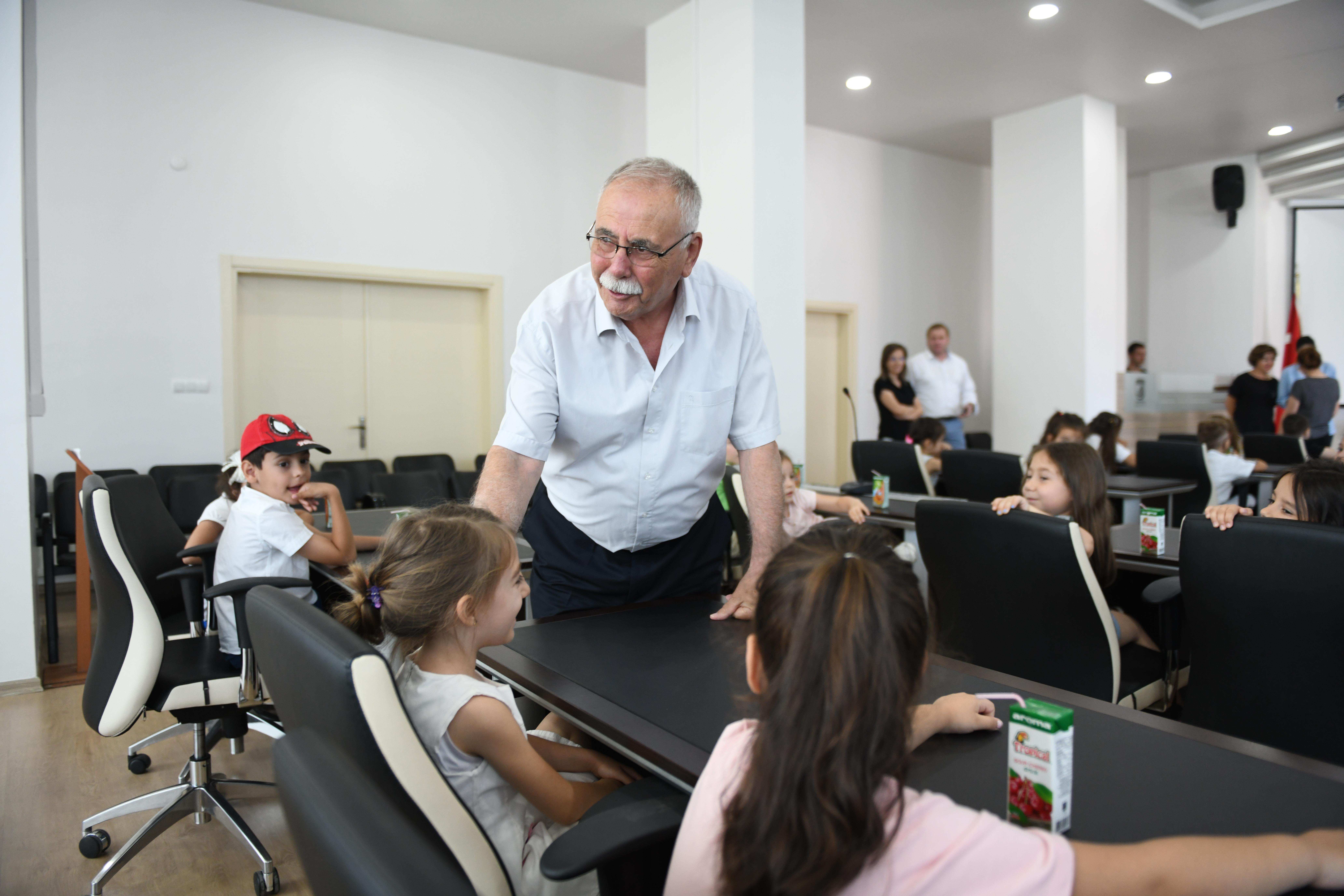 Öğrenciler ile birlikte kreş yöneticileri ve öğretmenleri Belediye Meclis Salonu'nda ağırlayan Başkan Gökhan, özellikle miniklerle keyifli bir sohbet gerçekleştirdi. Öğrencilerin Ata'm Kreş'teki anılarını dinleyen Başkan Gökhan, çalışma ve faaliyetlere ilişkin de yöneticilerden bilgi aldı.