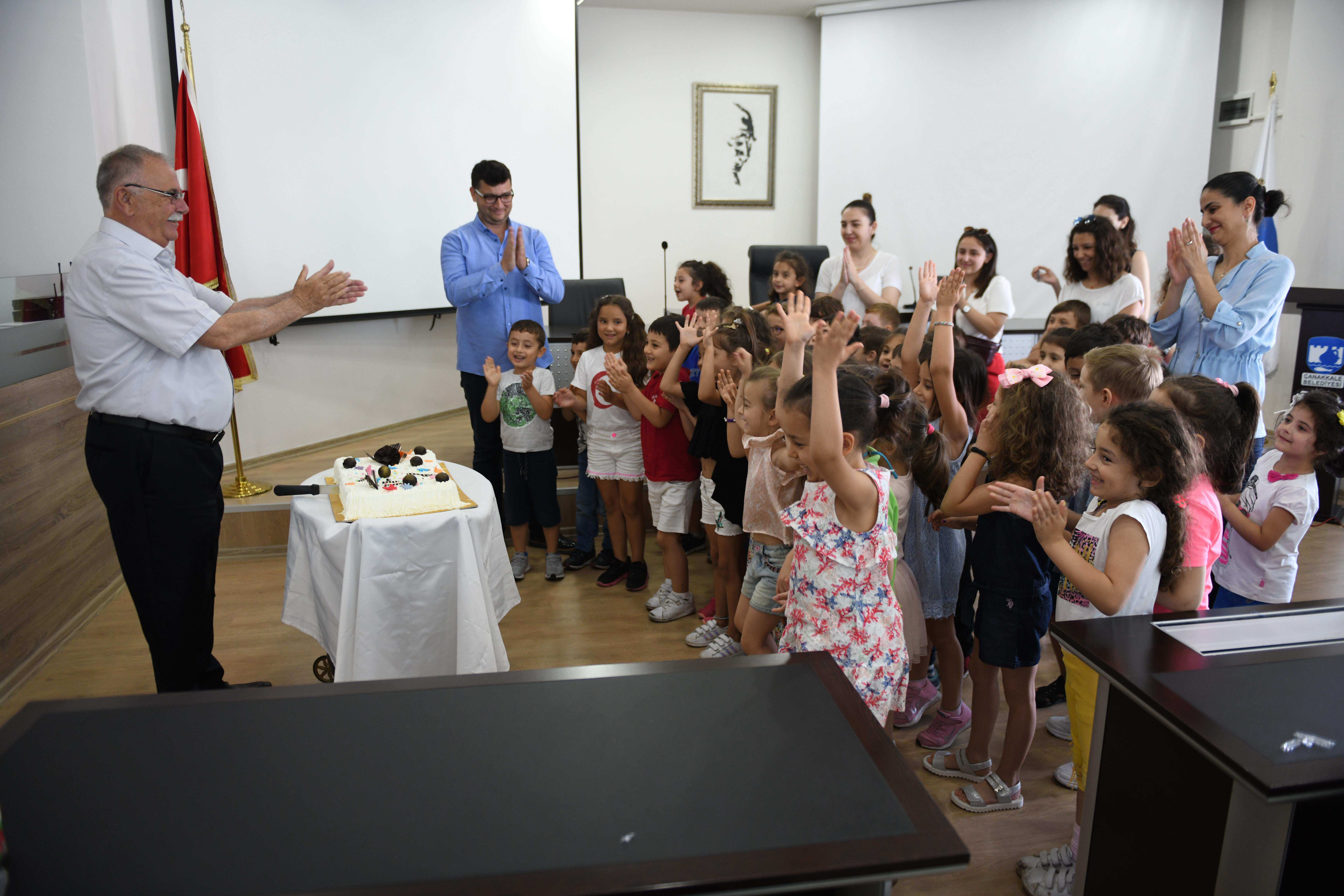 Çanakkale Belediyesinin 2016 yılında faaliyete başlattığı Ata'm Kreş ve Gündüz Bakımevi'nin ilk mezunları, Belediye Başkanı Ülgür Gökhan'ı ziyaret etti.