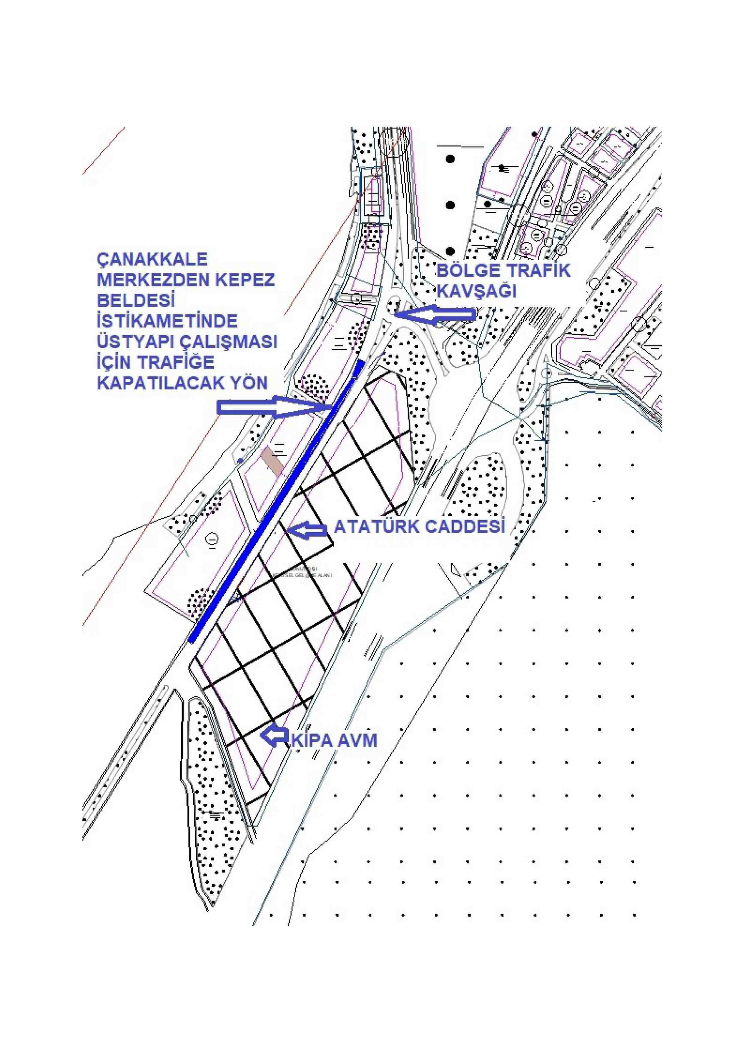 Bu kapsamda, 8 Temmuz 2019 Pazartesi günü Barbaros Mahallesi Atatürk Caddesi üzerinde Bölge Trafik Kavşağından Oto Kent Sitesi Kavşağına (Çanakkale Merkezden Kepez istikameti) gidiş yönünde çalışmalara başlanacak. Belirtilen bölgede 8-14 Temmuz 2019 tarihleri arasında gerçekleştirilecek olan çalışmalar kapsamında ilgili alan trafiğe kapanacak olup, diğer yönde tek şerit üzerinden gidiş-geliş şeklinde yönlendirme yapılacaktır.