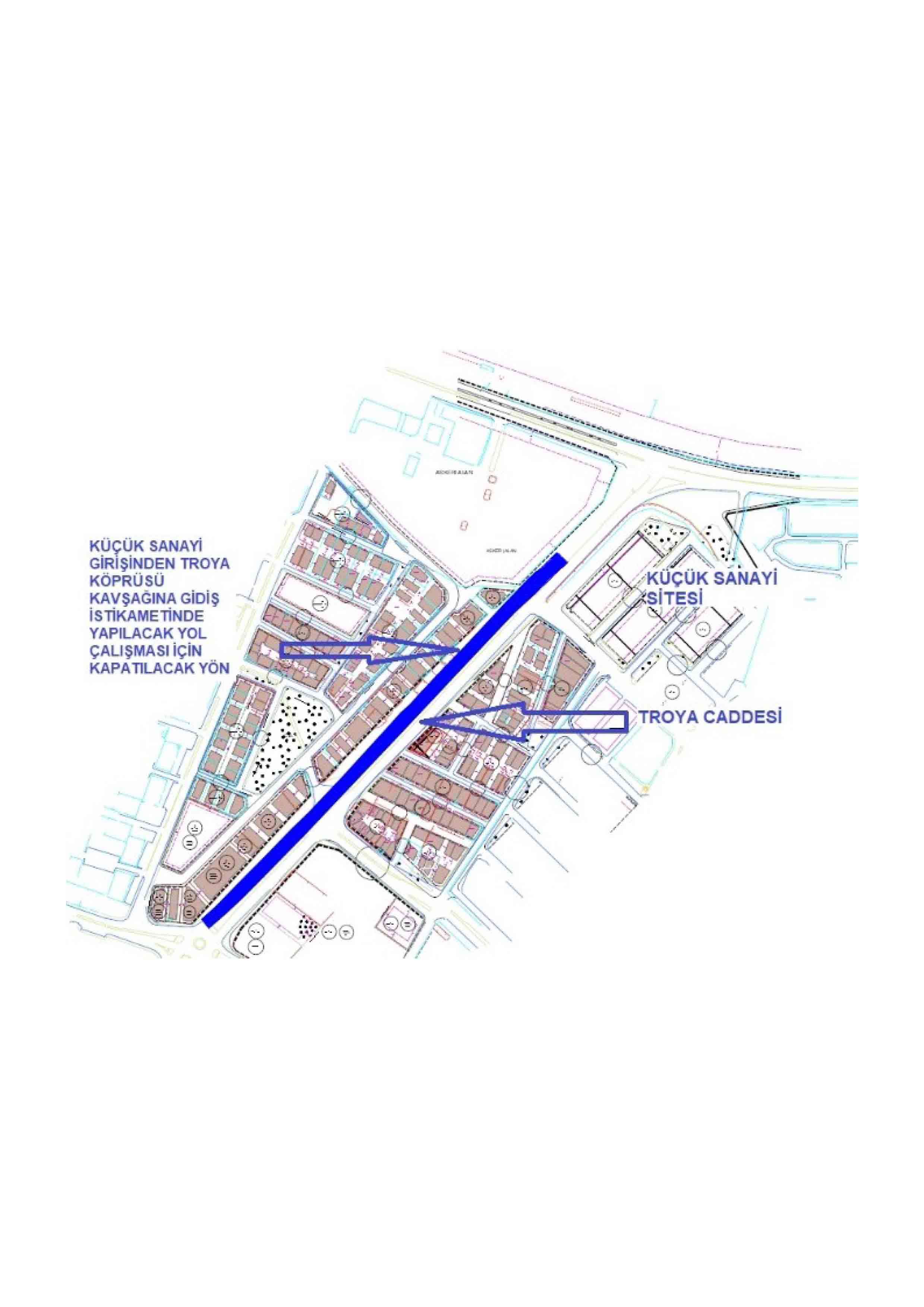 Bu kapsamda, 16 Temmuz 2019 Salı günü İsmetpaşa Mahallesi Troya Caddesi üzerinde Küçük Sanayi Sitesi girişinden, eski İtfaiye kavşağına (Küçük Sanayi Sitesi Girişinden Troya Köprüsü istikametinde) gidiş yönünde çalışmalara başlanacak. Belirtilen bölgede 16-23 Temmuz 2019 tarihleri arasında gerçekleştirilecek olan çalışmalar kapsamında ilgili alandaki iki şerit trafiğe kapatılacak olup, aynı yol üzerinde tek şeritten trafik akışı kontrollü olarak sağlanacaktır.