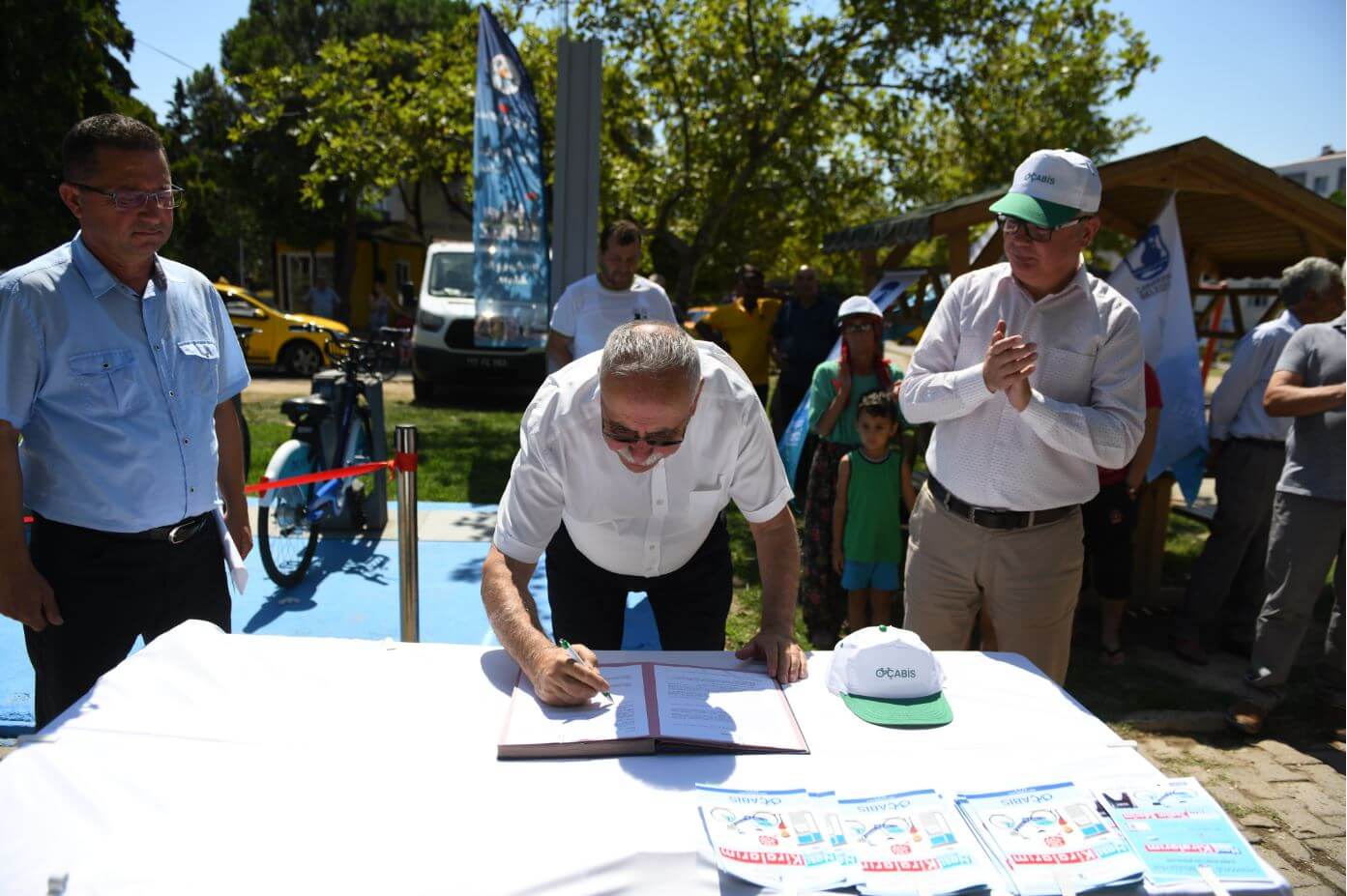 Konuşmalarından arıdan Başkan Gökhan ve Arslan ortak protokole imza atarken, kurdele kesimi ile Kepez Meydanında bulunan ÇABİS istasyonun açılışını gerçekleştirdi. Tören sonrasında Başkan Gökhan ve Arslan Kepez, Dardanos ve Güzelyalı'ya kurulan ÇABİS istasyonlarını gezerek incelemede bulunurken, yapılan çalışmalar hakkında bilgi aldı.