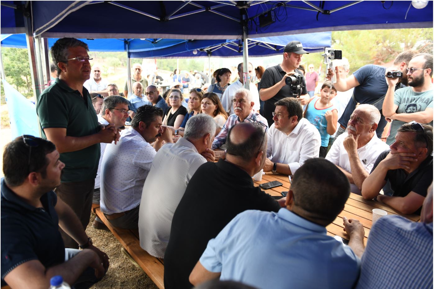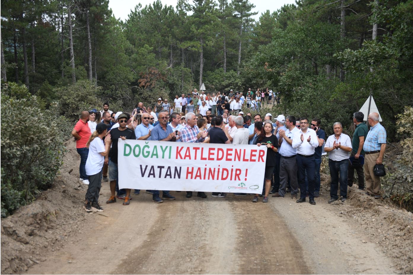 Maden alanında açıklamada bulunan Cumhuriyet Halk Partisi Çanakkale Milletvekili ve Genel Başkan Yardımcısı Muharrem Erkek; “Bizim yıllık tarımsal gelirimiz 2 milyar dolar ve Çanakkale'nin, Balıkesir'in tüm verimli tarım arazilerini Kazdağlarından doğan sular besliyor. Yaşam yalnızca asfalt yol değildir, beton bina değildir. Tabiattır, ağaçtır, çiçektir, böcektir. Doğal dengeyi bozmaya hiç kimsenin hakkı yok. Bizim mücadelemiz haklı ve kutsal bir mücadele çünkü biz suyumuzu koruyoruz. Ağaçları, tabiatı, toprağımızı koruyuz. Bugün dünyada en değerli şey su. Dünyanın temiz su kaynakları tükenmek üzere. Kazdağları, Bin Pınarlı İda dünyanın en zengin temiz su kaynaklarına sahip. Bu ağır metaller, bu siyanür yeraltı ve yer üstü kaynaklarımızı kirletirse bu bölgede yaşam biter. Bu çocuklarımızın geleceği için verilen siyaset üstü bir mücadele. Bu memlekete hizmet etiğini söyleyenler gelsin buraları gezsinler. Biz, Milletvekillerimiz ile birlikte girilmeyen alanlara da girdik. Oradaki ağaç katliamını da gördük ve bu devam ediyor. TEMA Vakfı'ndan uzman bir heyetin tespit ettiği rakam en az 195 bin ağacın kesildiği yönünde. Tarım ve Orman Bakanlığı Çevre Bakanlığı altın şirketleri ile kol kola girmiş onları savunuyorlar. Yalnızca burada değil Çanakkale'nin her tarafında bu şekilde. Burası Kazdağları değil diyenler yalan söylüyorlar. Kazdağları bir ekosistem ve insanlığa binlerce yıl hizmet edecek bir ekosistem. Gözümüzün bebeği gibi korumak zorunda olduğumuz bir coğrafya. Çevre ve Şehircilik Bakanlığı arama çalışmalarında siyanür kullanılmayacak diyor. Siyanür ayrıştırma aşamasında kullanılacak. Ormanları korumakla sorumlu Bakan 13-14 bin ağaç kesildi diyor. Yalan söylüyor. Biz bu coğrafyayı, tabiatımızı korumakla yükümlüyüz. Onun için buradayız. Bu mücadele büyüyecek. İktidarın bu faaliyetleri durdurma yetkisi var. Şirketler hiç önemli değil, mücadelemiz onlara bu izni verenlerle. İktidar sahipleri derhal bu haksız, hukuksuz, adaletsiz siyanürlü altın madenciliği faaliyetlerini durdurmakla yükümlüdür. Durdurmadığı sürece doğa katliamları devam edecek” dedi.