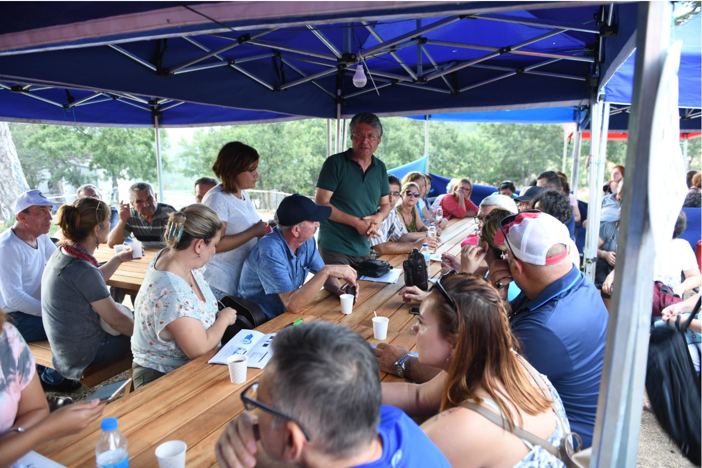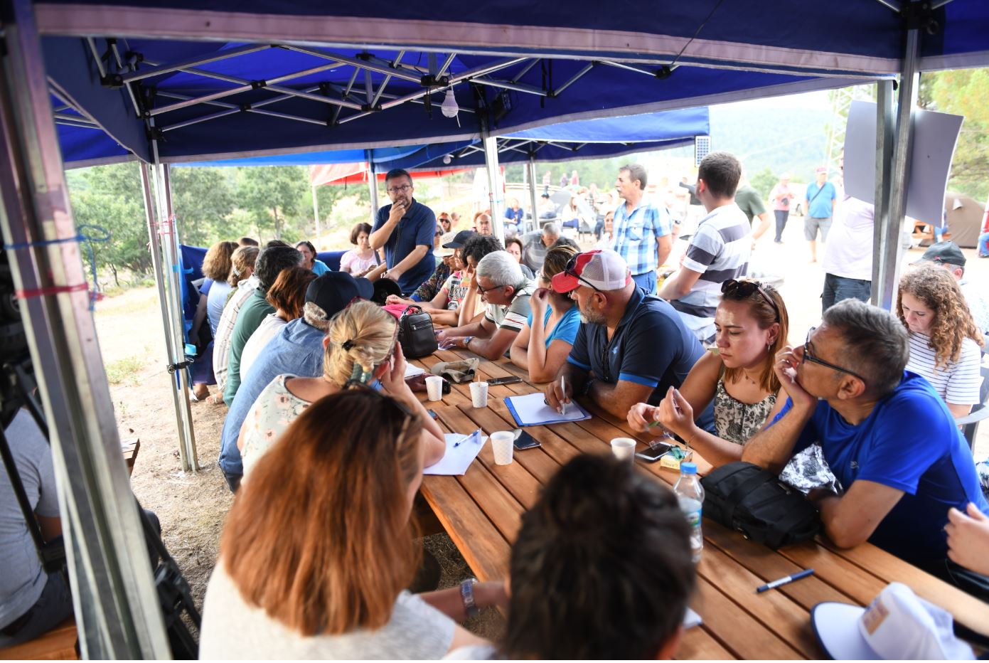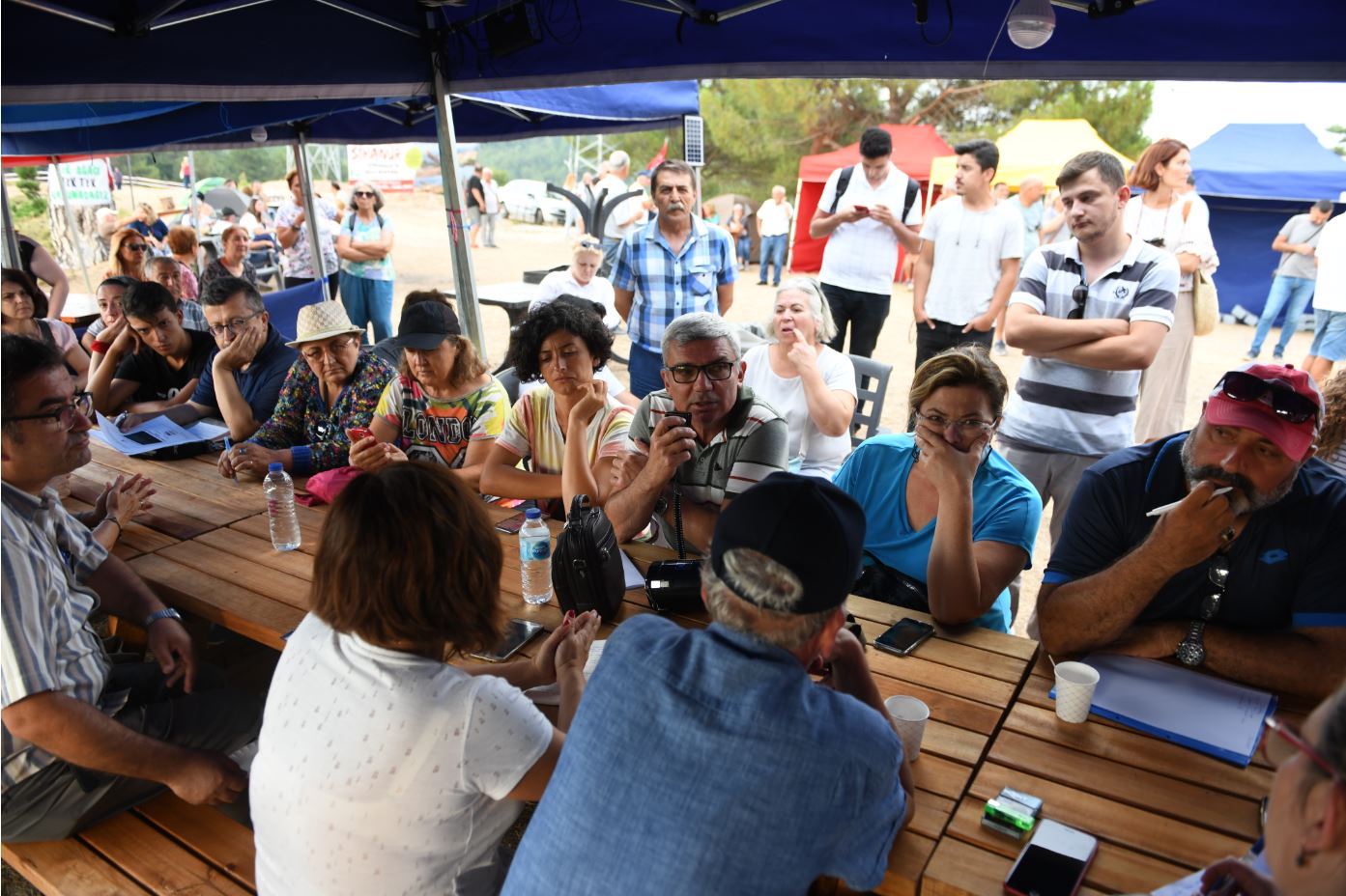 Maden alanına yapılan ziyaretin ardından Çevre Buluşması “Su Nöbeti” alanında gerçekleştirildi. Toplantıda katı atık yönetimi, hava kalitesi, su yönetimi, gürültü ve toprak kirliliği konularında karşılıklı tartışma ve bilgi alışverişi gerçekleştirilirken, Atikhisar Barajı su toplama havzasında faaliyete geçen metalik madenciliğe karşı atılacak adımlara yönelik katılımcılar önerilerde bulundu.