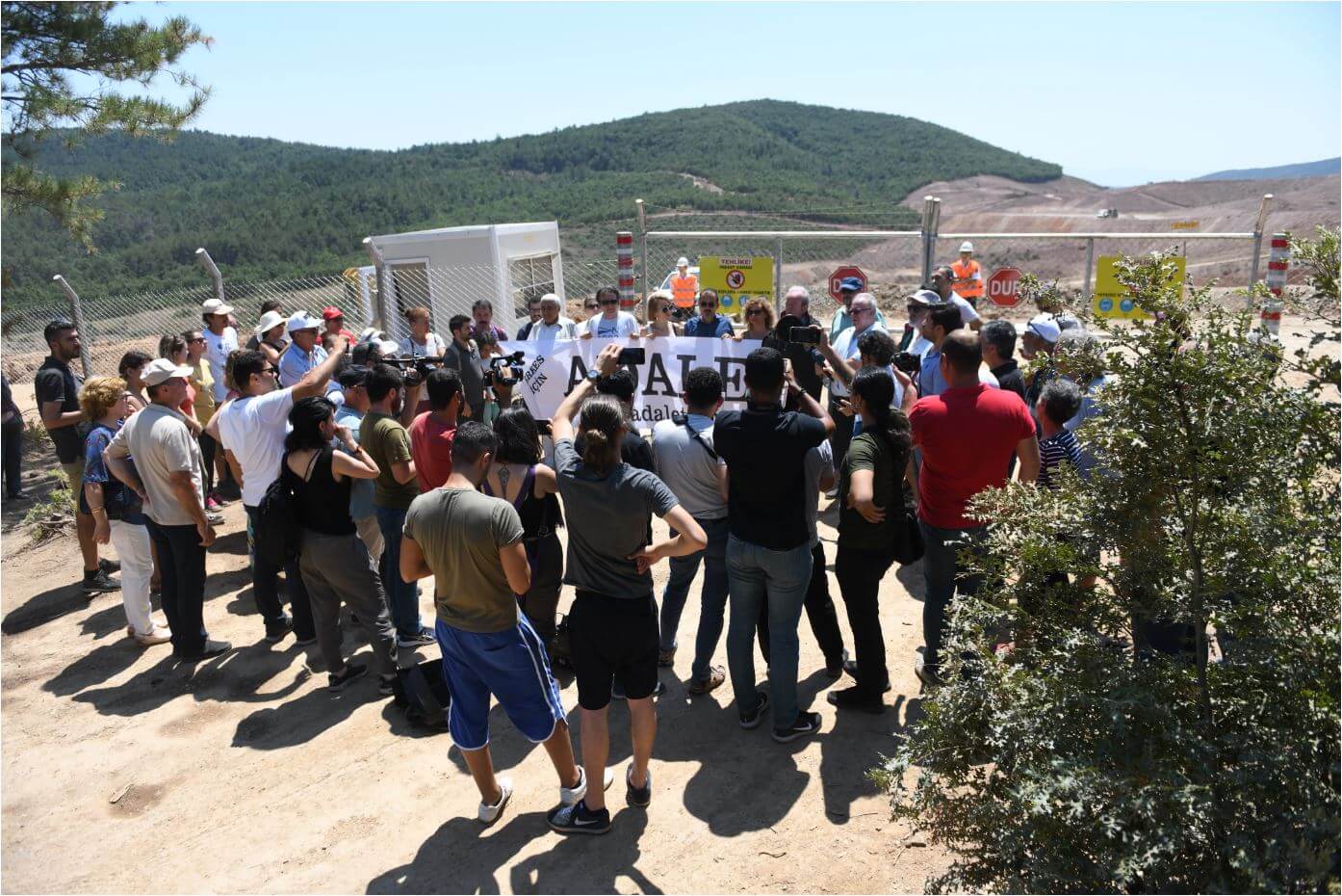 İstanbul Barosuna bağlı Adalet Nöbeti Avukatları adına basın açıklaması gerçekleştiren Avukat Selin Nakıpoğlu; “Bizler yaklaşık üç senedir ülkemizde yaşanan adaletsizliklere karşı Adalet Nöbeti tutan avukatlarız. Nöbetimiz kısa sürede İstanbul sınırlarını aştı. İl il dolaşıp adalet talebimizi dile getirdik. Bu süreçte tutuklanan avukat arkadaşlarımız için adalet talebimiz de bütün adaletsizliklere karşı durmak olarak genişledi. İşte bugün buraya Kazdağlarında yaşanan adaletsizliğe tepki göstermek için geldik. Yaşamımızı, geleceğimizi, suyumuzu, ülkemizin akciğerleri olan Kazdağlarının sesi olmak adına buradayız. Kanadalı Alamos Gold isimli şirketi altın için 200 bin ağacımızı, binlerce hayvanın yuvasını, orman ekosistemini katletmiştir. Homeros İlyada'sında ‘bol pınarlı ve vahşi hayvanların anası' diye bahsedilen Kazdağları binlerce senelik mirastır. Ülkemizin akciğeridir. Bugün hala Çanakkale'nin tek içme ve kullanma suyu bu bölgeden temin edilmektedir. Doğamızı, ağacımızı, çiçeğimizi, böceğimizi emperyalist şirketlere ve onun yerli işbirlikçisi açgözlülere peşkeş çektirmeyeceğiz” dedi.