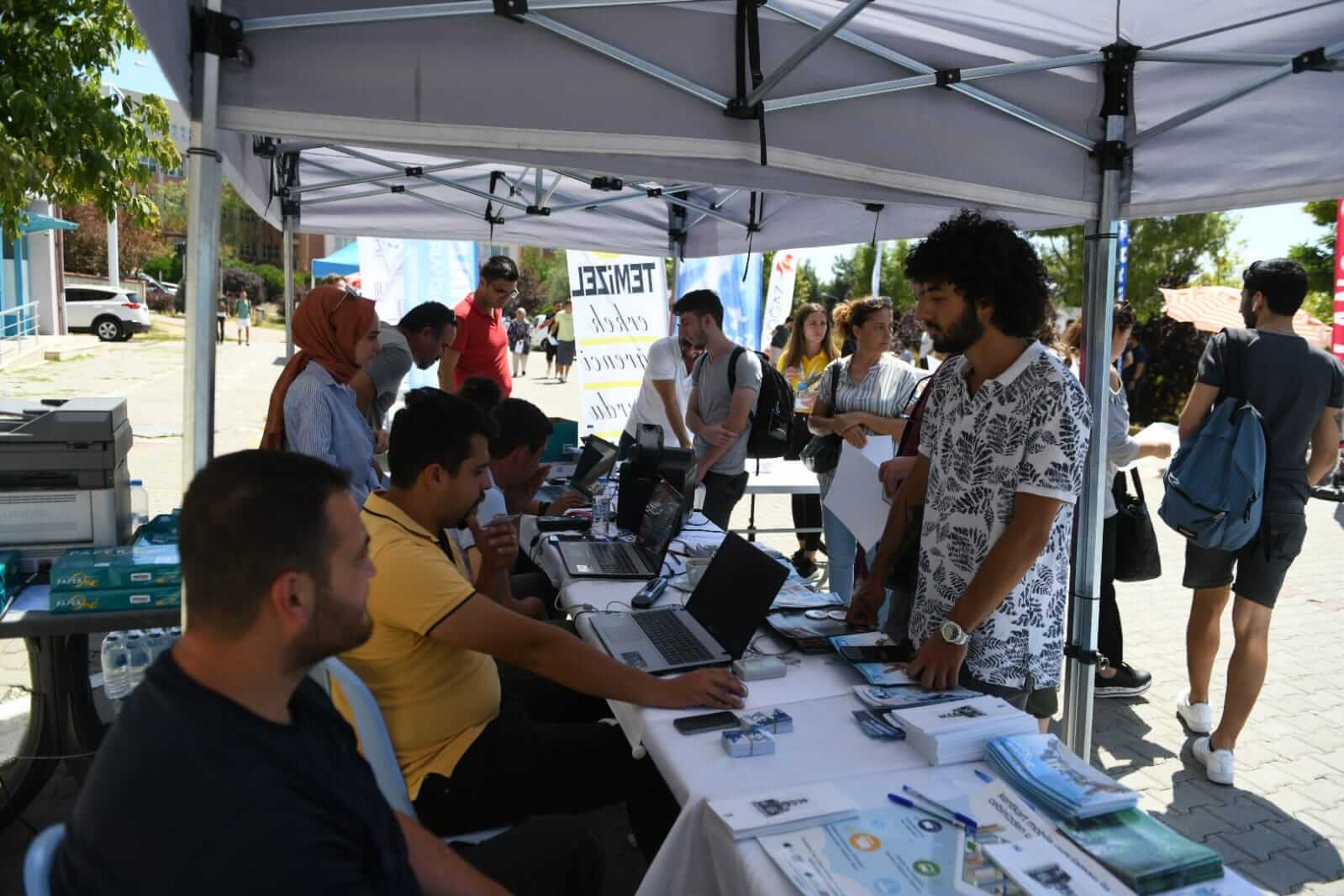 Törenin ardından Başkan Gökhan, Eğitim Fakültesi'nde kurulan Çanakkale Belediyesi standını ziyaret ederek, burada yapılan çalışmalar hakkında bilgi aldı.