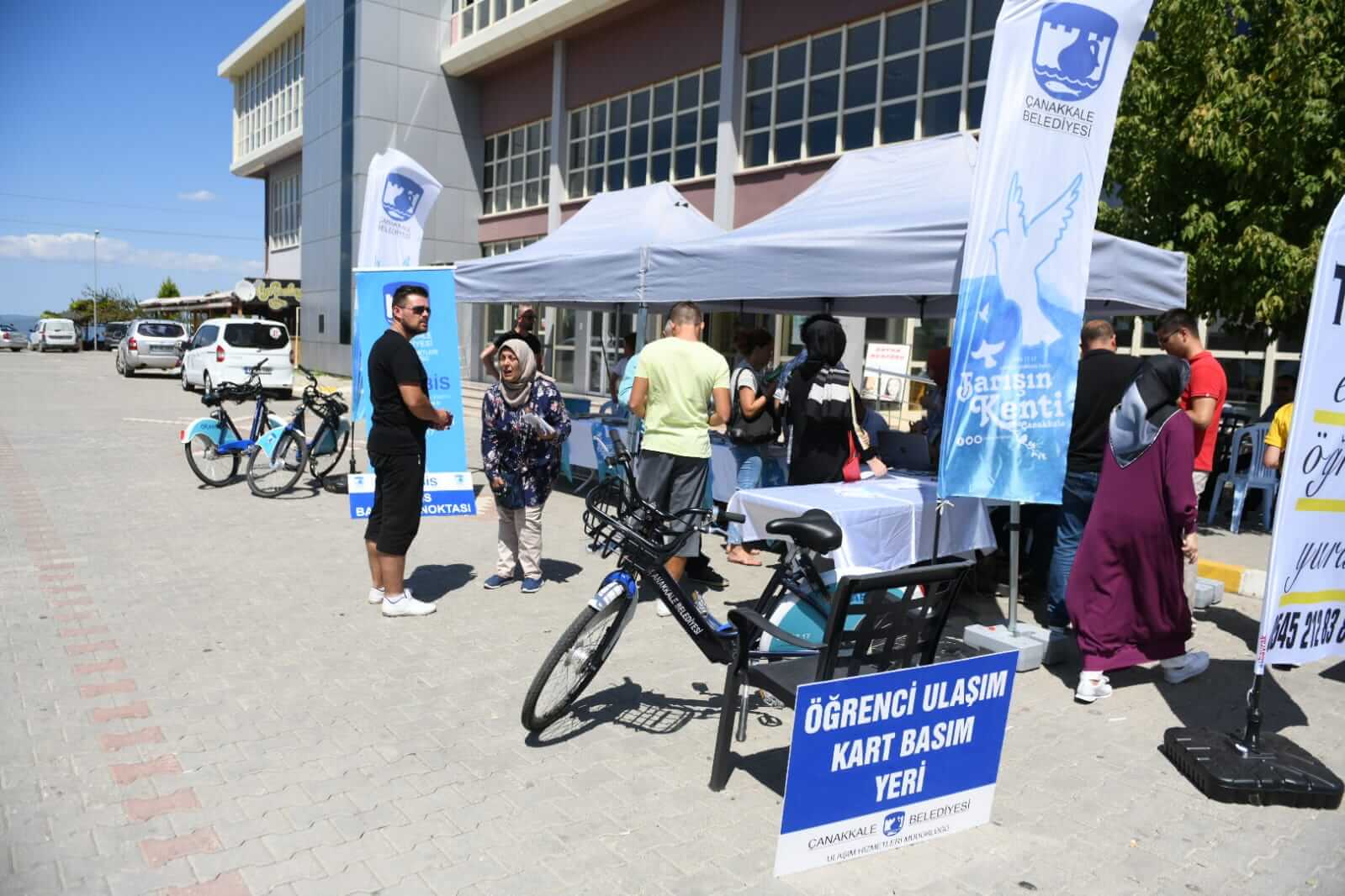 Yeni eğitim öğretim dönemi başında Çanakkale Belediyesi bu yıl da ÇOMÜ’de yeni öğrenim görmeye başlayacak ve Çanakkale’ye ilk kez gelen öğrenciler için Terzioğlu Kampüsü ve Eğitim Fakültesi’nde kurulan stantlarda kenti tanıtan kitapçıklar ve bilgilendirici materyallerden oluşan dokümanlarla kenti tanıtarak ihtiyaç duydukları konularda yardımcı oluyor. Bununla birlikte, Çanakkale Belediyesi standında öğrencilerimizin kent içi ulaşımdan faydalanabilmeleri adına öğrenci kartı basımı ve ÇABİS akıllı bisiklet kullanım kartı basımı da gerçekleştiriliyor.