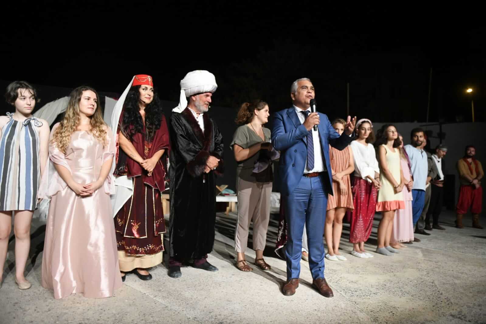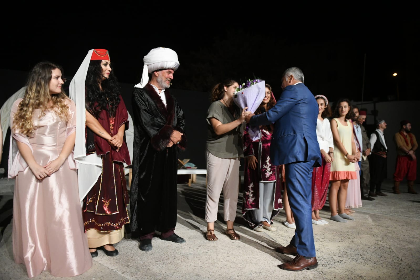 Oyun sonunda gösterdikleri başarılı performans nedeni ile topluluk oyuncularını tebrik eden Belediye Başkan Vekili Özden Çetin, Yönetmen Özdemir'e çiçek takdim etti.