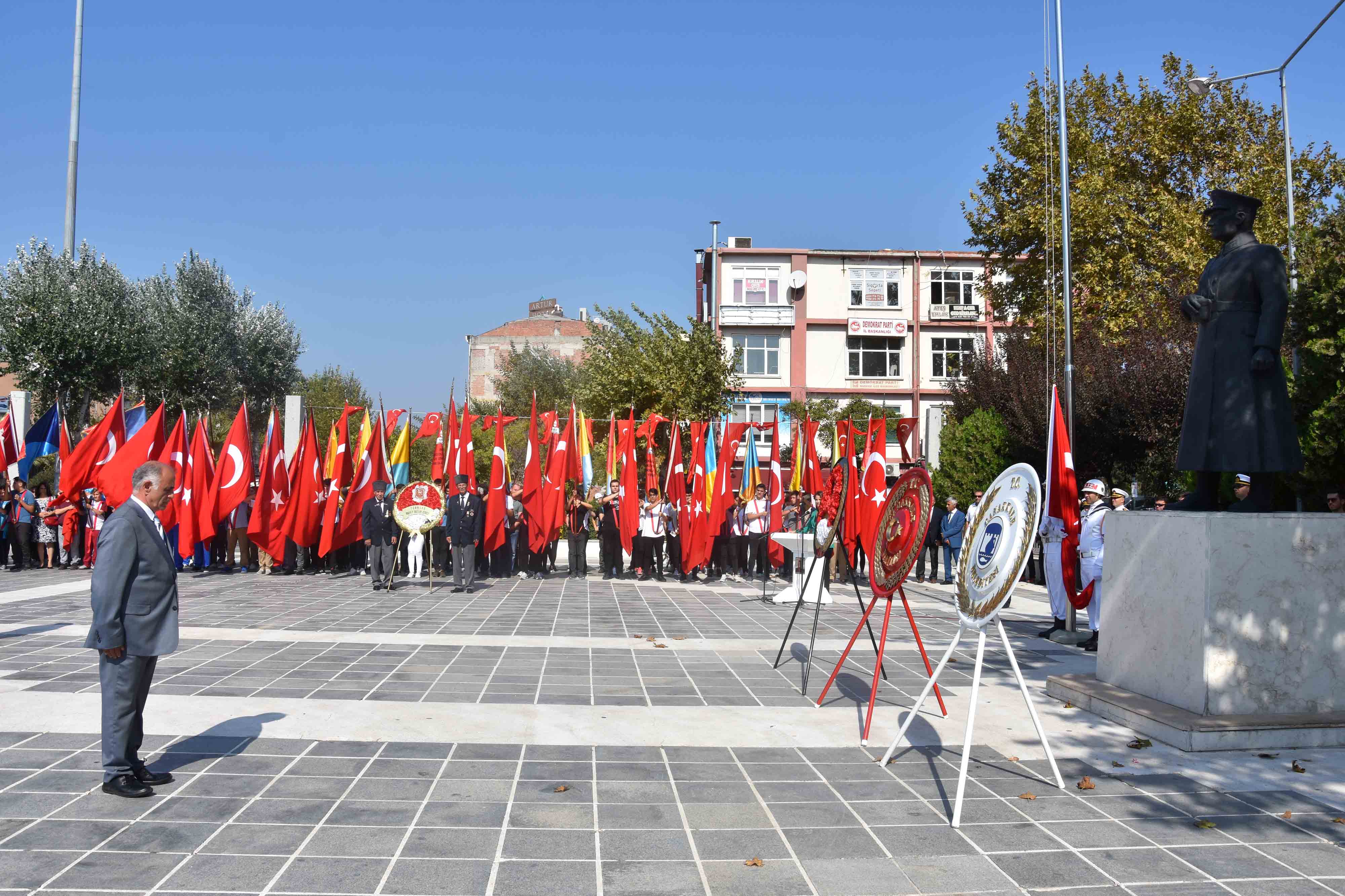 Atatürk Anıtına çelenklerin sunulması ile başlayan tören, saygı duruşu ve İstiklal Marşı’nın okunması ile devam etti. Öğrencilerin şiir okuması ile süren tören, günün anlam ve önemine ilişkin konuşmaların yapılması ile son buldu.