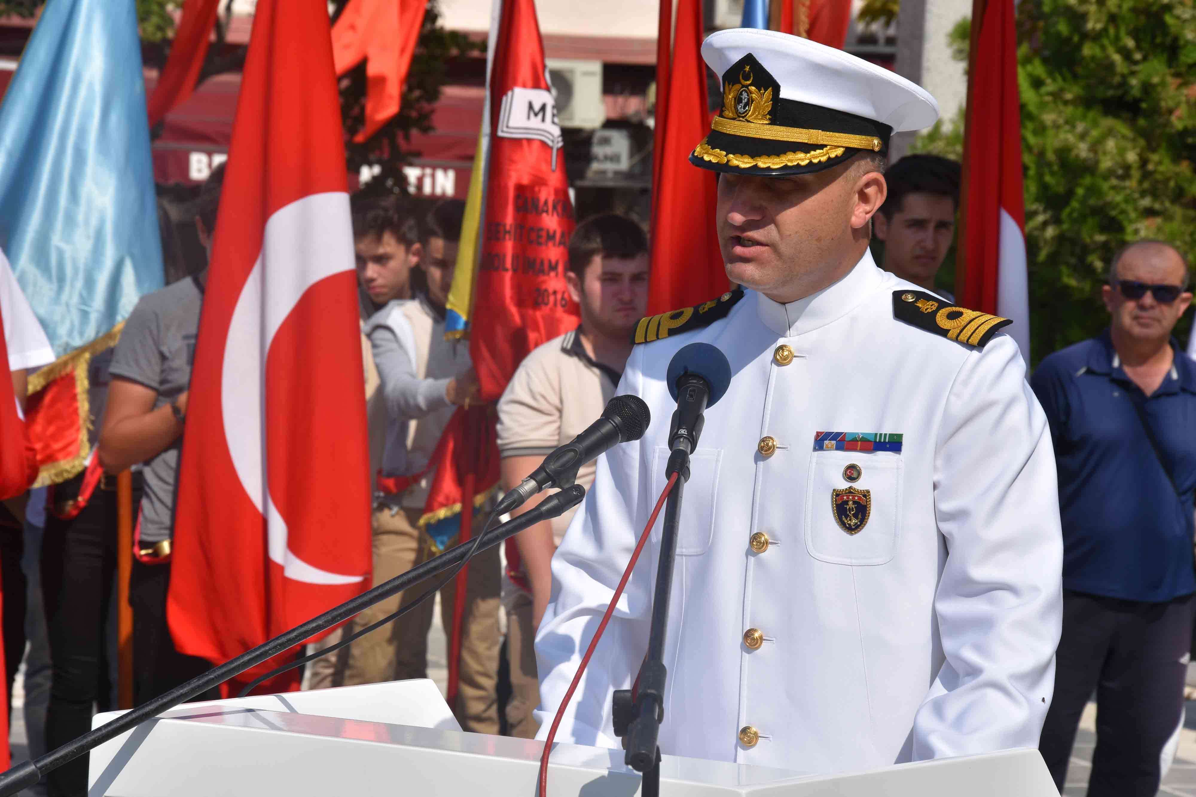Cumhuriyet Meydanı’nda düzenlenen törene, Vali Orhan Tavlı, Boğaz ve Garnizon Komutanı Tuğamiral Levent Kerim Uça, Belediye Meclis Üyesi Emekli General Süleyman Canpolat ile Türkiye Muharip Gaziler Derneği Çanakkale Şube Başkanı Necdet Erdinç başta olmak üzere, kurum ve kuruluş temsilcileri, askeri erkan, öğrenciler, kentliler ve gaziler katıldı.