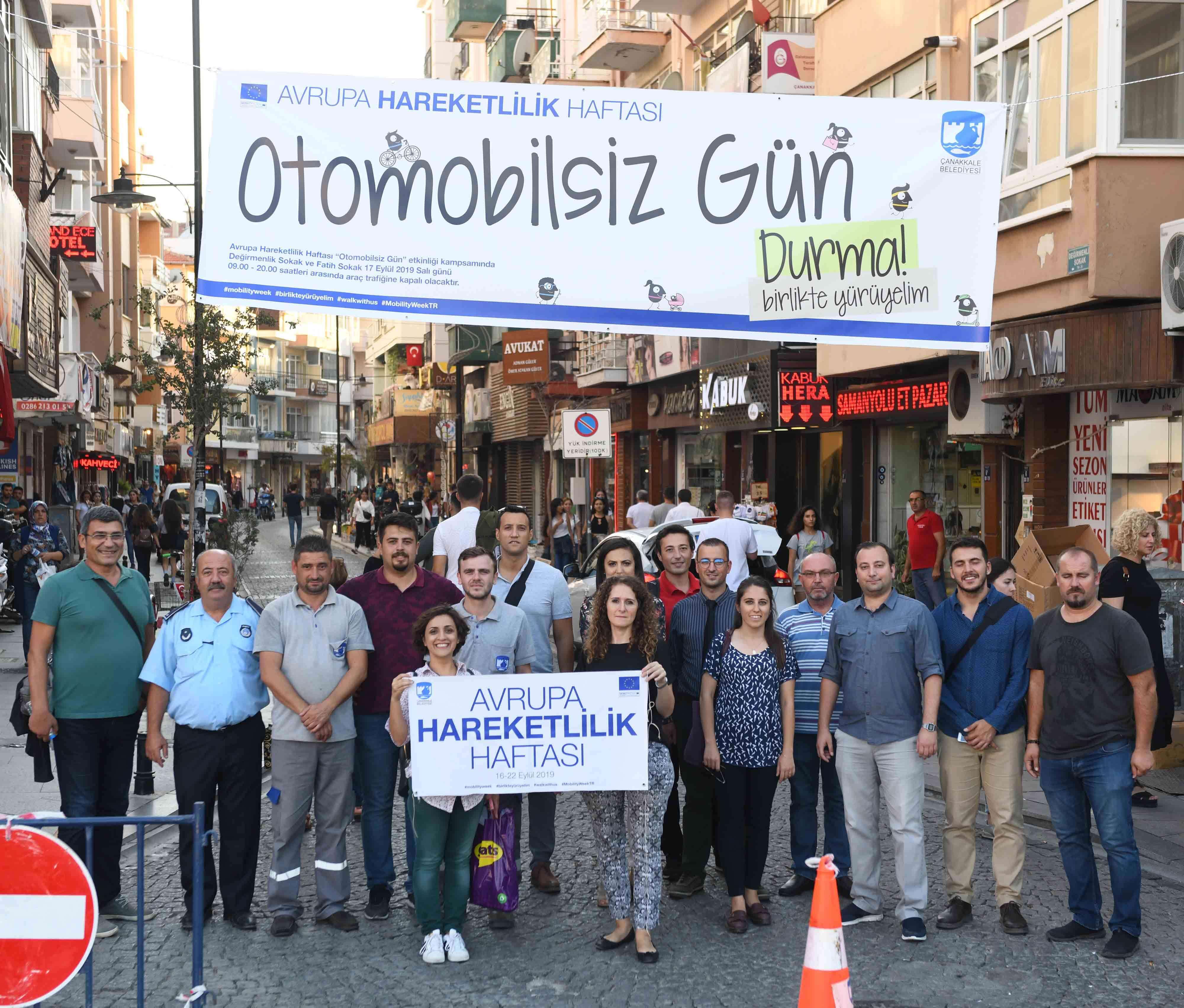 Hafta kapsamında, 17 Eylül 2019 Salı günü “Otomobilsiz Gün/ Birlikte Yürüyelim” etkinliği düzenlendi. Bu doğrultuda, Değirmenlik Sokak-Fatih Sokak arası gün boyu trafiğe kapatılırken, kentlilerin yanı sıra Çanakkale Belediyesi çalışanları da mesai çıkışı yürüyerek etkinliğe katkı verdi.