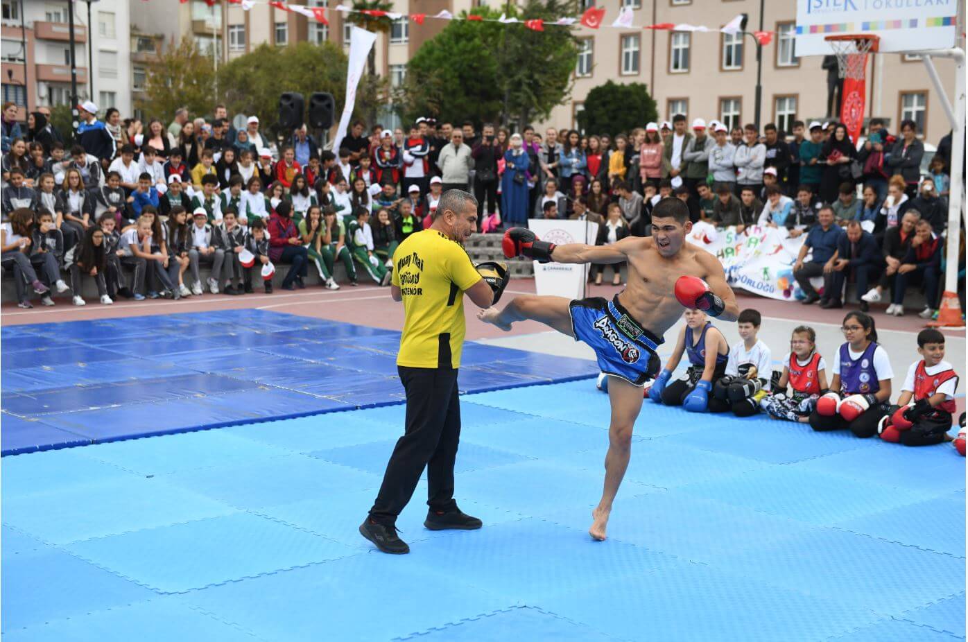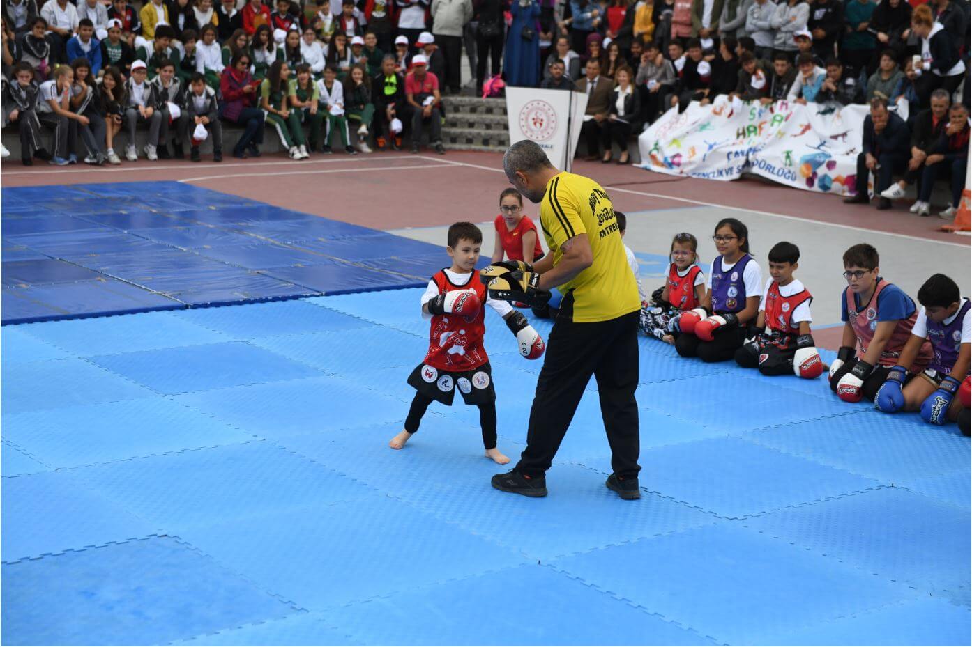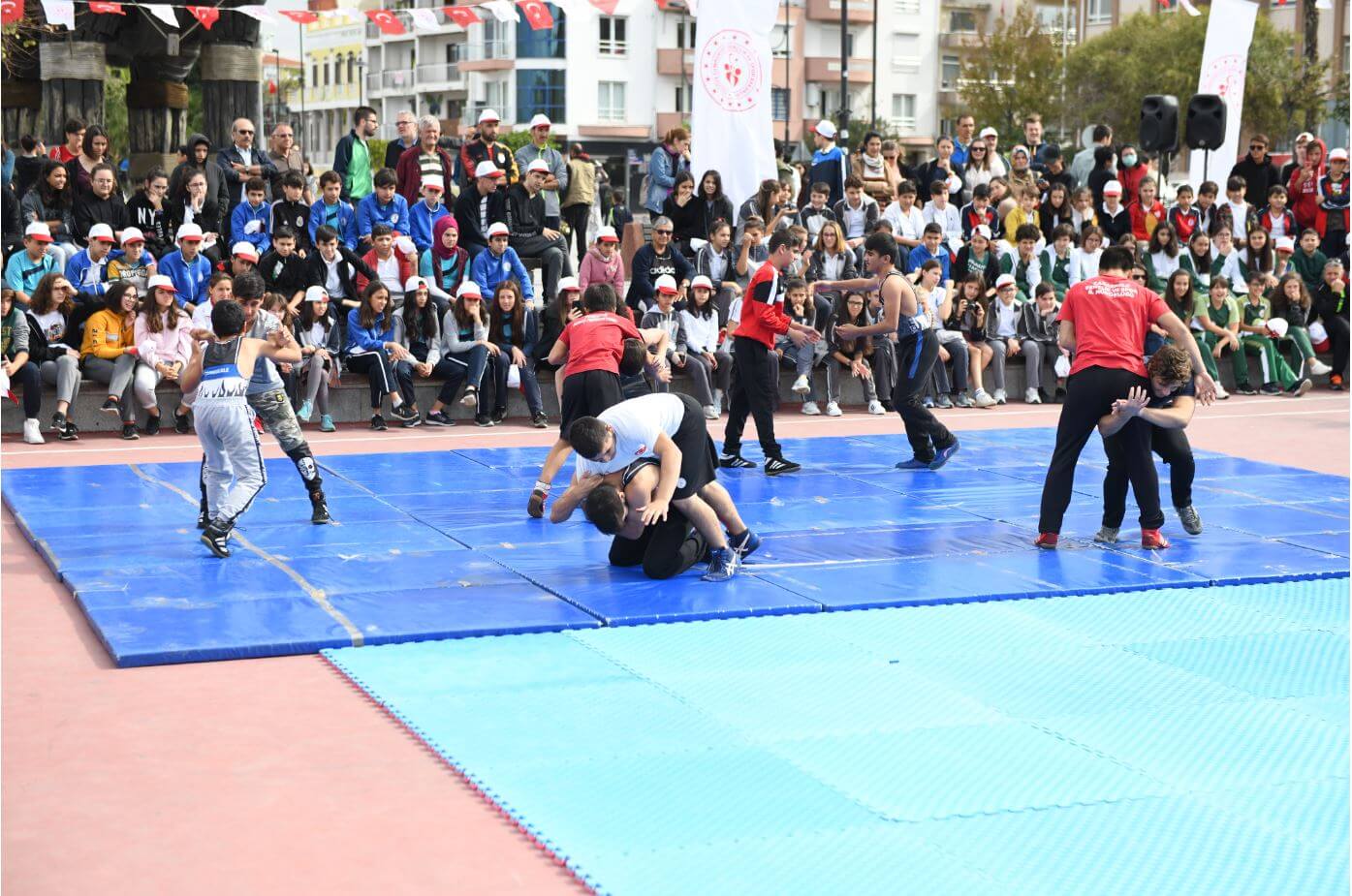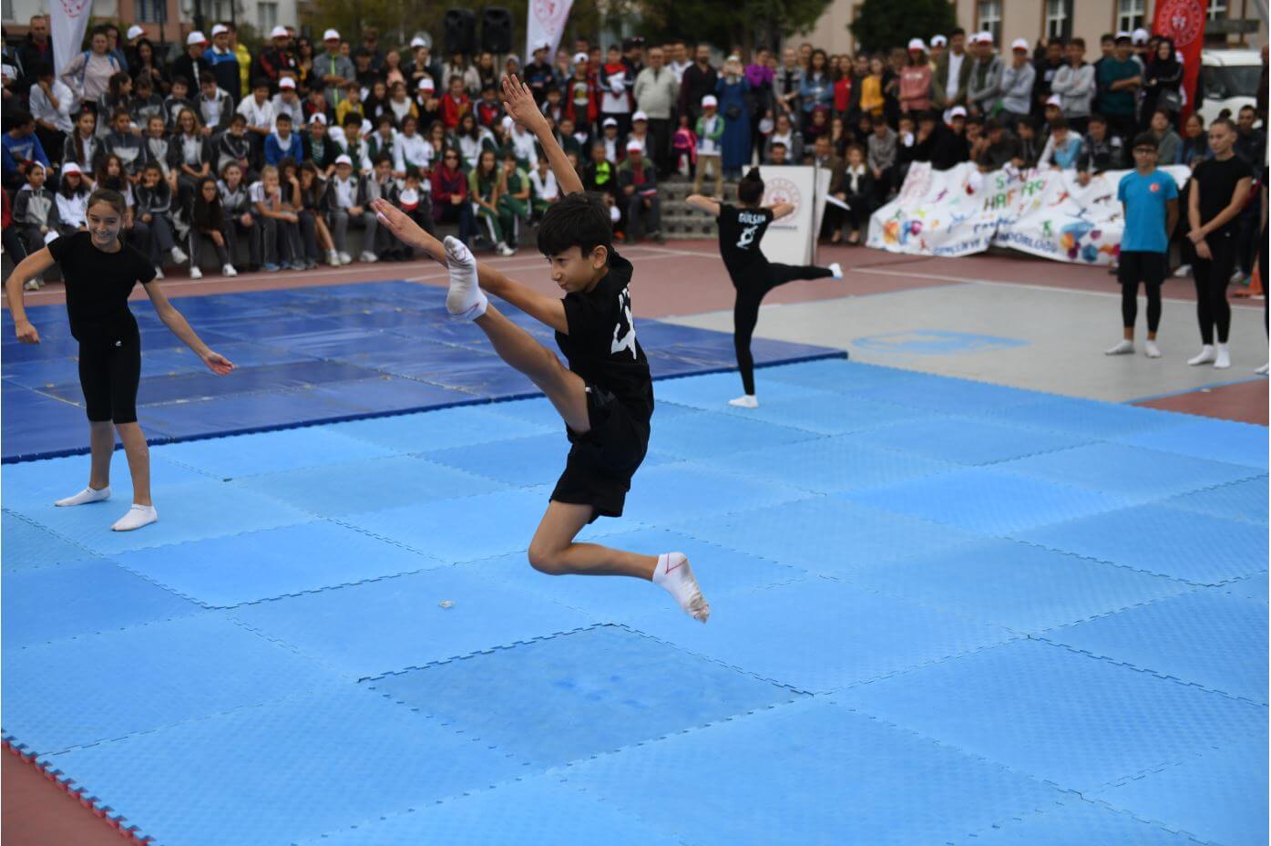 Yürüyüşün ardından Çağlar Kaynak Basketbol sahasında düzenlenen program, saygı duruşu ve İstiklal Marşı'nın okunması ile başladı. Günün anlam ve önemine ilişkin yapılan konuşmaların ardından program, çeşitli spor dallarında amatör sporcuların gerçekleştirdiği gösteriler ile son buldu.
