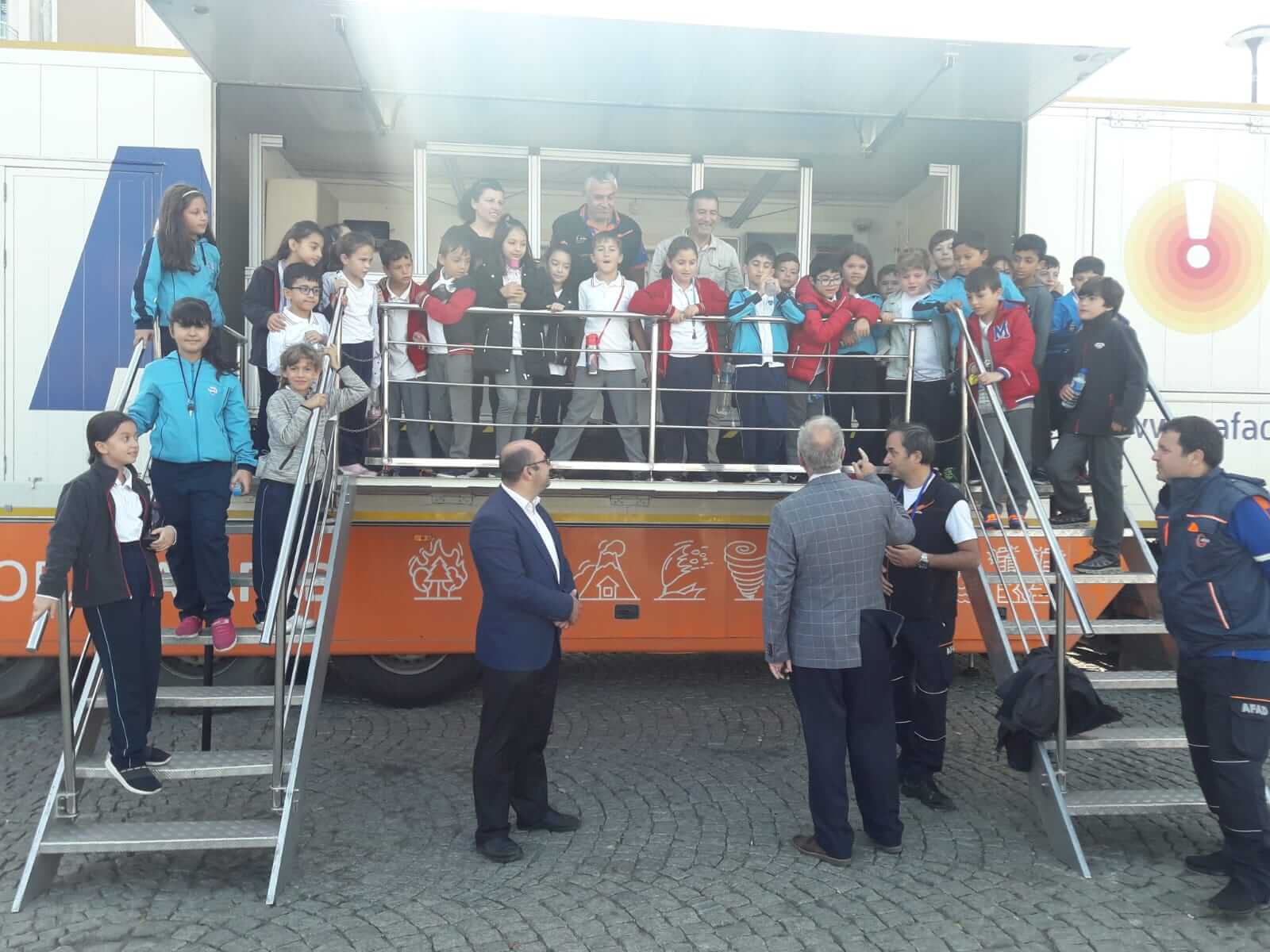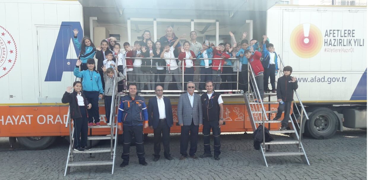 AFAD tarafından ilan edilen "Afetlere Hazırlık Yılı" etkinlikleri kapsamında kentlileri bilinçlendirmek ve doğal afetlere karşı farkındalığını arttırmak amacıyla İskele Meydanı’na konuşlandırılan tırı gezen Başkan Gökhan, yetkililerden etkinlik kapsamında düzenlenecek olan çeşitli eğitimler ve faaliyetler hakkında bilgi aldı.