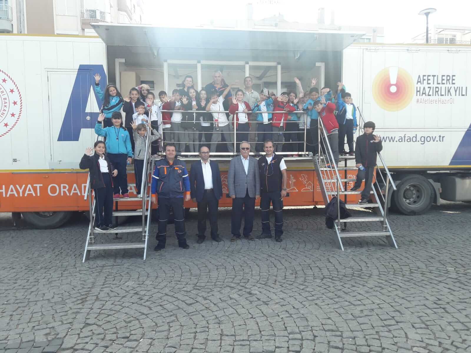 Belediye Başkanı Ülgür Gökhan, AFAD tarafından deprem konusunda bilinçlendirmede bulunmak amacı ile İskele Meydanı’nda konuşlandırılan deprem simülasyon tırını ziyaret etti.