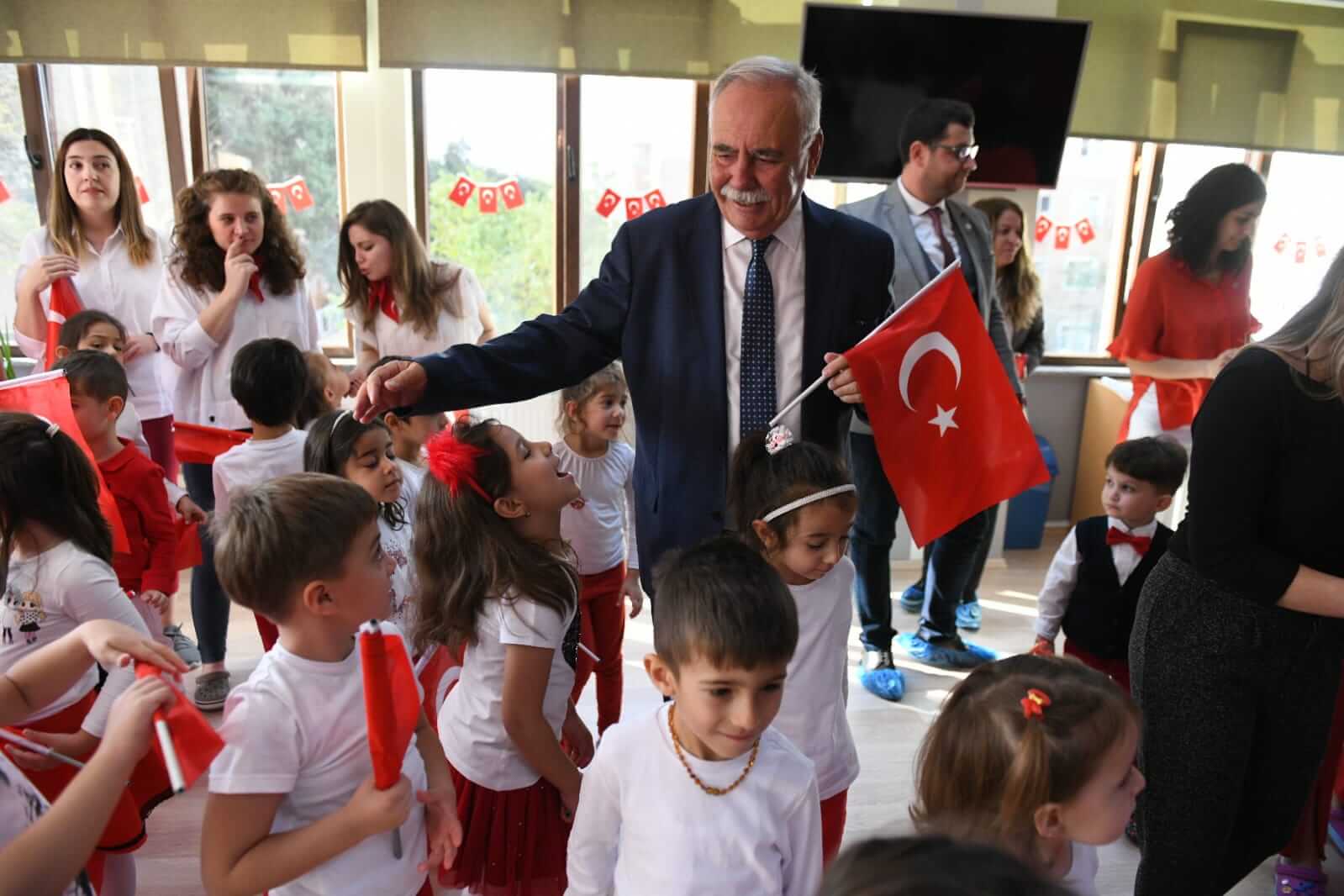 Atam Kreş'te geleneksel hale gelen Cumhuriyet Bayramı kutlama programı, saygı duruşu ve İstiklal Marşı'nın okunması ile başladı. Program kapsamında Minikler, ellerindeki bayraklarla marşlar söyleyerek bayramın coşkusunu birlikte yaşadı. Renkli görüntülerin oluştuğu programa Belediye Başkanı Ülgür Gökhan, Belediye Başkan Yardımcısı Rebiye Ünüvar, Atam Kreş ve Gündüz Bakımevi yöneticileri ile öğretmenleri de katılarak çocukların coşkularına ortak oldu.