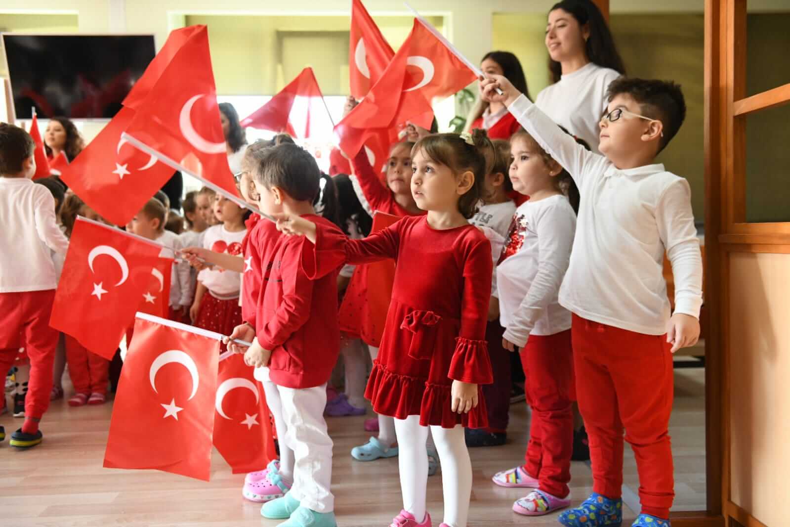 Çanakkale Belediyesi Cevatpaşa ATAM Kreş ve Gündüz Bakımevinin minik katılımcıları, 29 Ekim Cumhuriyet Bayramı kapsamında düzenlenen kutlama programı ile Cumhuriyet Bayramı coşkusunu yaşadı.