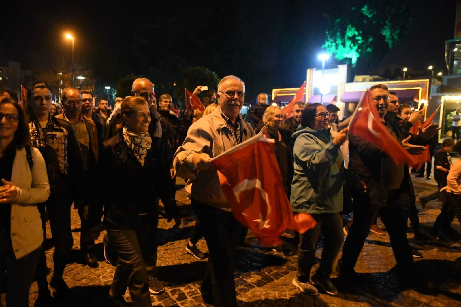 Cumhuriyet Bayramı etkinlikleri kapsamında akşam saatlerinde ise, geleneksel hale gelen fener alayı düzenlendi. Cumhuriyet Meydanı'ndan başlayan fener alayına Belediye Başkanı Ülgür Gökhan, eşi Hale Gökhan ile birlikte katılırken, çok sayıda kentli ellerinde meşaleler, bayraklar ve pankartlar ile birlikte büyük bir coşkuyla marşlar söyleyerek Yat Limanına kadar yürüdü. Fener Alayının son bulduğu Yat Limanında Çanakkale Belediyesi tarafından gerçekleştirilen havai fişek gösterisi ise büyük ilgi gördü.