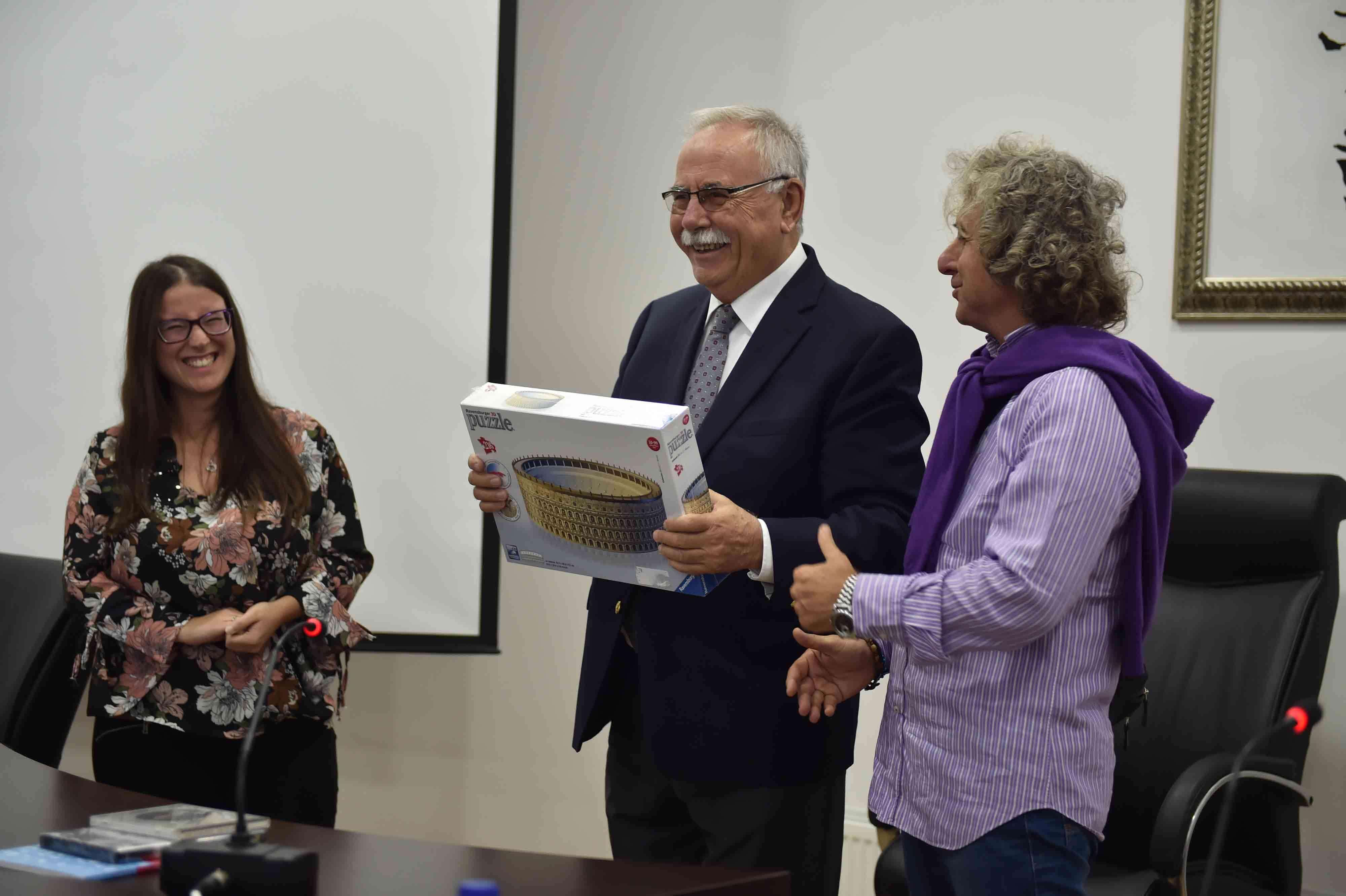 Heyet, Başkan Gökhan'a hediyelerini ve Pomezia Belediye Başkanı Adriano Zuccalo'nun mektubunu sunarken, Başkan Gökhan da Çanakkale'yi tanıtan kitap ve seramik hediyelerini dernek üyelerine takdim etti. Ziyaret, toplu hatıra fotoğrafı çekimi ile son buldu.