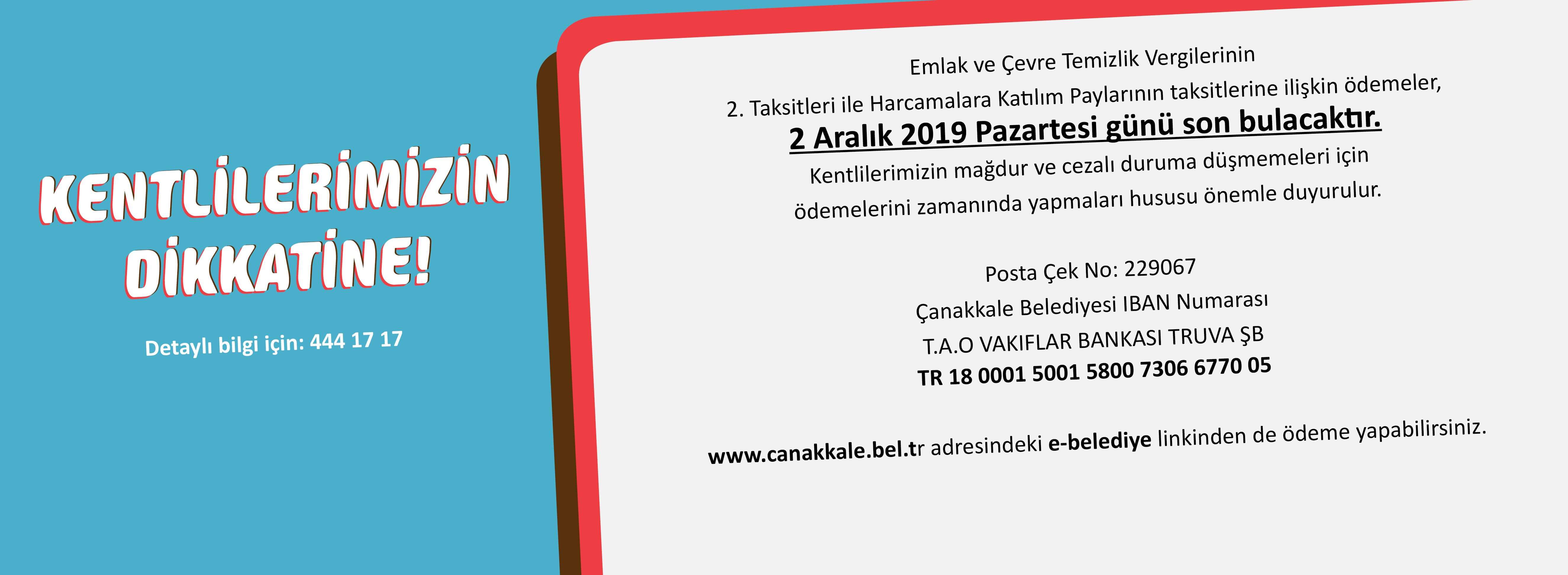 www.canakkale.bel.tr adresindeki e-belediye linkinden de ödeme yapabilirsiniz.