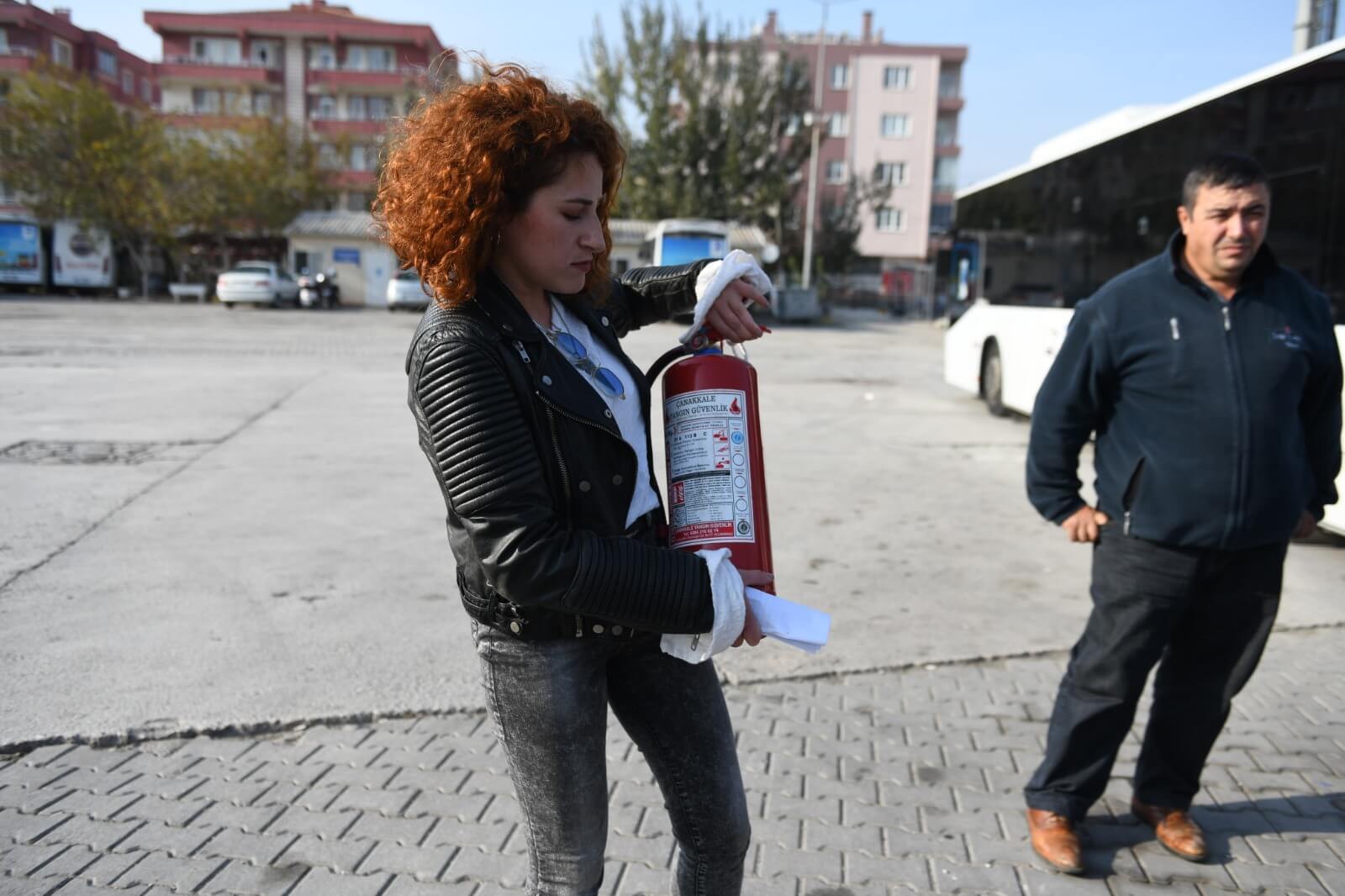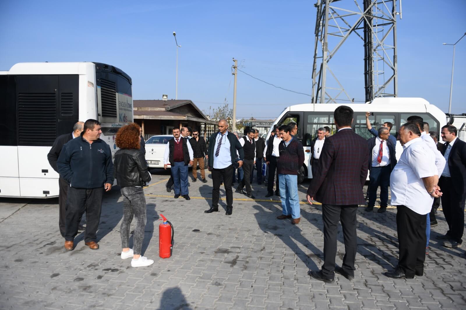Toplu taşıma şoförlerinin bilinç ve kabiliyetlerinin arttırılması ve olası durumlar karşısında etkin şekilde müdahalede bulunmaları amacı ile şehir içi toplu taşıma şoförlerine yetkili firma tarafından yangın eğitimi verildi. Halk Otobüsleri Merkez Garajı’nda düzenlenen eğitim kapsamında; şehir içi toplu taşıma hizmetinde oluşabilecek yangınlara karşı alınacak tedbirler, yangın anında yapılması gerekenler ve ilk müdahalenin nasıl yapılacağı uygulamalı şekilde anlatıldı. Eğitimde ayrıca, olası bir yangın durumunda şoförlere haber verilmesi gereken yerler konusunda da bilgilendirme yapıldı.
