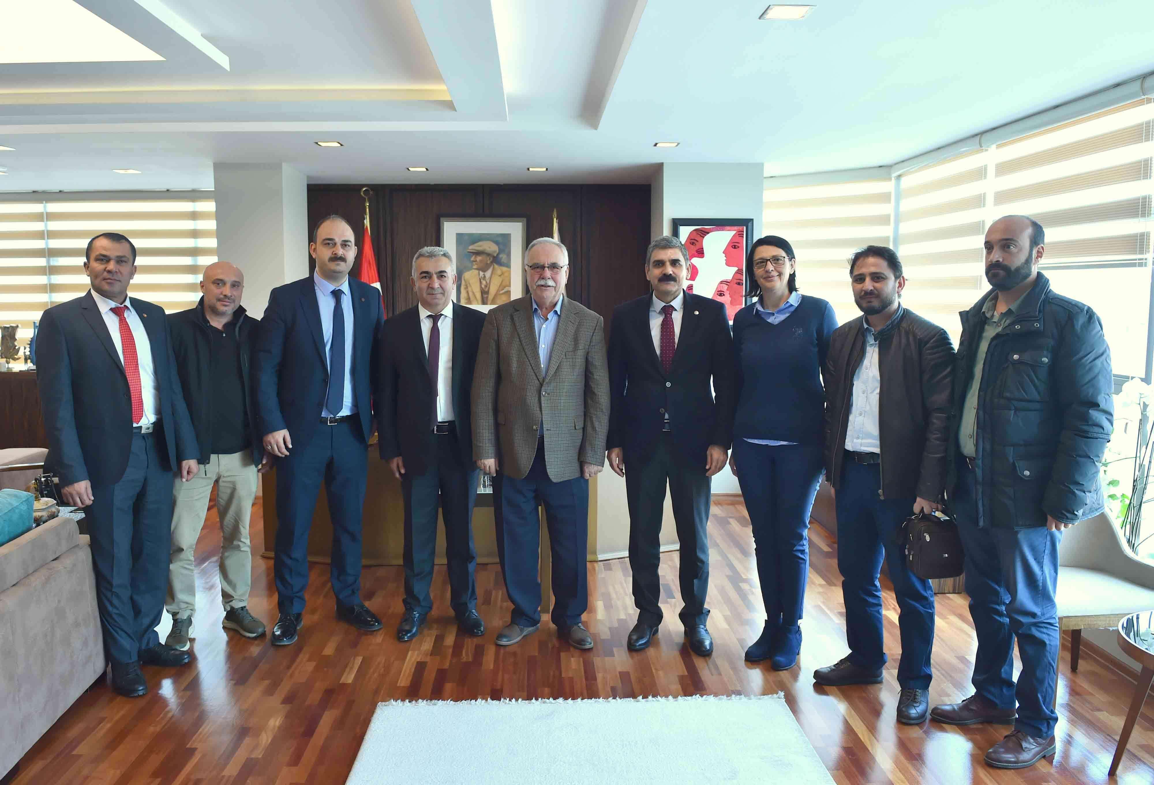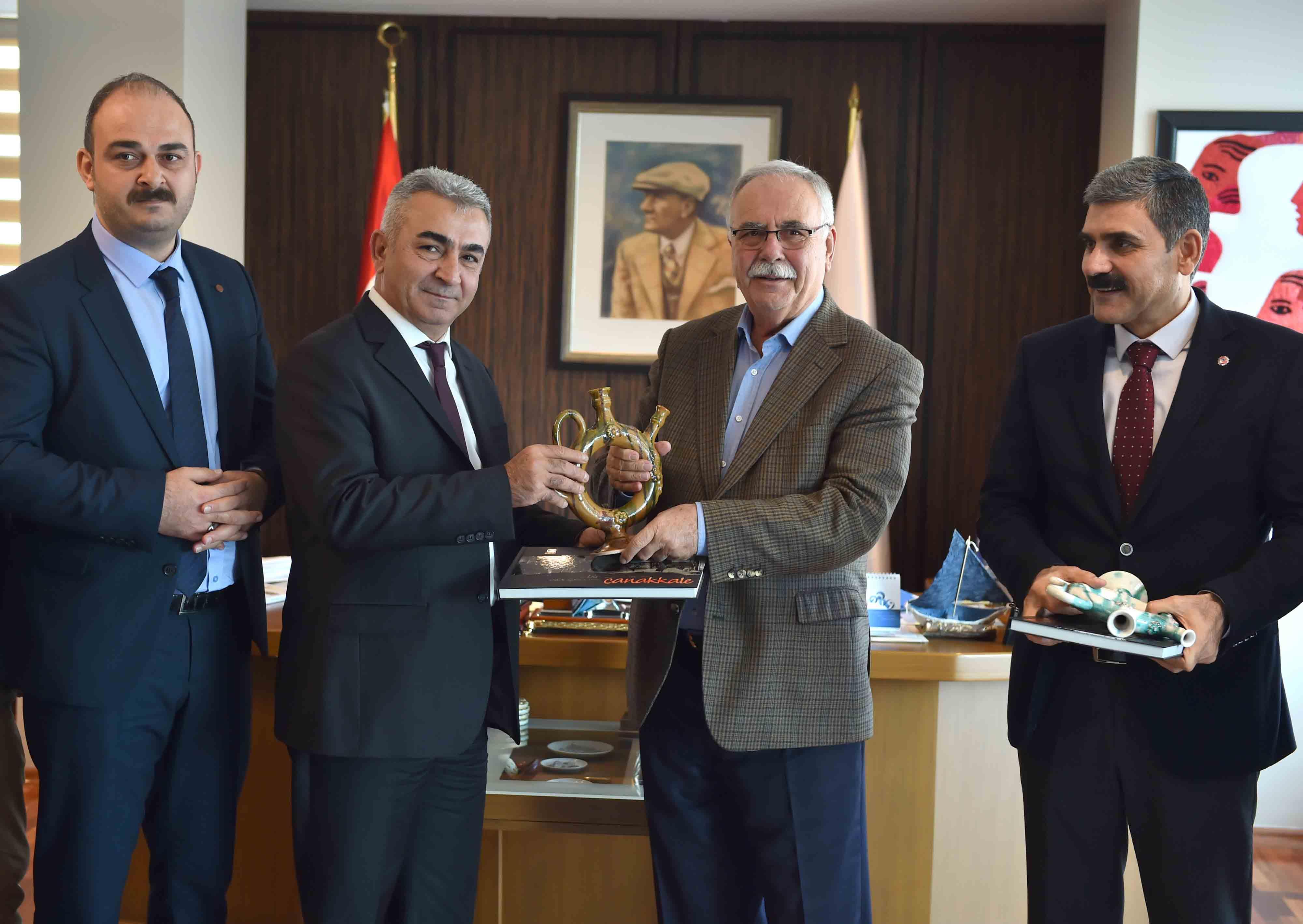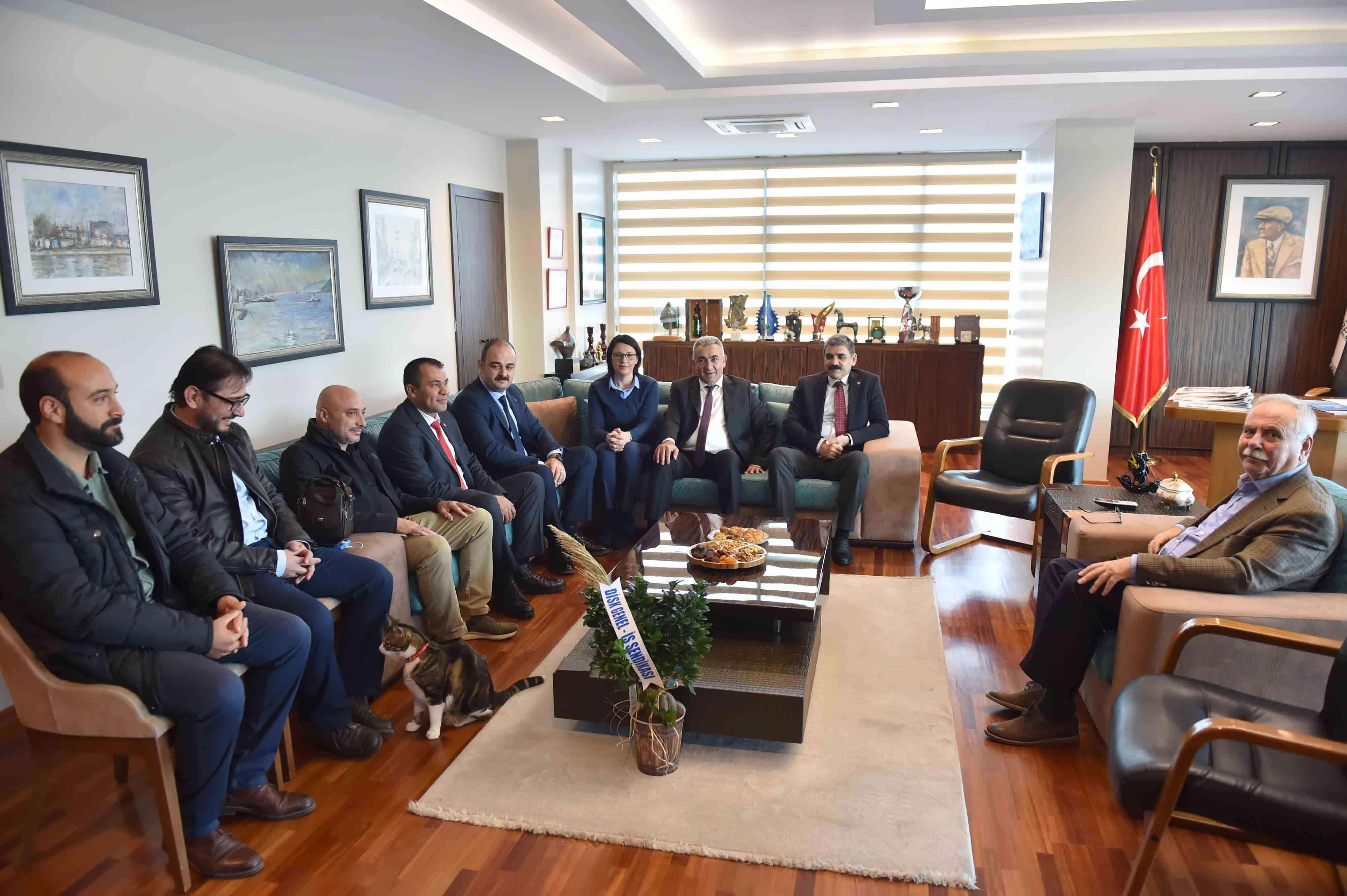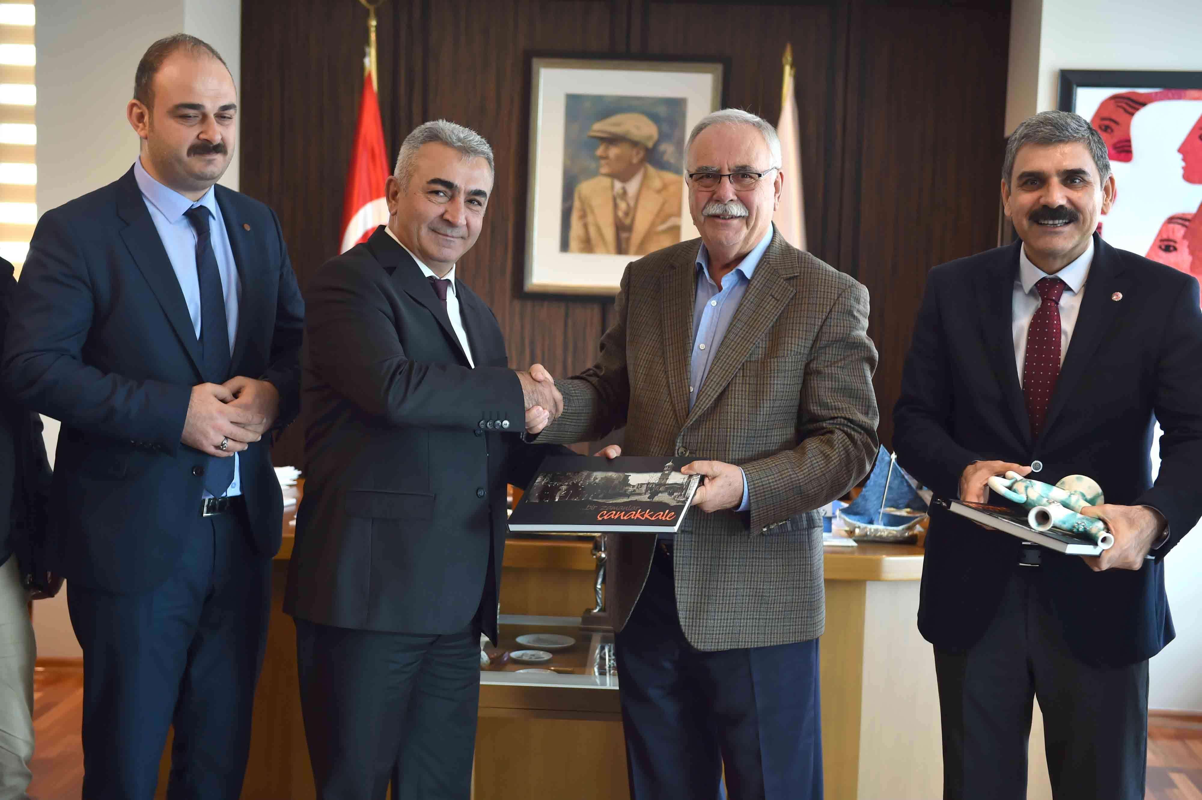 Belediye Başkanı Ülgür Gökhan, DİSK Genel İş Sendikası Genel Başkanı Remzi Çalışkan, Toplu Sözleşmeler Daire Başkanı Çetin Çalışkan ile DİSK Genel-İş Sendikası Çanakkale Şube Başkanı Metin Ceylan ve yönetim kurulu üyelerini makamında ağırladı.