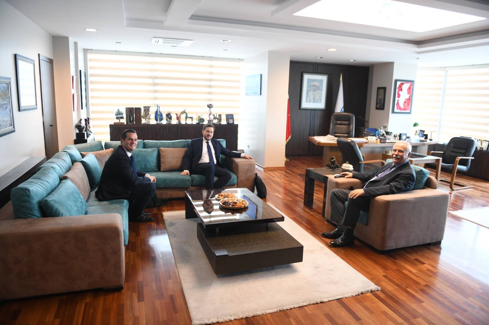 Suez Firması Yetkilileri Xavier Prudhomme ve Metin Suadiyeli, Belediye Başkanı Ülgür Gökhan’a nezaket ziyaretinde bulundu.