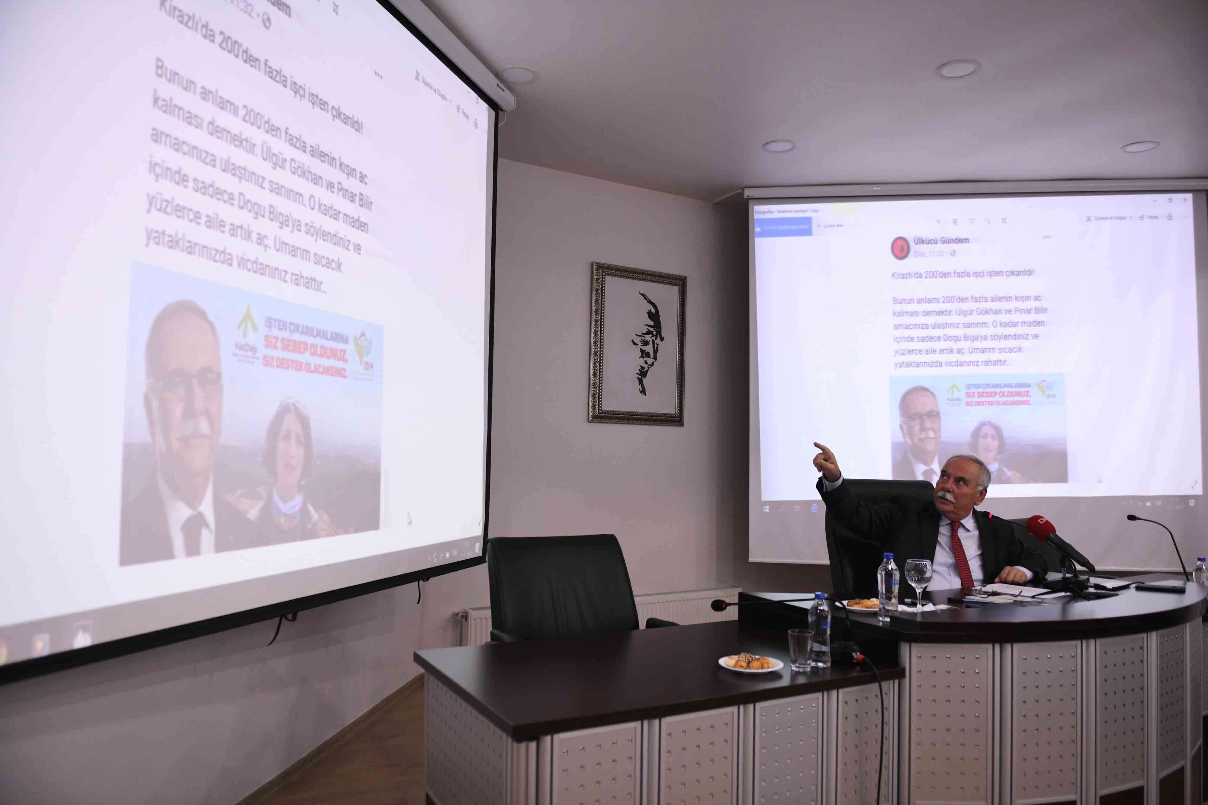 “Bu süreçte ilgili firma ruhsatın yenilenmesi için birtakım ilişkiler kuruyor ve girişimlerde bulunuyor olabilir. Ama bunu şu ana kadar başaramamış olmasının sonucunda şimdi bizi tehdit etmeye başladı. Oradan işten çıkarılan işçiler ile tehdit ediyor. 200 işçi çıkaracaklarmış ve bunun sorumlusu da bizmişiz. Ben kimseye işçi çalıştırma taaddüttü vermedim. Eğer bunlar yetişmiş işçiler ise başka tesisleri var ve alıp o işçileri orada istihdam edebilir. Bu onların sorunu. Onların vermiş olduğu sözlerin yerine getirememenin telaşındalar”.