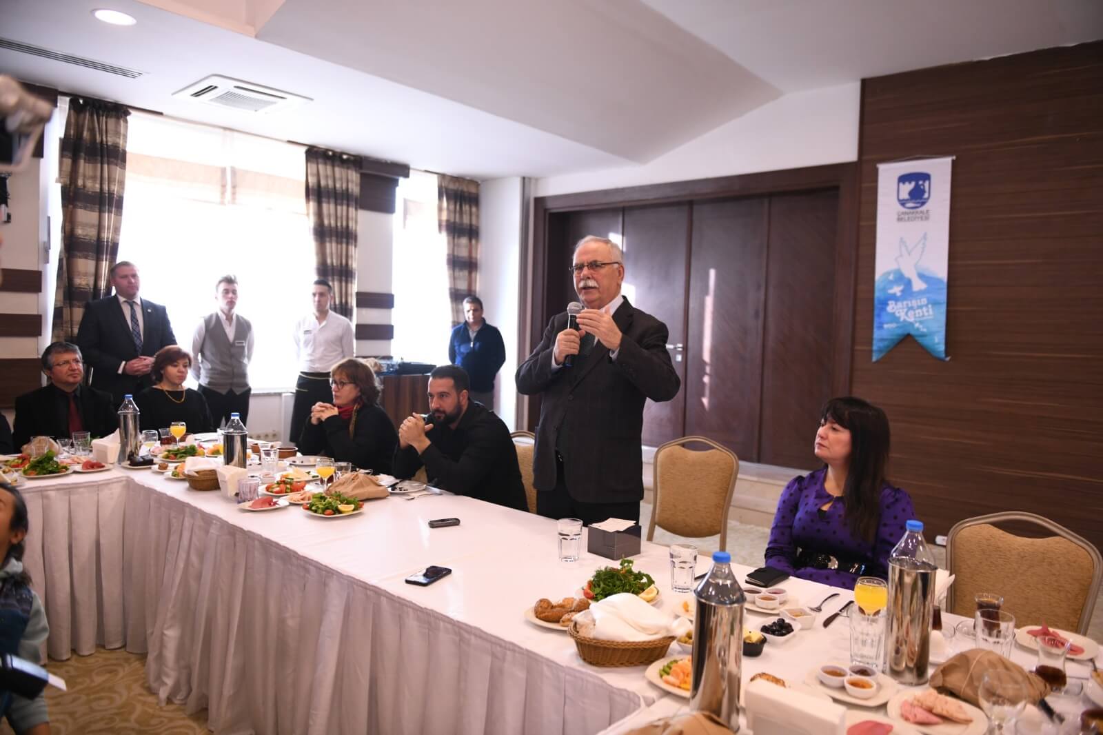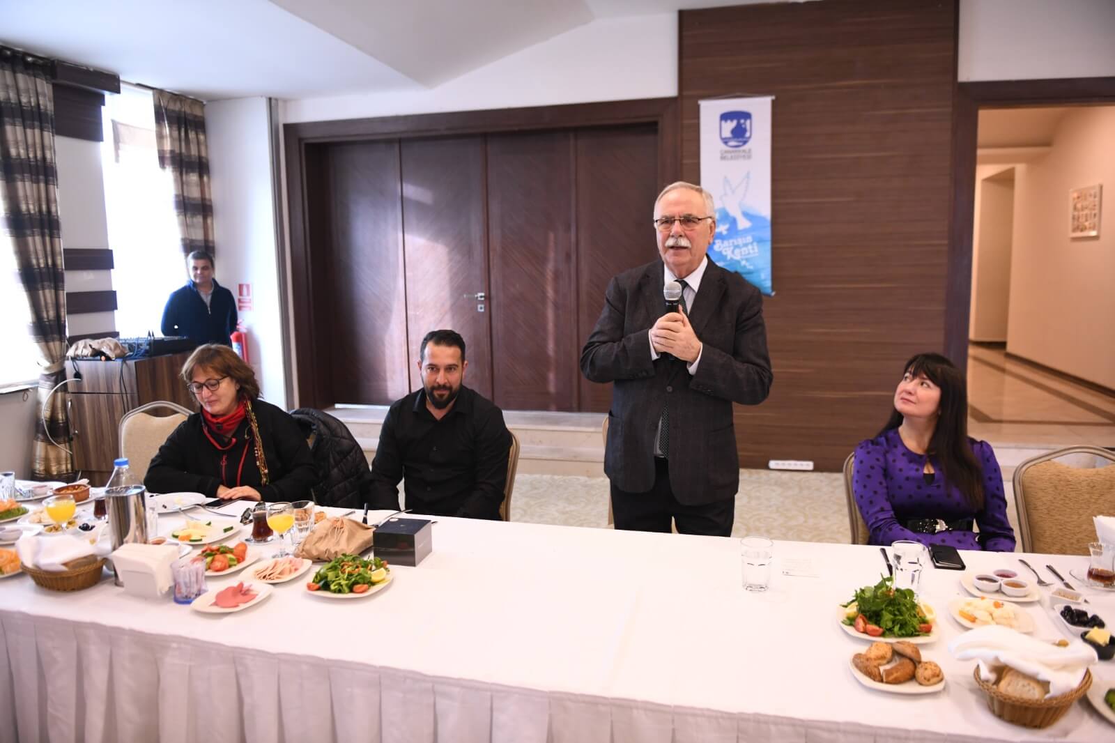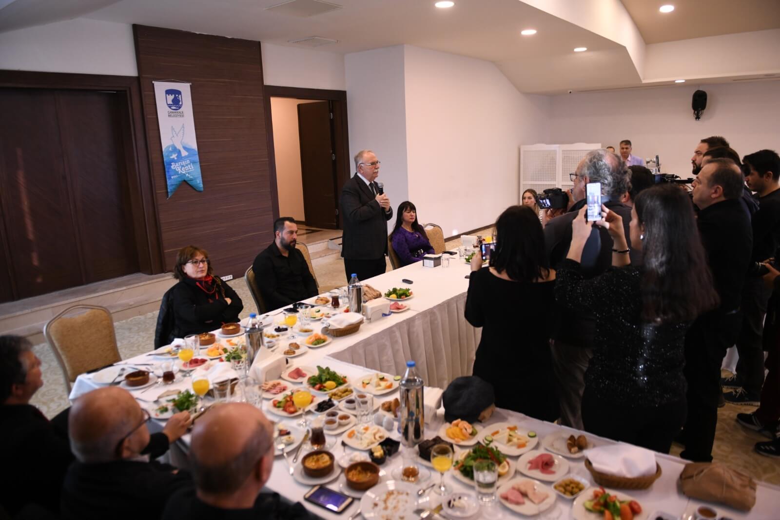 Gazeteciliğin kutsal bir meslek olduğunu vurgulayan Başkan Gökhan; “Gerçekten zor bir iş yapıyorsunuz. Özellikle savaş ve eylem alanlarında kendinizi tehlikeye atarak haber yapmaya çalışıyorsunuz. En son Anadolu Ajansının muhabiri yaralandı ve gözü göremez hale geldi. Umarım en kısa zamanda iyileşir. Çanakkale'de gece gündüz demeden çalışıyorsunuz. Bu kutsal bir görev. Aynı zamanda bir başka tehlike de yaptığınız görevlerden dolayı ceza evlerine de atılabiliyorsunuz. Bu çok eski zamanlardan bu yana olan bir şey. Doğruyu söyleyeni dokuz köyden kovarlar. Siz sadece kovulmakla kalmıyorsunuz, bir de üstüne eziyet çekiyorsunuz. Bu nedenle gerçekten işiniz zor.