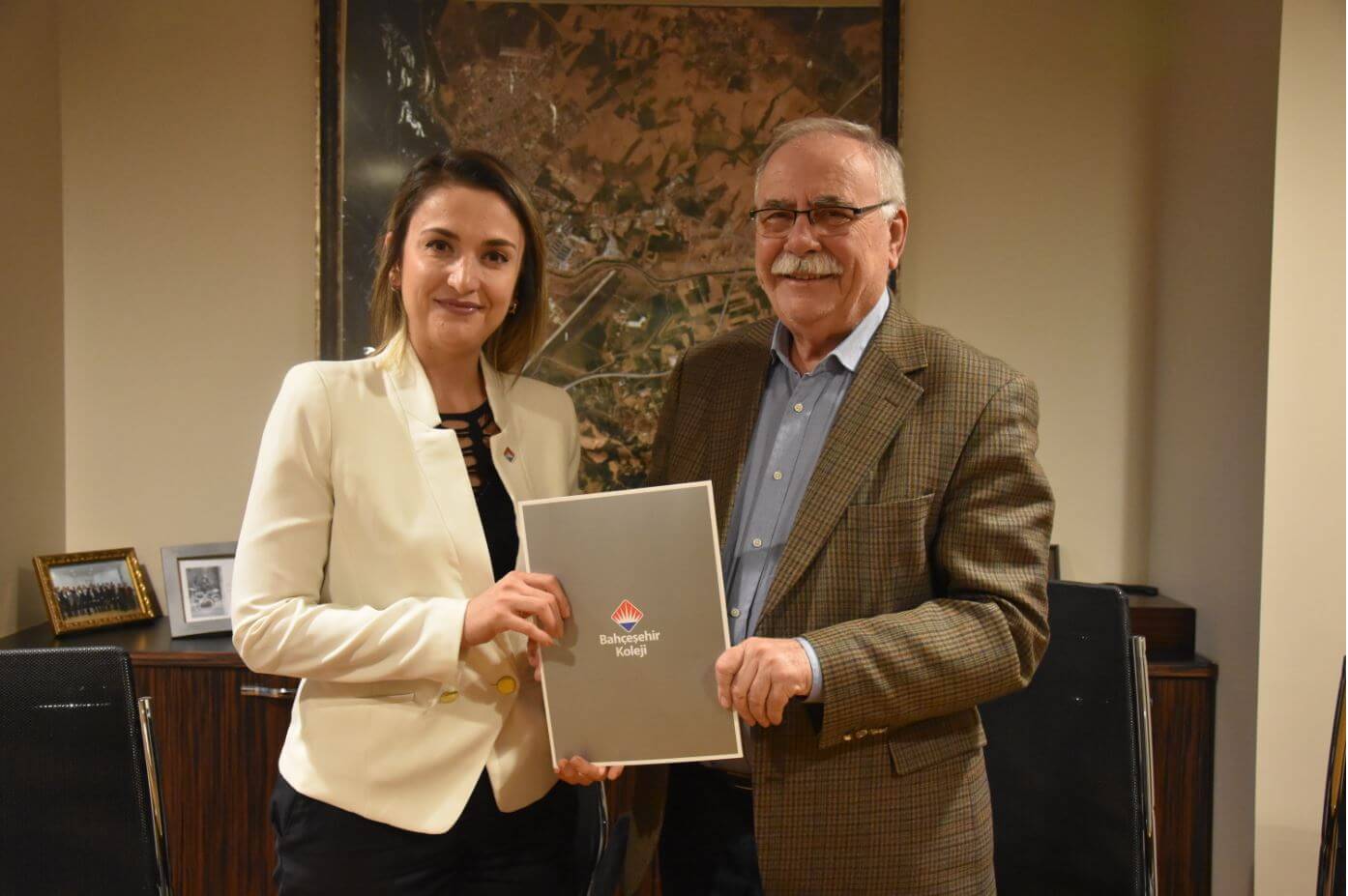 Karşılıklı sohbet ortamı ile devam eden ziyaret sonunda Doğan, Başkan Gökhan'a Enver Yücel'in “Hayatım Eğitim” kitabı ve Bahçeşehir Koleji öğrencileri tarafından 3D yazıcı ile yapılan Truva Atı takdim etti.